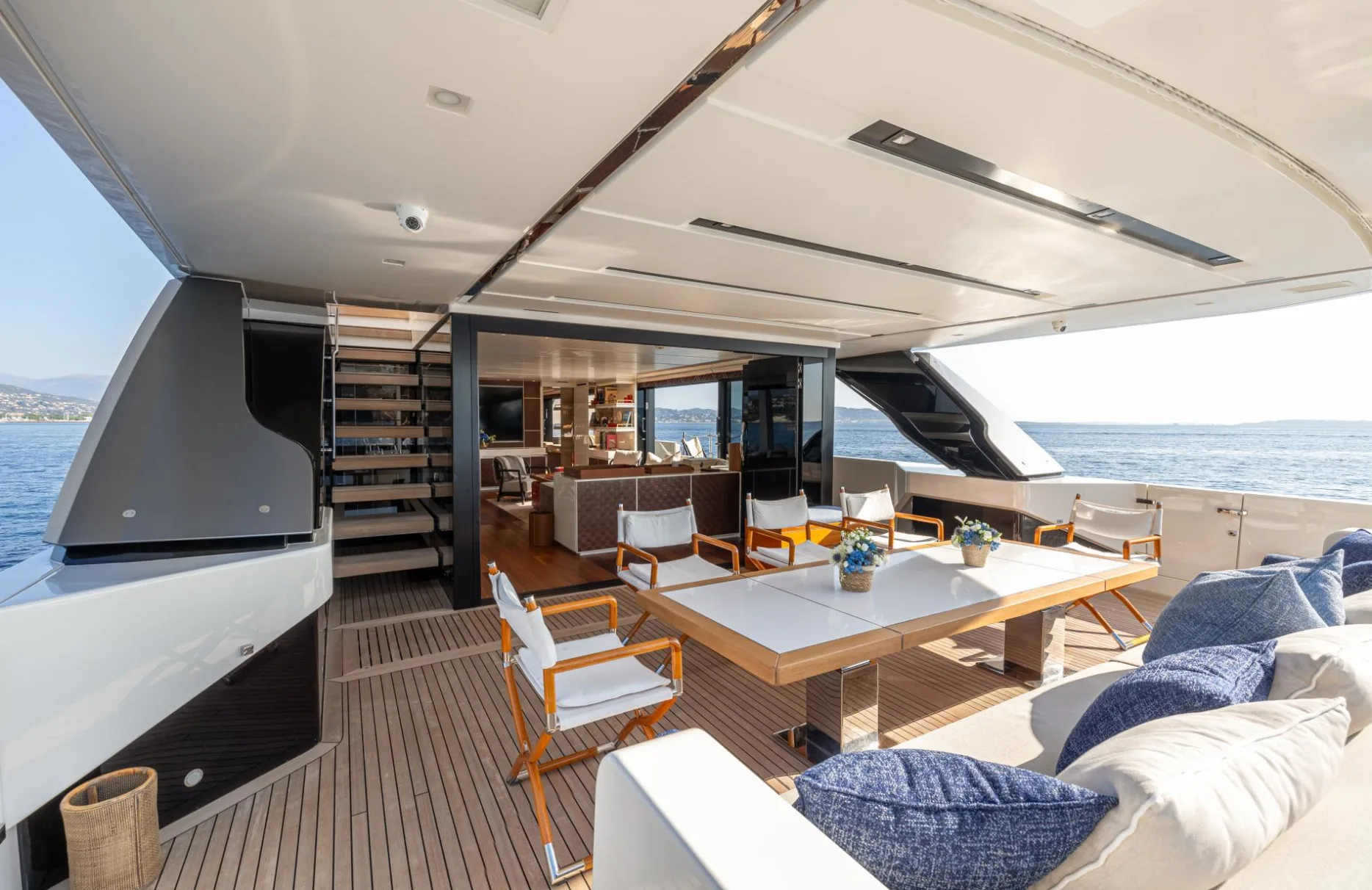 Monte-Cristo offers an array of spaces designed to enrich your time on board. Whether basking under the sun on the sun deck or enjoying a drink at the outdoor bar, each moment is crafted for leisurely indulgence. With Wi-Fi available throughout the yacht, you can stay connected to the world while being worlds away. The at-anchor and underway stabilizers ensure a smooth voyage, allowing you to relax in the air-conditioned comfort of the interior or take a refreshing dip from the swimming platform.