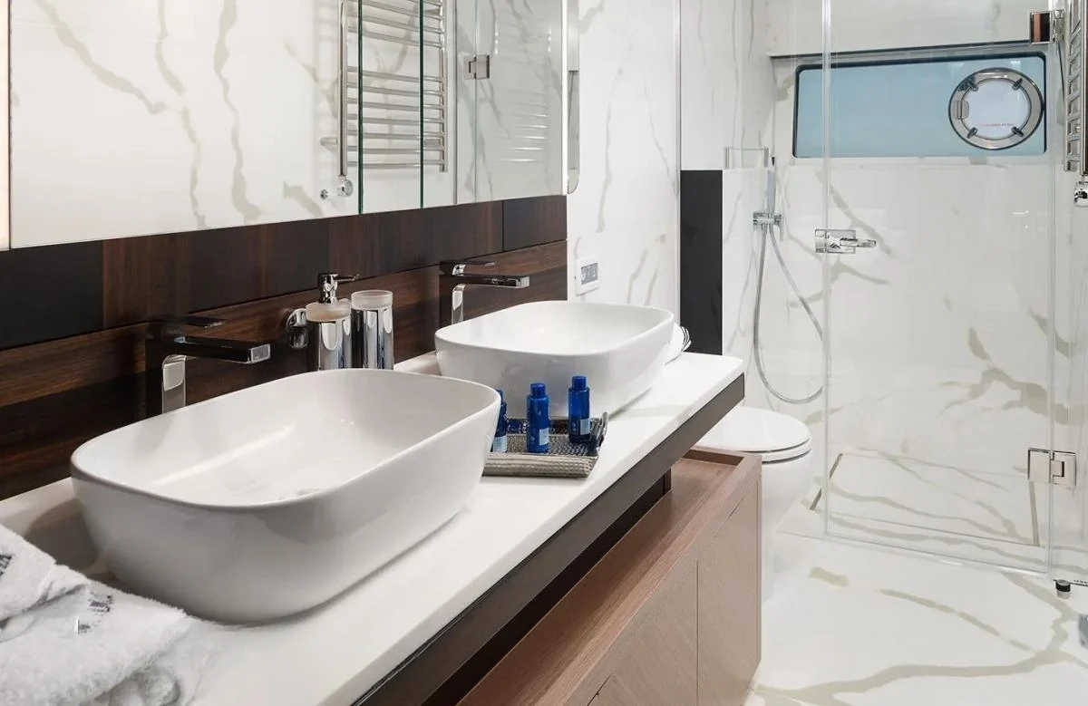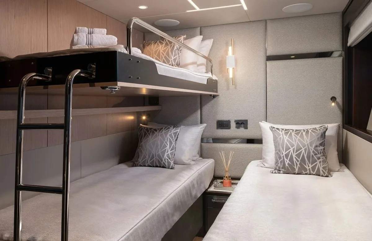 Mowana welcomes up to nine guests into her embrace, with four exquisitely appointed cabins that serve as your personal retreat. Each morning, awaken to the gentle rhythm of the sea, surrounded by the refined elegance of the master suite or the inviting comfort of the VIP cabin. The flexible bed configurations, including convertible options, ensure that every family member finds their perfect space. Whether you’re starting the day with a view of the endless horizon or retreating after a day of adventure, the accommodations provide a serene haven that complements the enchanting seascape.