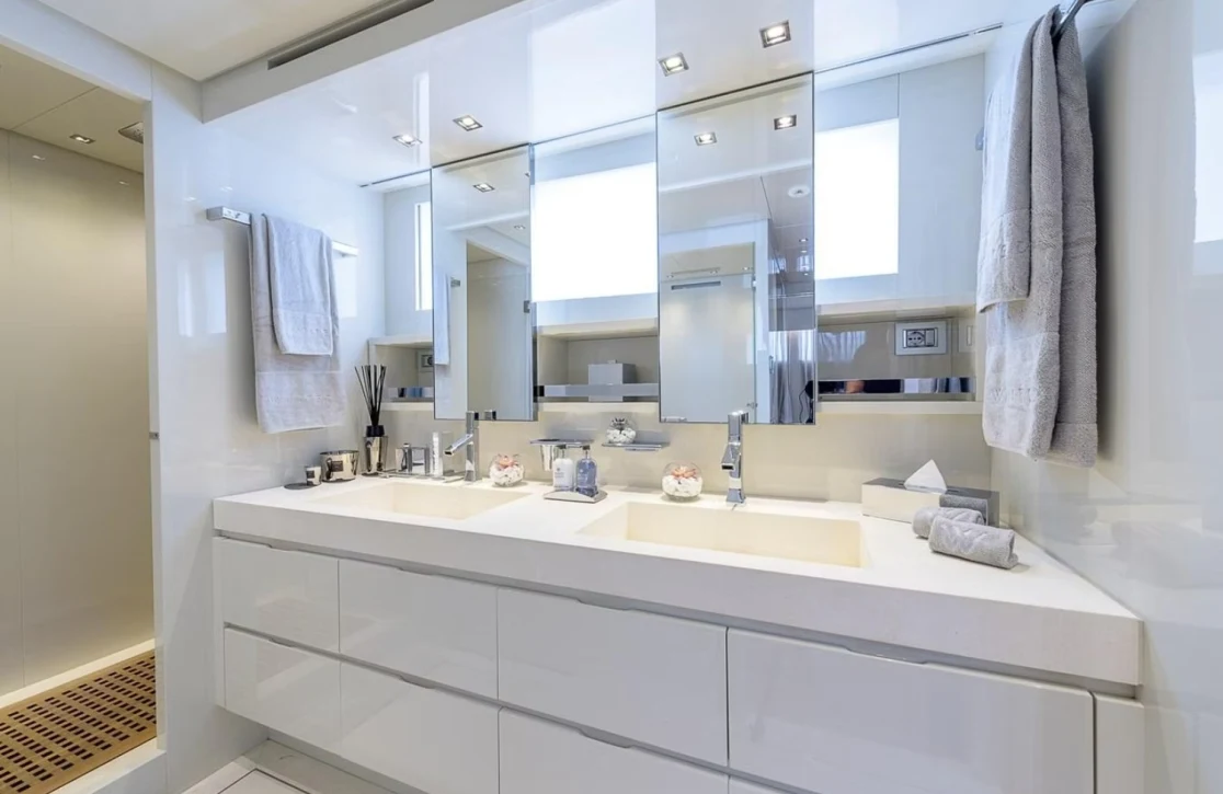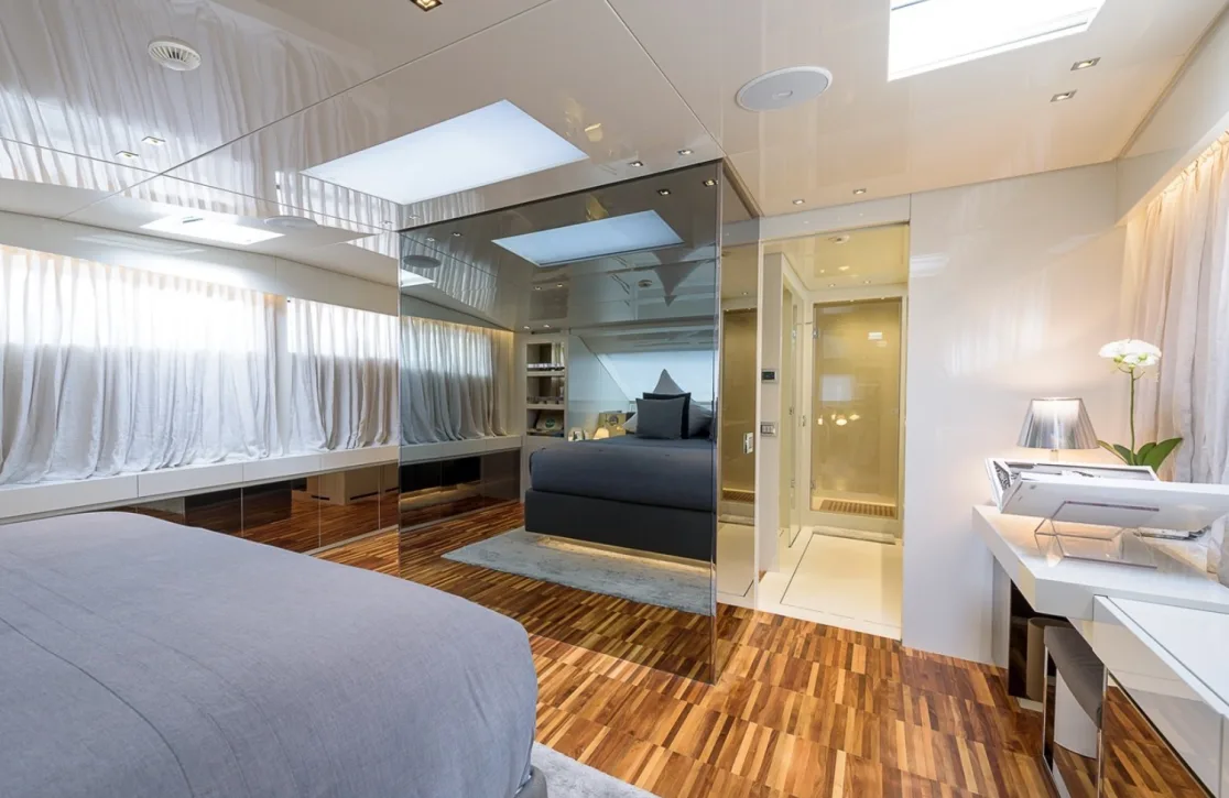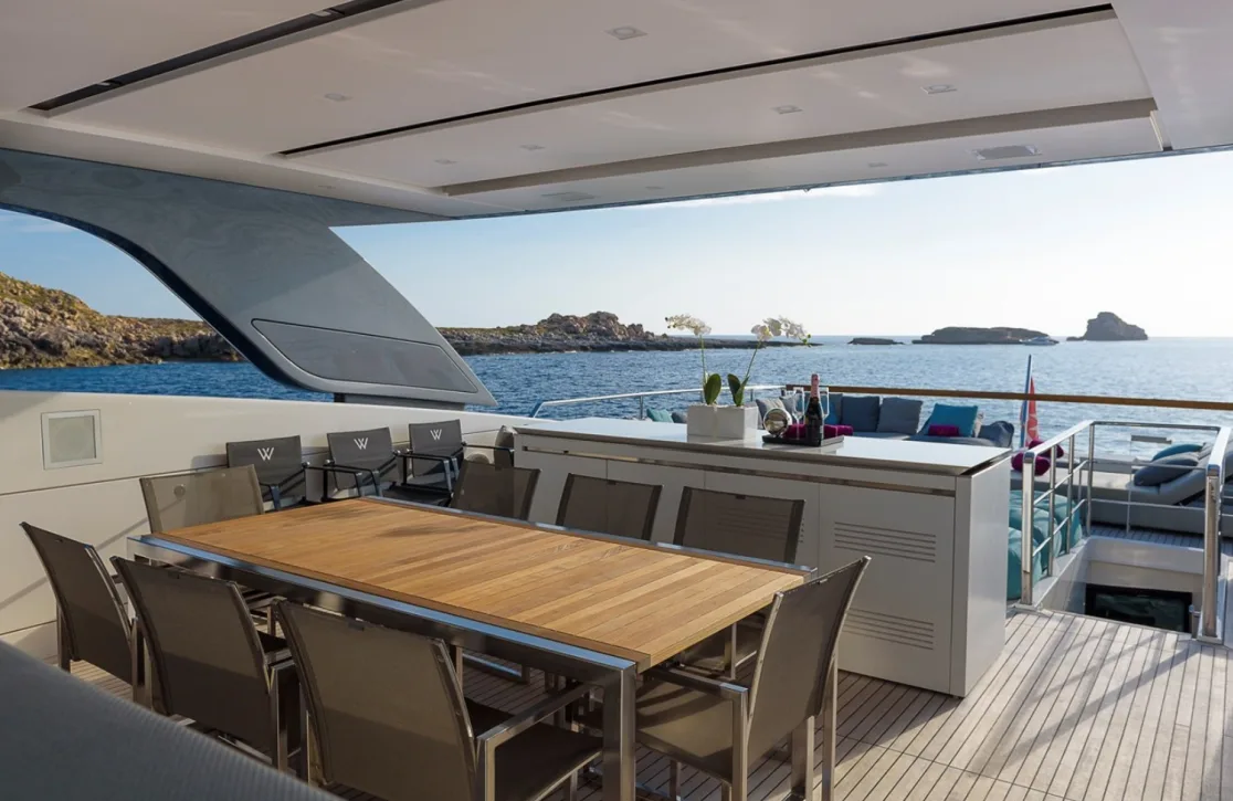 Step into a world where every detail is designed for your delight. The sun deck invites you to bask under the sun on plush sunpads, while the air-conditioned interiors promise a cool refuge from the summer heat. At anchor, the yacht remains steady with its advanced stabilizers, ensuring a peaceful ambiance as you indulge in the onboard Wi-Fi to stay connected with the world. Whether enjoying a quiet evening under the stars or an afternoon of lively conversation, the thoughtfully appointed spaces onboard ‘Musha’ create an atmosphere of effortless elegance and comfort.