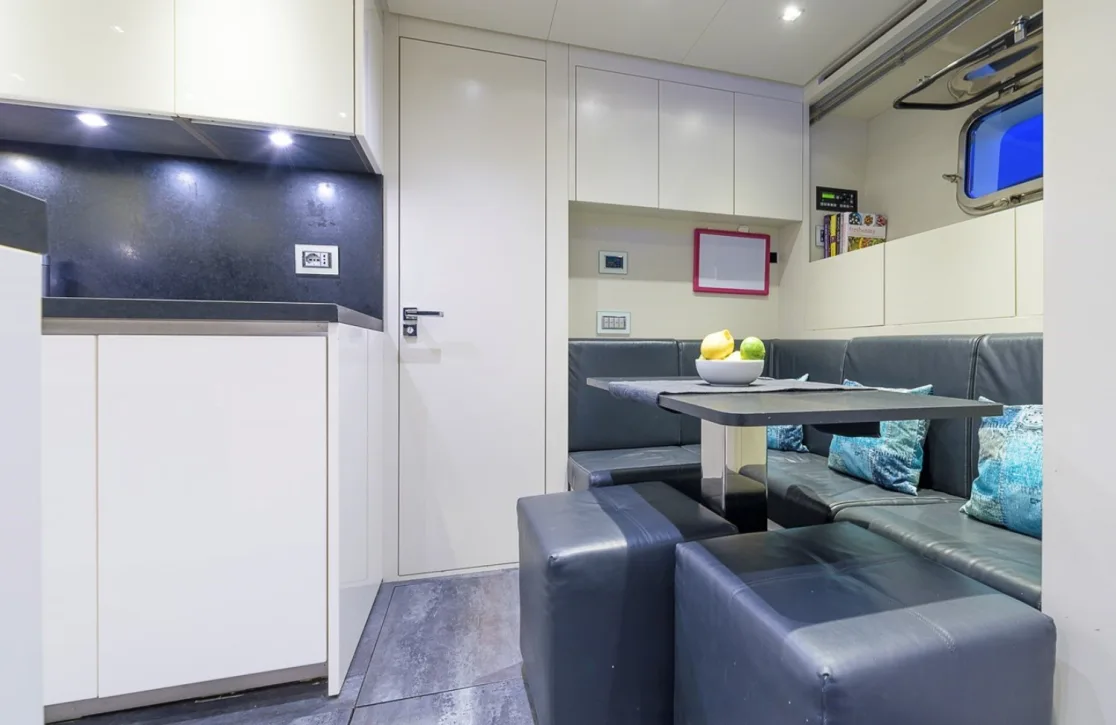 Accommodating up to eight guests, ‘Musha’ features four beautifully appointed cabins, including a master suite on the main deck, a VIP stateroom, and two additional double cabins. Each room is a haven of tranquility, offering sumptuous bedding and stylish decor that invite restful nights and refreshing mornings. The gentle sway of the yacht lulls you into a deep sleep, and as dawn breaks, the promise of another day filled with adventure and relaxation awaits.
