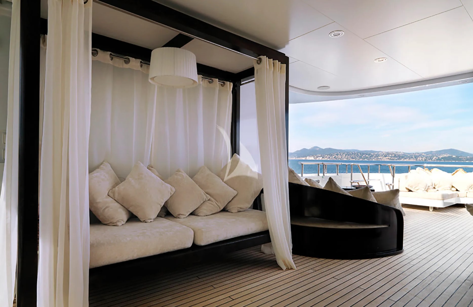 Retreat to one of My Little Violet’s five exquisite cabins, each a private haven of rest and relaxation. With space for 10 guests, the yacht features a master suite, a VIP cabin, two double cabins, and a twin cabin, all designed to offer a sanctuary of serenity. Awaken to the gentle rocking of the sea and the promise of another day in paradise, enveloped in the finest linens and surrounded by tasteful design. The attentive crew is always on hand to ensure that your stay is as comfortable as it is memorable.