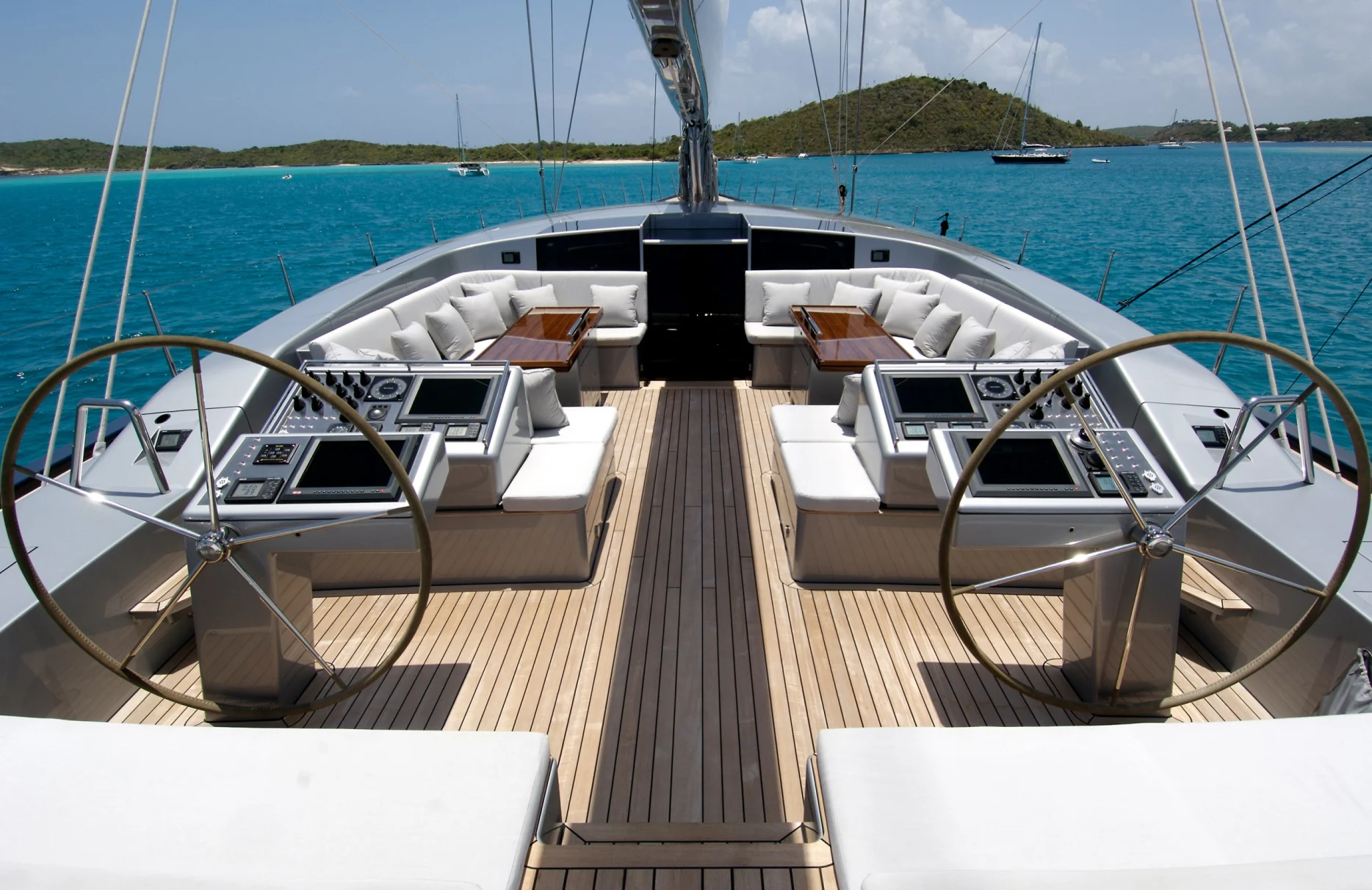 Mystere accommodates up to seven guests within four exquisitely appointed cabins, each offering a private retreat with the gentle lull of the ocean as your nightly serenade. Wake up to the soothing rhythm of the waves and sunlight filtering through elegant windows, setting the tone for a day of exploration and leisure. The owner’s suite, with its direct access to a private aft cockpit, offers a unique blend of privacy and open-air luxury, making mornings a memorable affair.