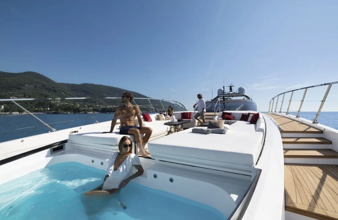 On the N1, each day unfolds with the promise of relaxation and rejuvenation. Begin your morning with a refreshing dip in the deck jacuzzi, where the gentle sea breeze accompanies your solitude. As the sun reaches its zenith, retreat to the shaded comfort of the outdoor bar, where a bespoke cocktail awaits. The air-conditioned interiors offer a cool sanctuary from the midday heat, while the expansive sun deck beckons for an afternoon of leisure, whether beneath the sun or stars. Wi-Fi connectivity ensures that you remain in touch with the world, while the tender garage stands ready for impromptu excursions.