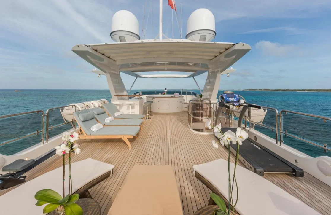 Onboard Namaste, every detail is crafted to enhance your journey. The sun-kissed deck provides a perfect setting for leisurely afternoons, where you can unwind in the jacuzzi while taking in panoramic views. For those who seek a balance of tranquility and activity, the state-of-the-art gym offers a space to invigorate your senses. As the day turns to night, the underwater lights create a mesmerizing ambiance, transforming the sea into a canvas of dancing reflections. Whether dining al fresco with the ocean breeze or enjoying a film under the stars, the spaces aboard Namaste are designed for both intimate moments and joyful gatherings.