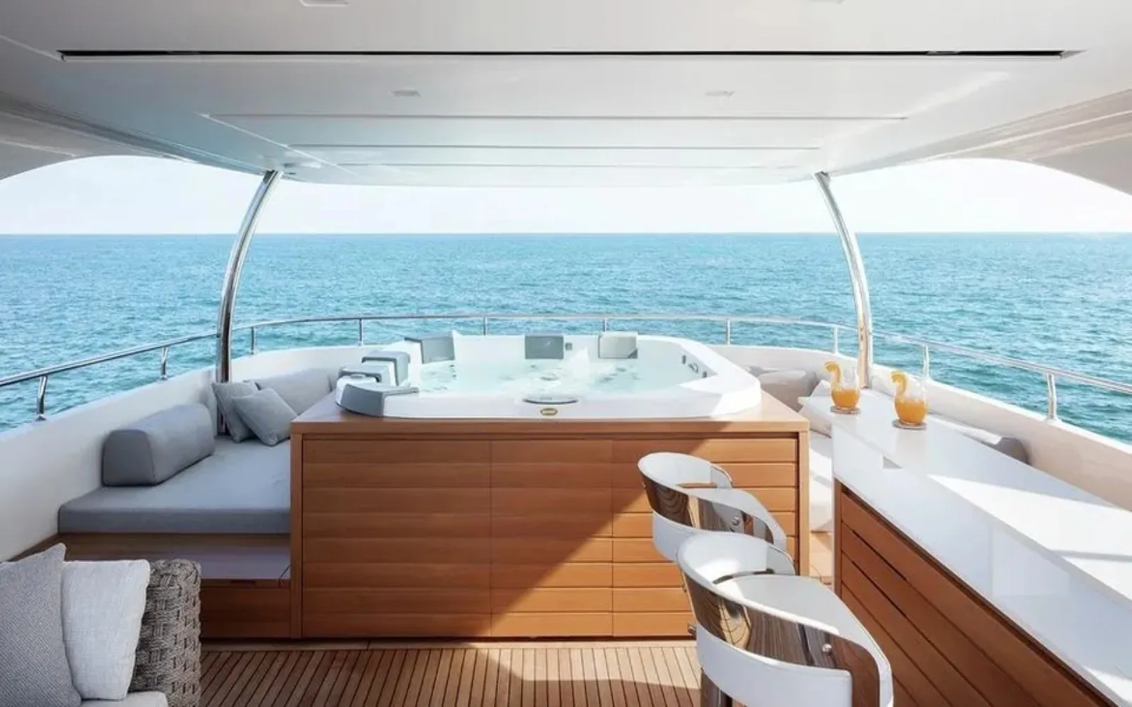 Onboard Namaste, every moment is designed for your ultimate enjoyment. Picture yourself unwinding in the deck jacuzzi, a drink in hand, as the sun sets on another perfect day at sea. The sumptuous social spaces invite lively gatherings, while Wi-Fi connectivity ensures you can share your experiences with loved ones back home. Whether you’re basking in the sun on plush sunpads or enjoying an alfresco meal prepared on the BBQ, the yacht’s amenities create a seamless blend of relaxation and entertainment.