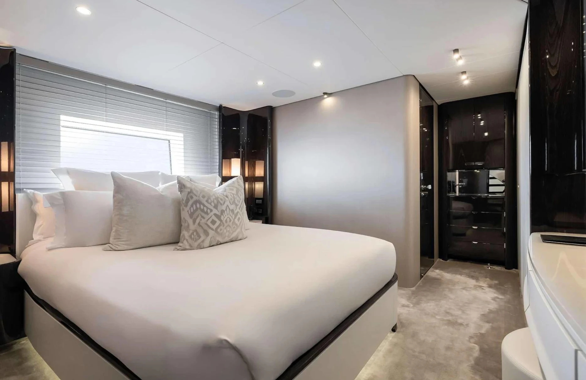 Life aboard Nemesis is an ode to comfort and elegance. Picture yourself reclining on the sun deck, savoring a gentle sea breeze as you lounge on plush sunpads. The deck jacuzzi beckons for a soothing soak, while an exterior bar stands ready to serve your favorite cocktail as the sun dips below the horizon. Whether enjoying a casual afternoon BBQ or staying connected with Wi-Fi amidst the serenity of the ocean, Nemesis caters to your every desire. Foredeck seating offers a private nook for intimate conversations or quiet reflection, while the swimming platform invites you to dip into the azure waters at your leisure.