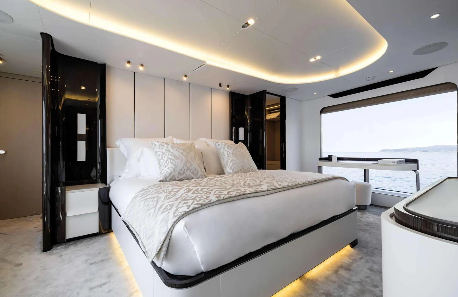 Imagine a week aboard the distinguished Nemesis, a 32-meter masterpiece from Azimut, designed by the creative minds at Salvagni Architetti. Built in 2021, Nemesis is an invitation to explore both the open seas and hidden gems ashore with grace and style. Her sleek profile, enhanced by a GRP hull and carbon fiber superstructure, allows her to glide effortlessly at a cruising speed of 21 knots, promising smooth transitions between breathtaking locales. With a range of up to 1,000 nautical miles, your adventures know no bounds, whether you seek the serene beauty of secluded coves or the vibrant allure of bustling harbors.