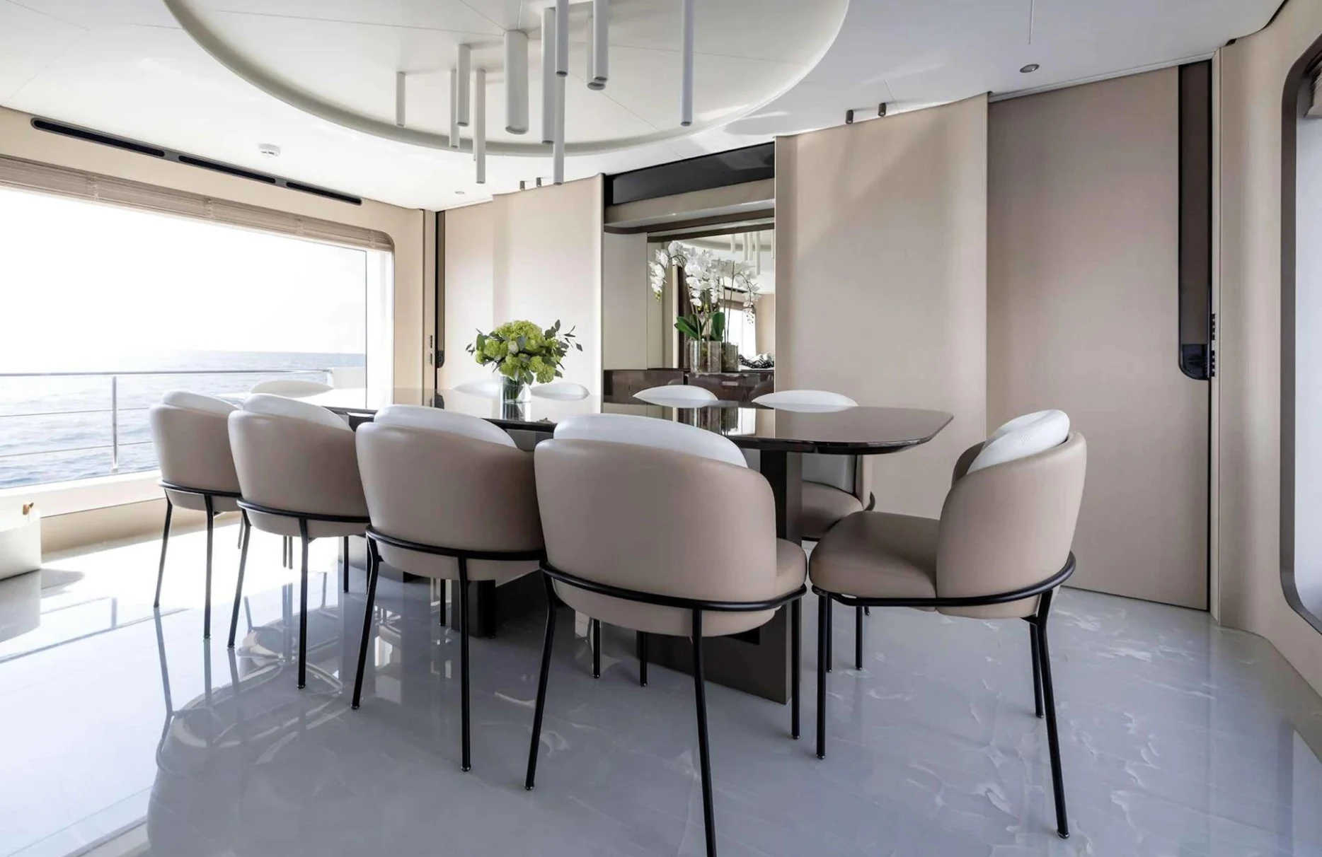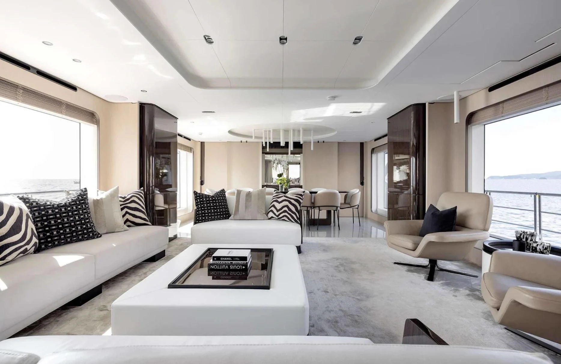 Aboard Nemesis, life unfolds in luxurious harmony, where each day is a new discovery. From the moment you step onto her sun-kissed decks, you are enveloped in an atmosphere of refined leisure. Her five opulent cabins accommodate up to 10 guests, providing an intimate retreat after a day of exploration. The attentive service of a dedicated crew of five ensures your experience is seamless, allowing you to immerse yourself fully in the pleasures of life at sea.