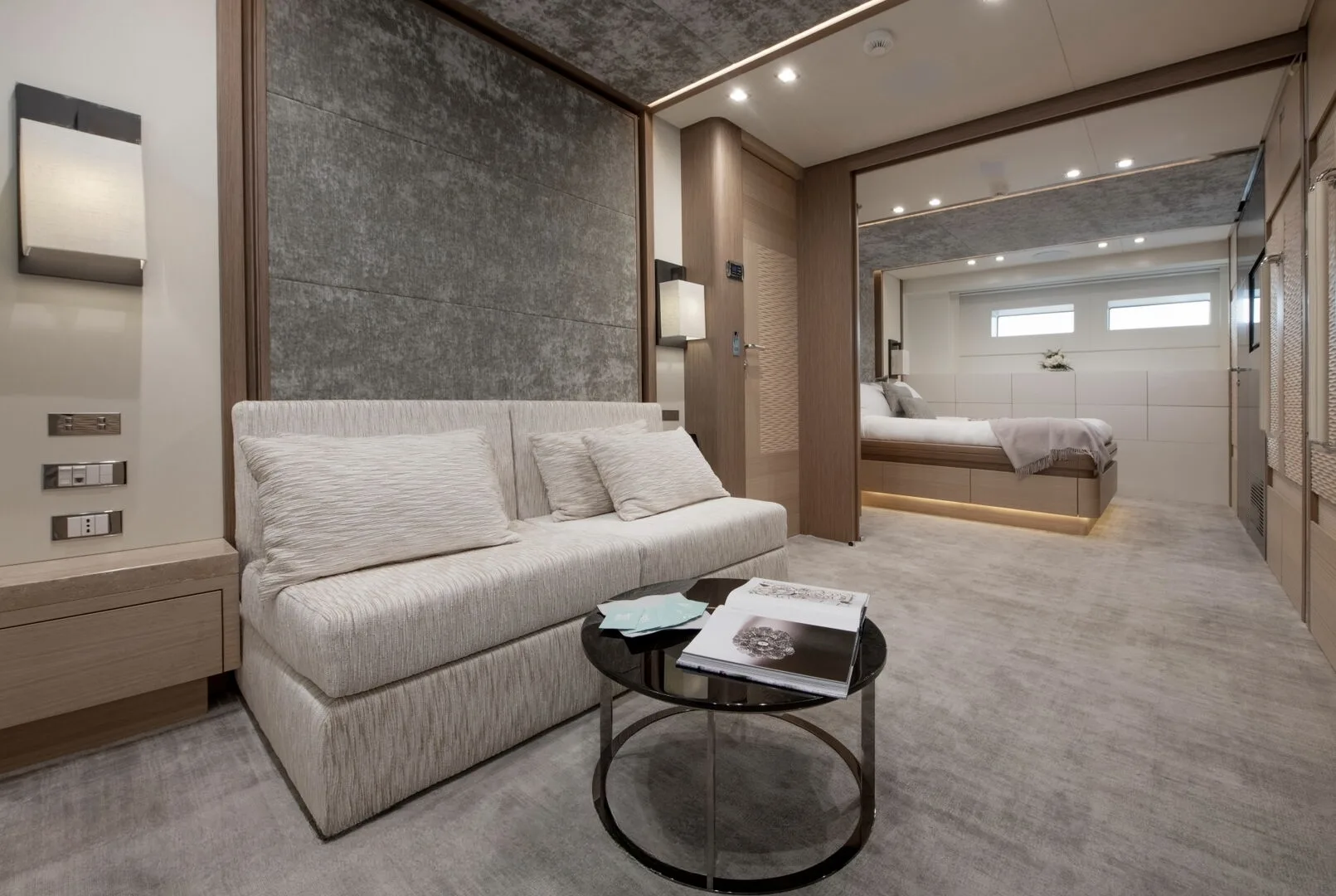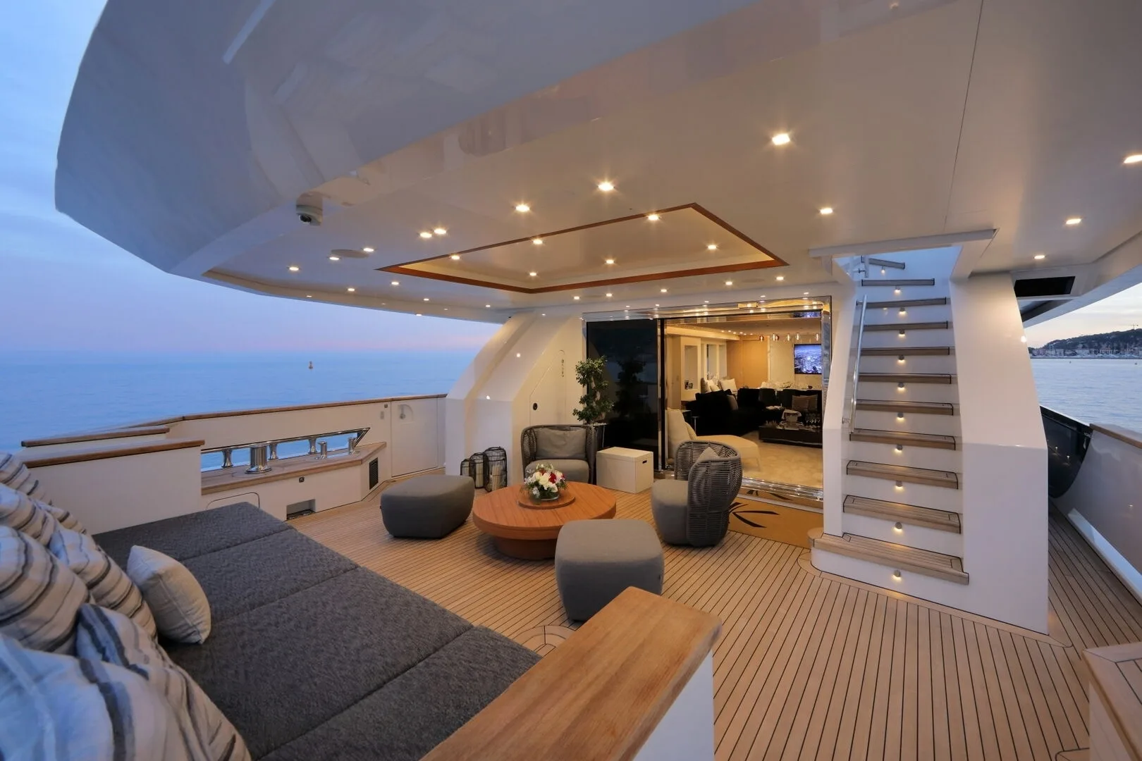 Step aboard and find yourself enveloped in the sophistication curated by Italian designer Hot Lab. The yacht’s luxurious interiors and expansive decks offer a canvas for unforgettable experiences, whether you’re sipping a morning espresso as the sun rises over the horizon or indulging in gourmet dining under a starlit sky. With her advanced stabilization system, ‘Next’ promises smooth sailing and unparalleled comfort, making her an ideal choice for those seeking a perfect balance between adventure and relaxation.