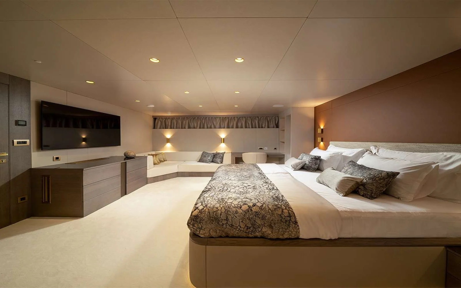 Nocturno welcomes up to twelve guests into its embrace, offering six elegantly appointed cabins that promise restful nights at sea. The master suite exudes sophistication, while a VIP cabin and additional double cabins provide a serene retreat. Two of these cabins can transform to suit your needs, ensuring flexibility and comfort. As you wake each morning, the gentle sway of the yacht and the promise of a new horizon create a sense of adventure and discovery.
