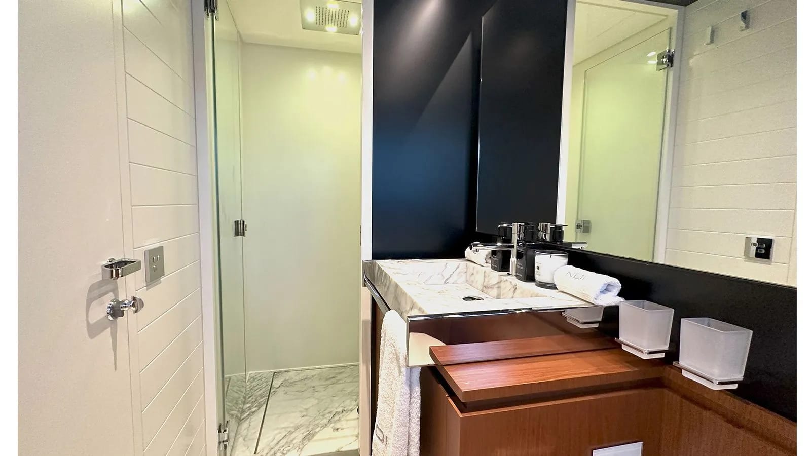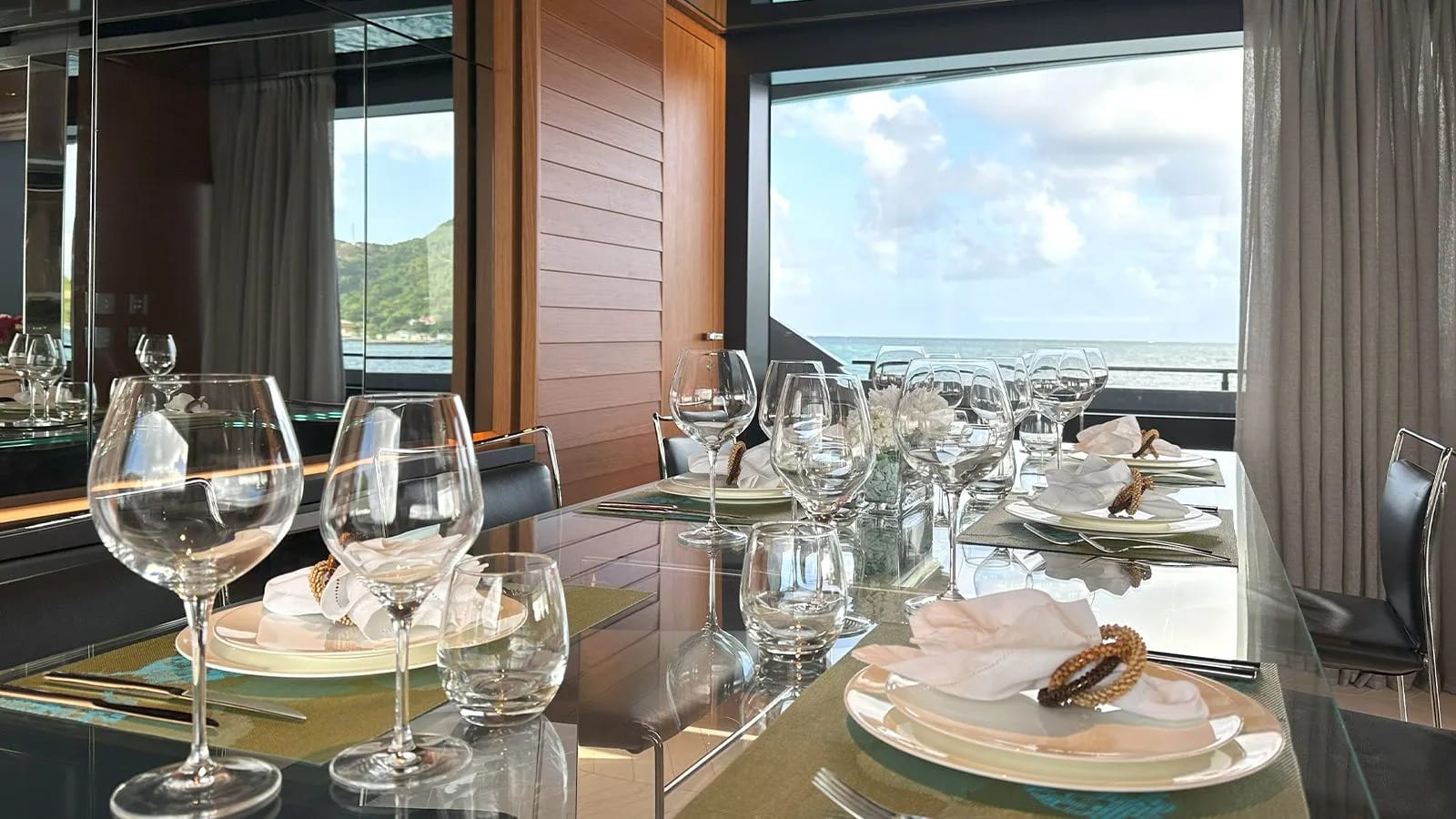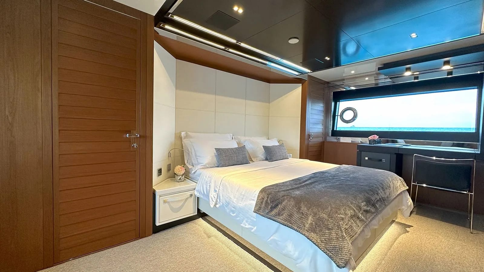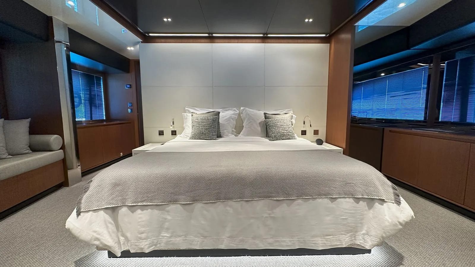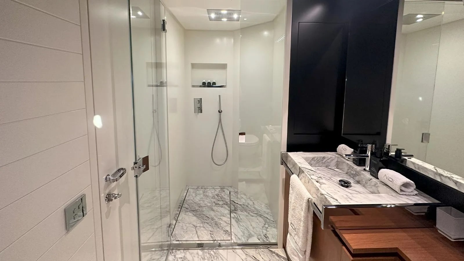 With accommodation for up to eight guests, ‘NOI’ offers a sanctuary of tranquility and elegance. The master suite, situated on the main deck, opens to breathtaking sea views, promising mornings filled with gentle sunlight. A VIP cabin, a double room, and a versatile cabin that converts from twin to double ensure a tailored experience for all. Each stateroom is a haven of plush comfort, where waking to the sound of the sea is a cherished delight. Thoughtful design and meticulous attention to detail ensure every night’s rest is as luxurious as the day.
