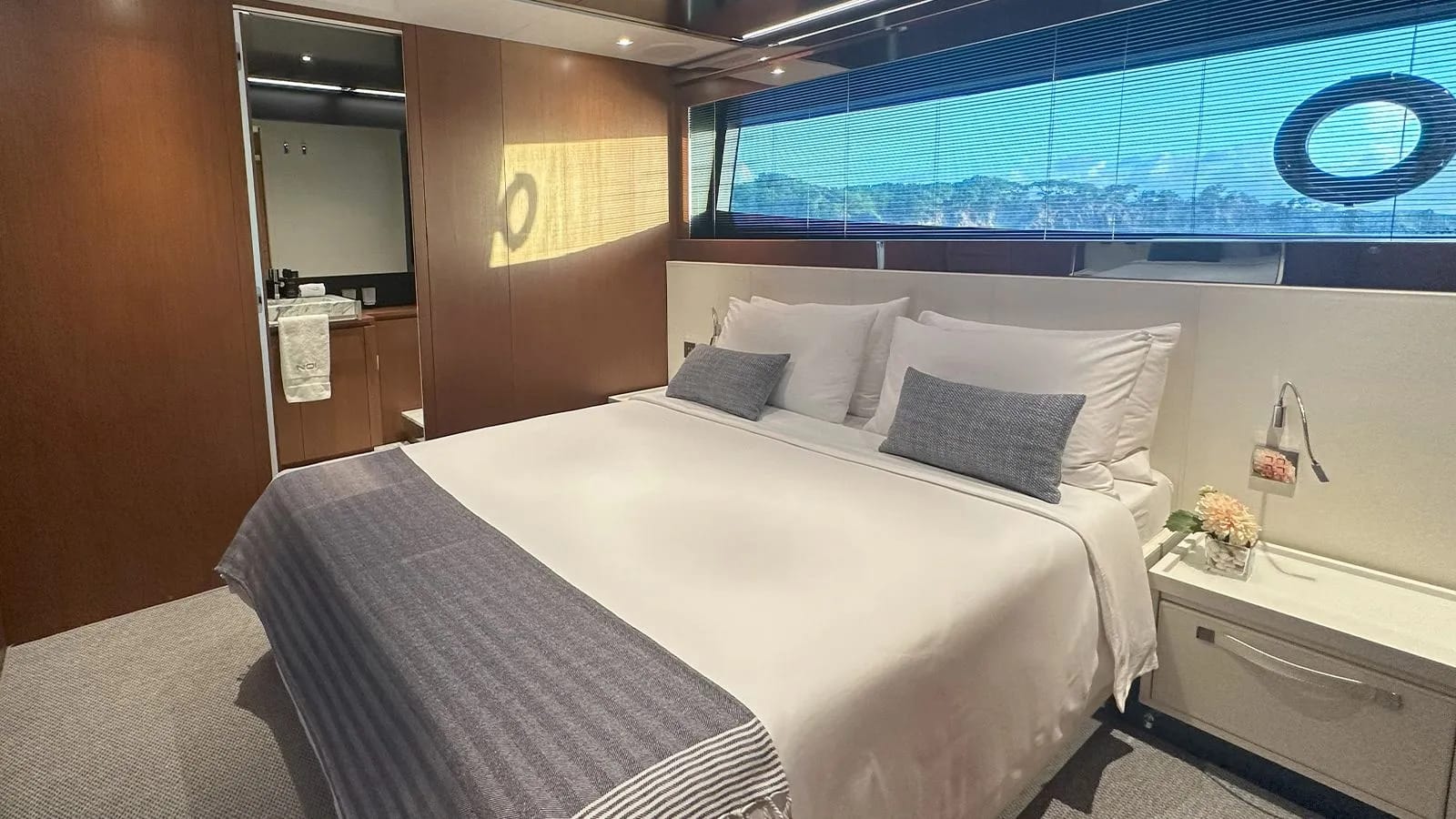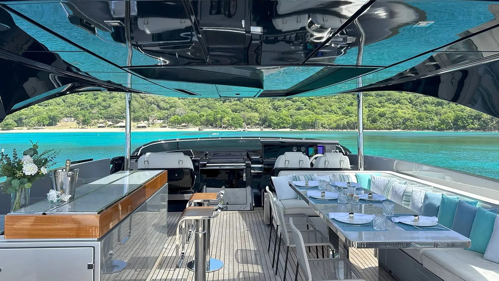 Life aboard ‘NOI’ is a symphony of comfort and style, where every detail is thoughtfully curated. Unwind in the sun-drenched embrace of the top deck, or find respite in the shaded foredeck seating as the world drifts by. With seamless Wi-Fi connectivity and air-conditioned interiors, staying connected and refreshed is effortless. As the sun sets, gather at the exterior bar for crafted cocktails, or indulge in a culinary delight prepared on the BBQ. The yacht’s swimming platform invites you to dip into crystal-clear waters, enhancing every moment of your maritime escape.