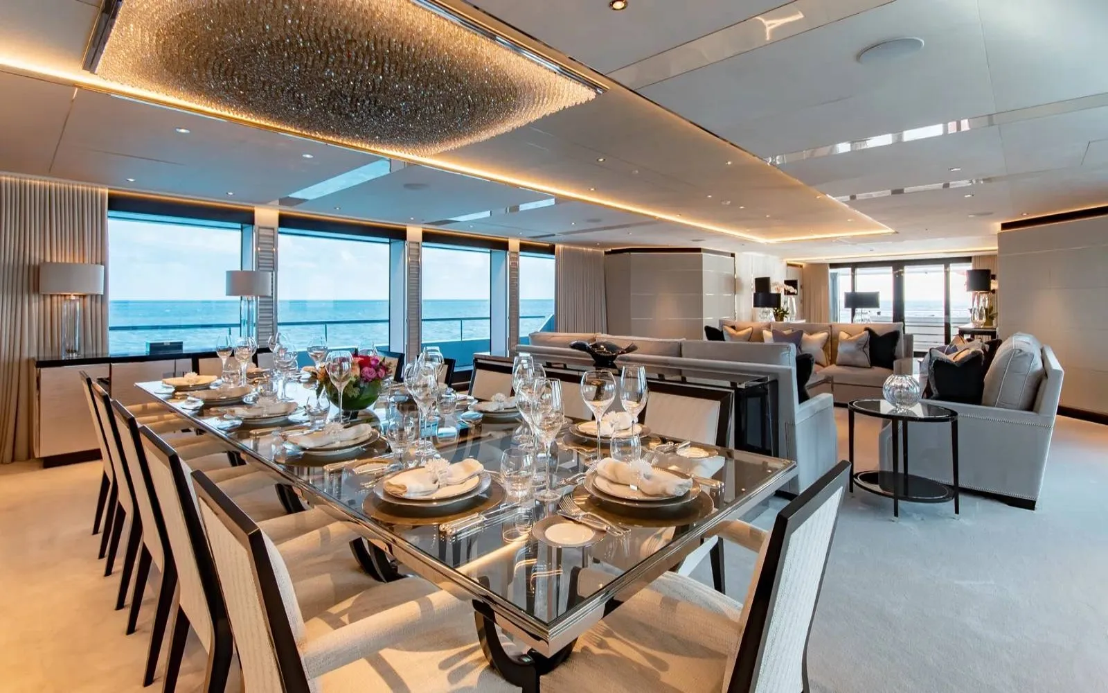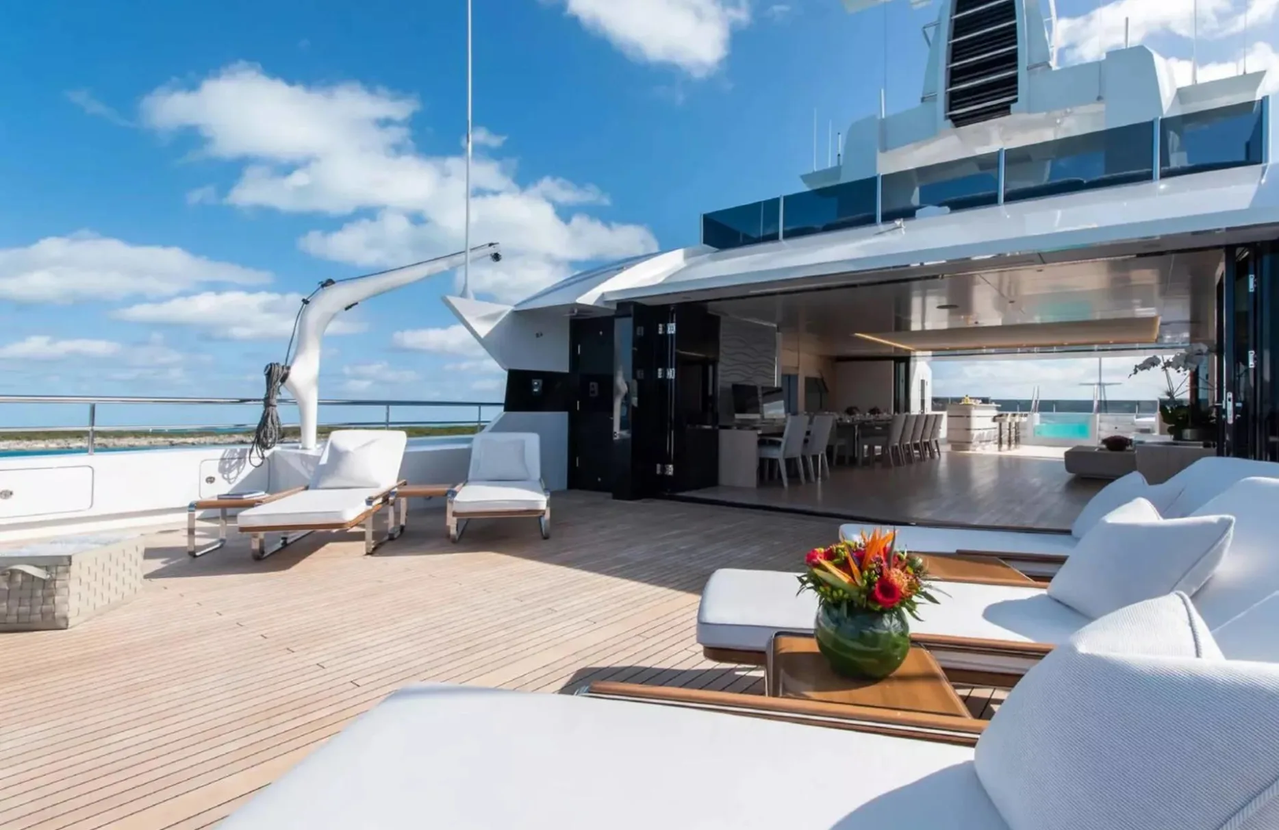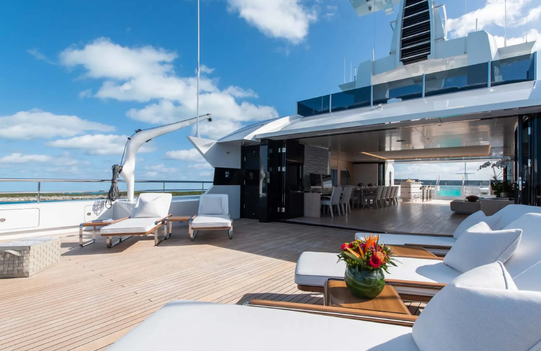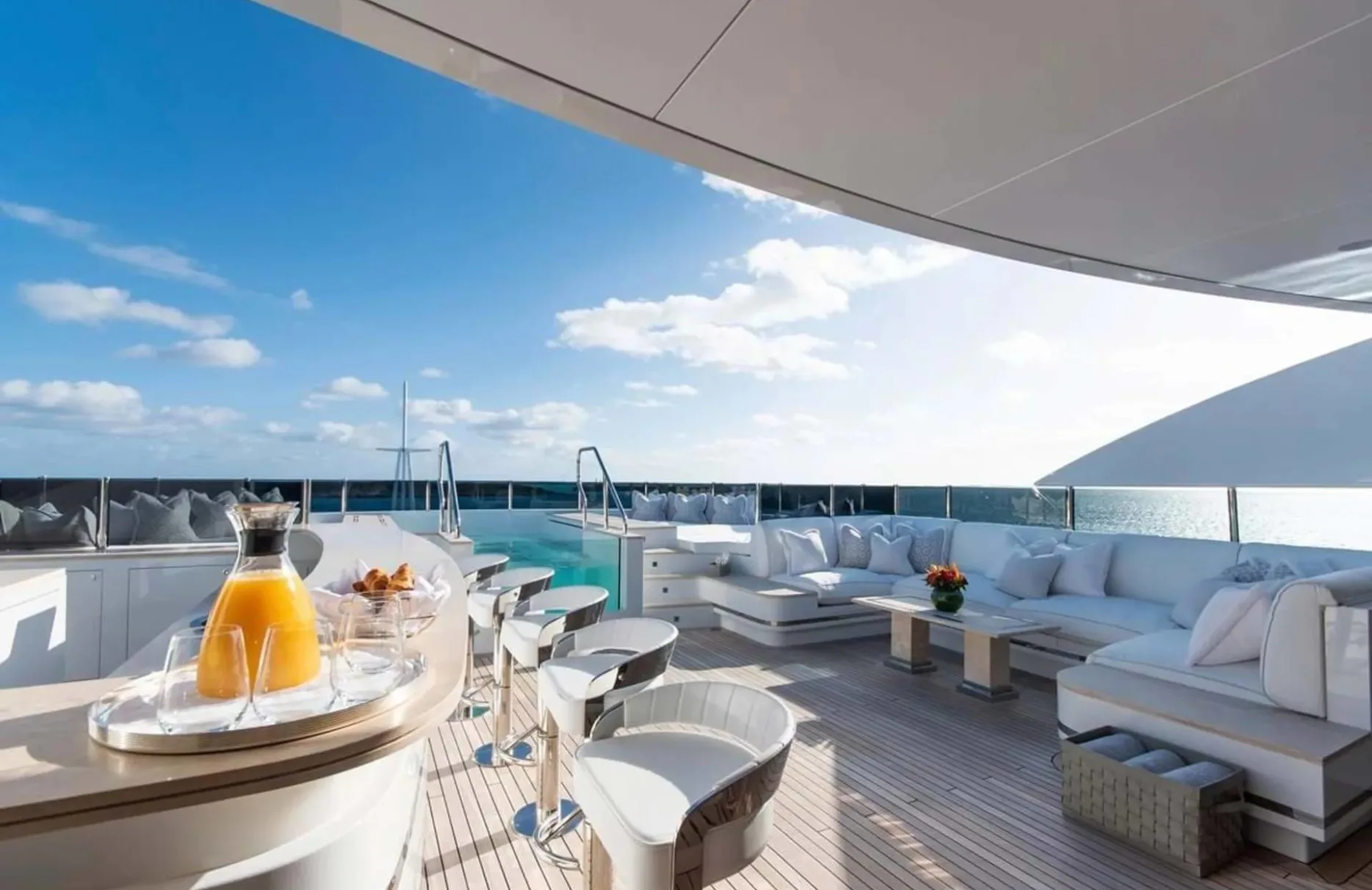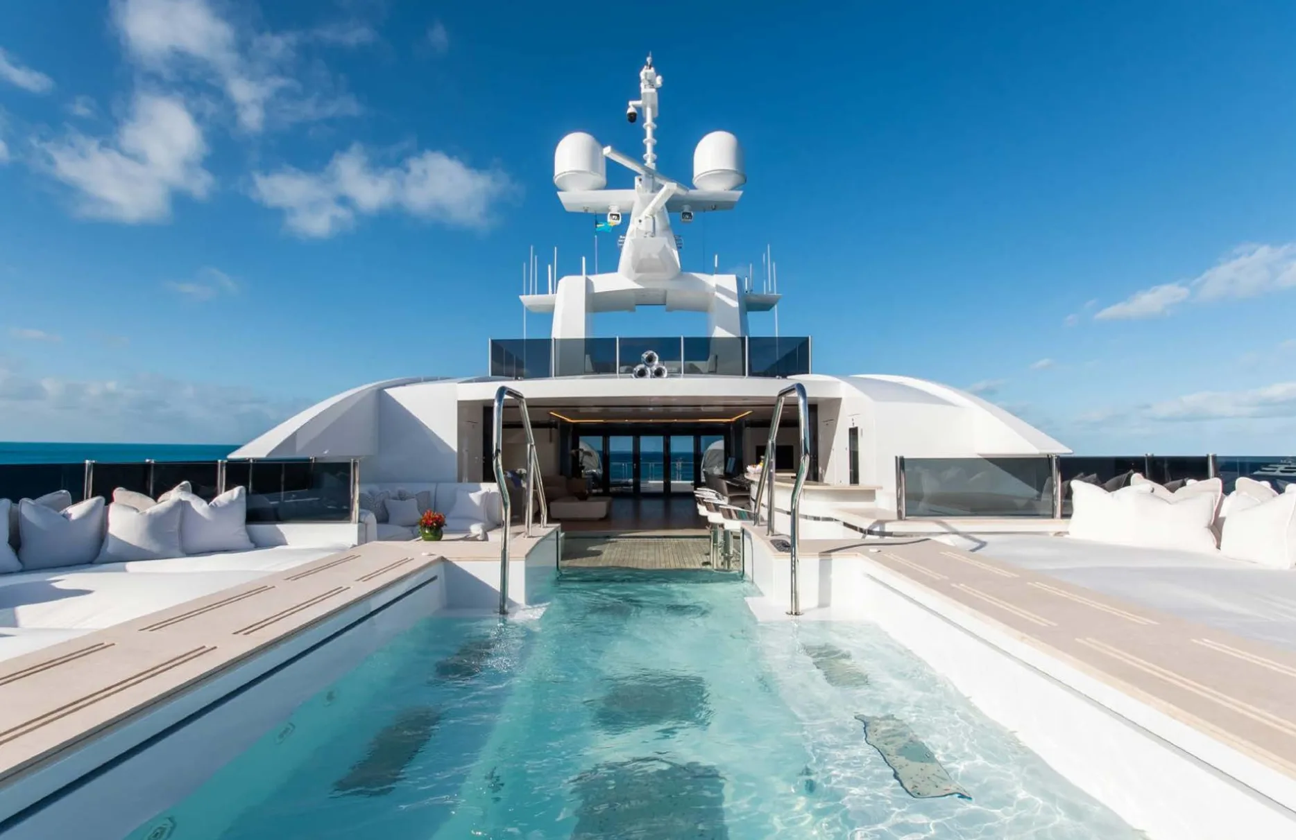 Onboard the North Star, your senses awaken to the harmonious blend of refined spaces and modern comforts. The yacht’s beach club beckons for leisurely afternoons by the water, while evenings find their perfect setting in a state-of-the-art movie theatre. For those who seek wellness, a fully equipped gym and a soothing massage room provide sanctuaries of rejuvenation. The expansive decks offer inviting social spaces where guests can gather under the stars, perhaps enjoying a dip in the jacuzzi or simply reveling in the tranquil sea breeze. Connectivity meets convenience with Wi-Fi available throughout, ensuring you remain linked to the world, should you choose.