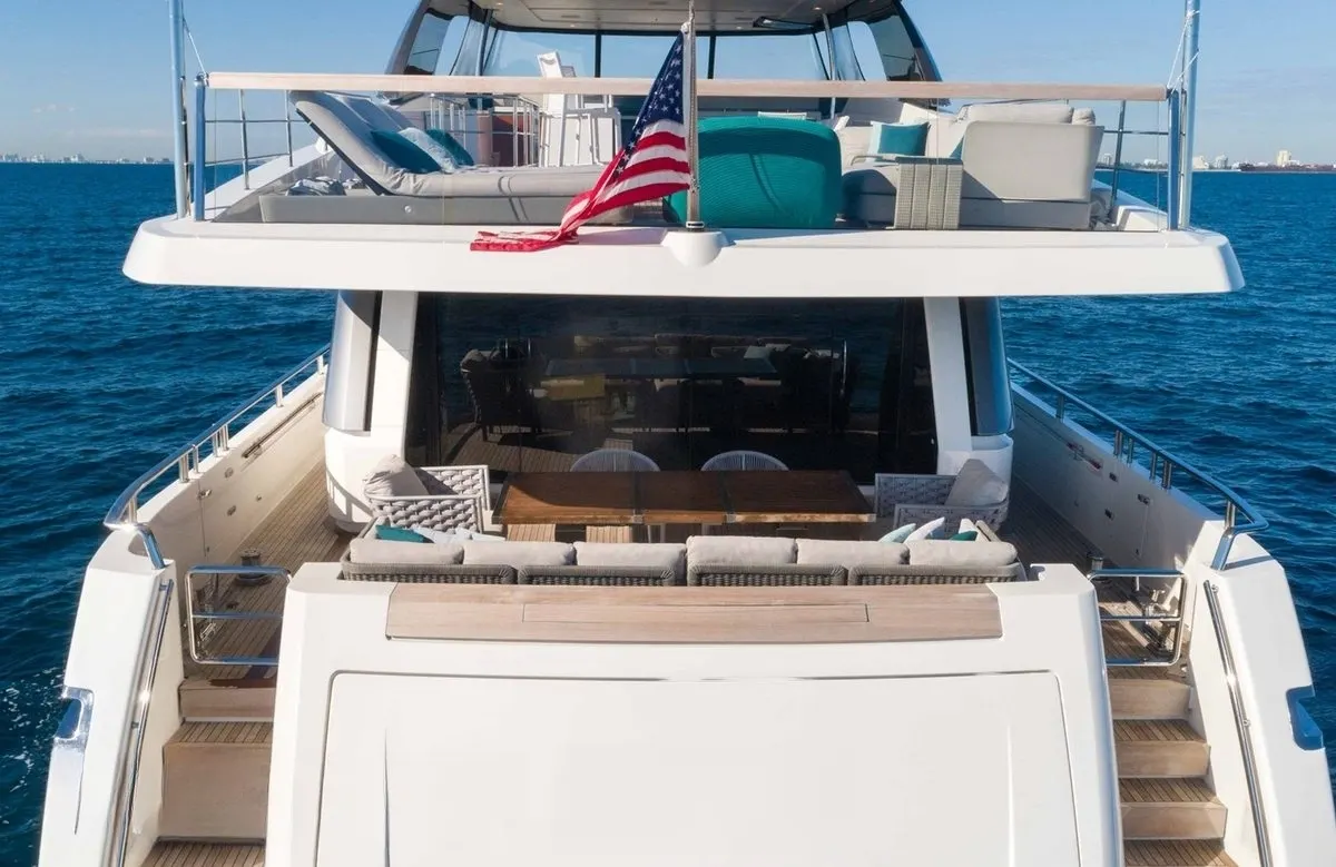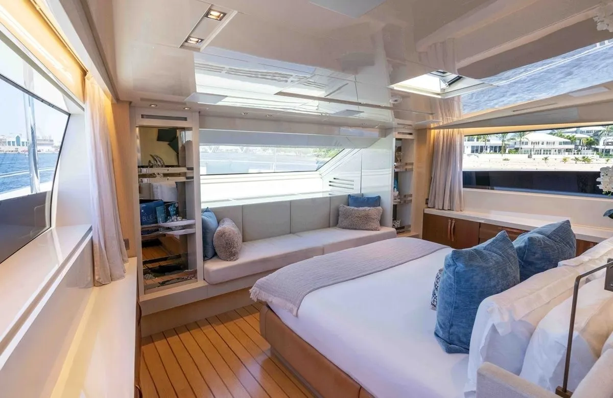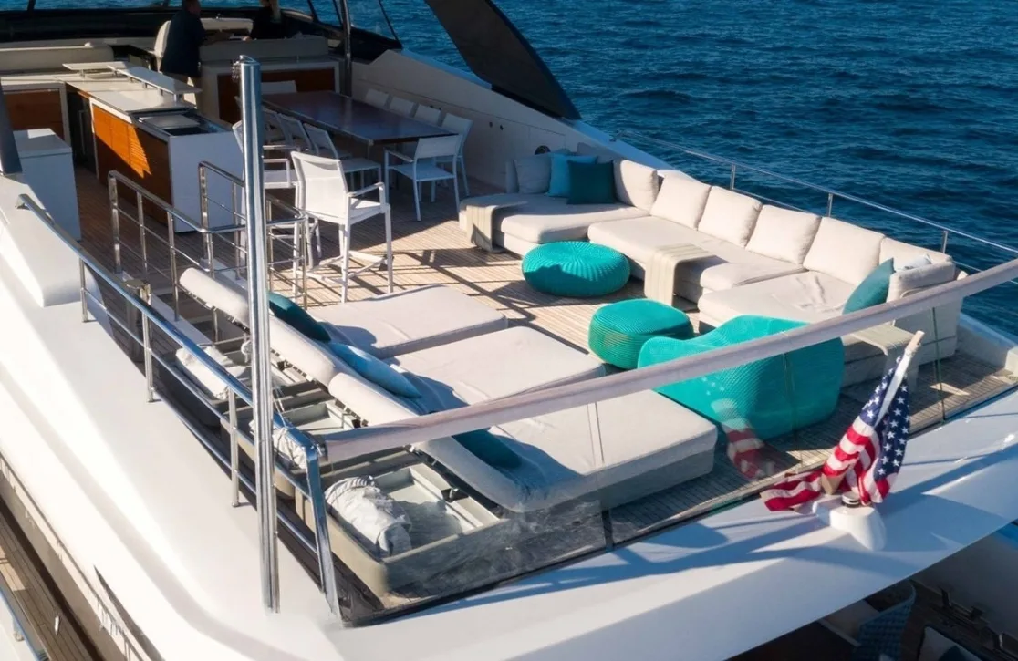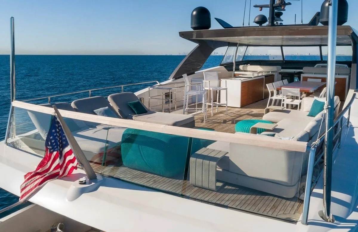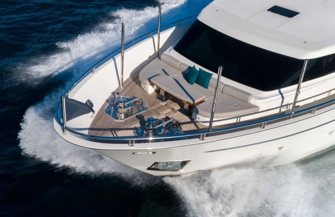 Life aboard Notorious is a harmonious blend of comfort and sophistication. Picture yourself indulging in the gentle sea breeze while lounging on the sun deck, or enjoying a refreshing cocktail crafted at the exterior bar. Whether it’s savoring the serene ambiance with underwater lights illuminating the sea below or taking advantage of the hydraulic swim platform for spontaneous dips into the ocean, every moment is curated for your enjoyment. With state-of-the-art Wi-Fi and climate-controlled air conditioning throughout, this vessel ensures that all modern conveniences enhance the timeless pleasure of being at sea.