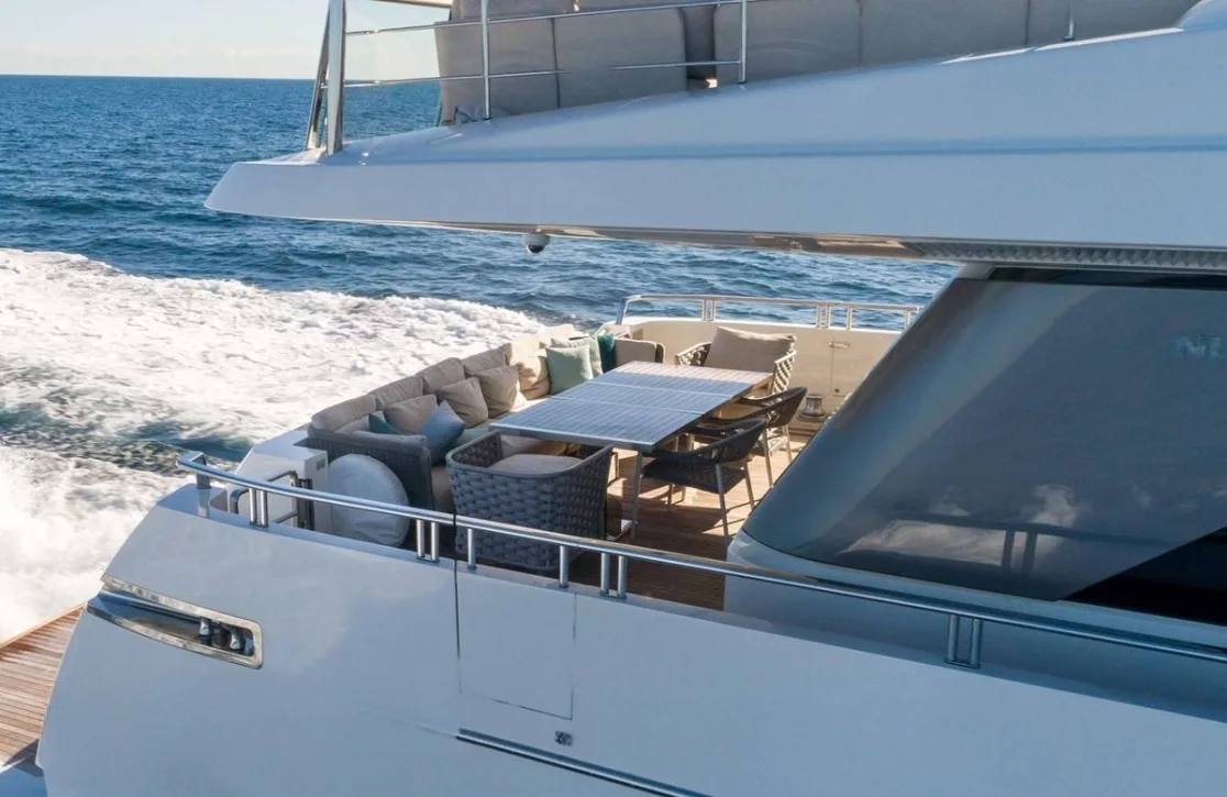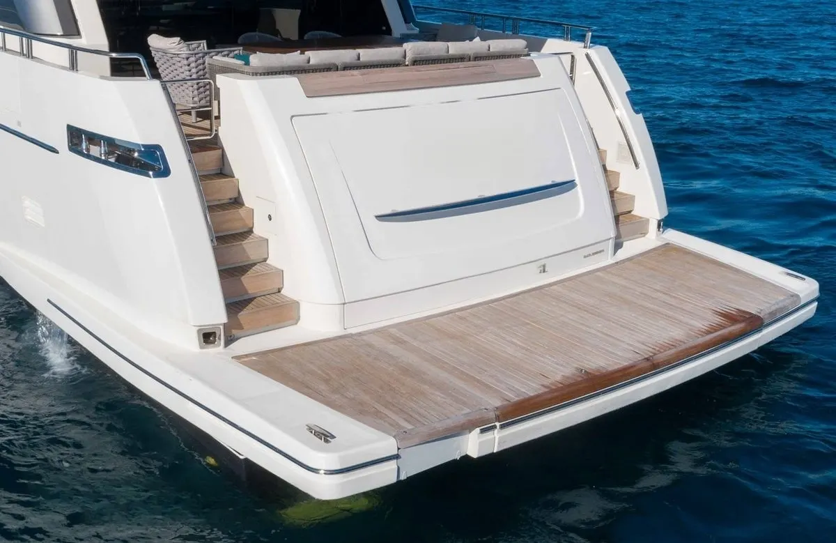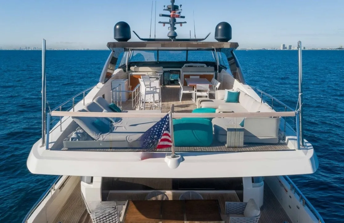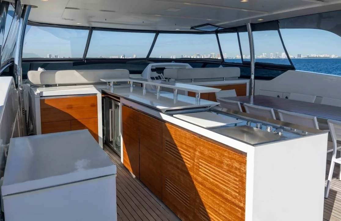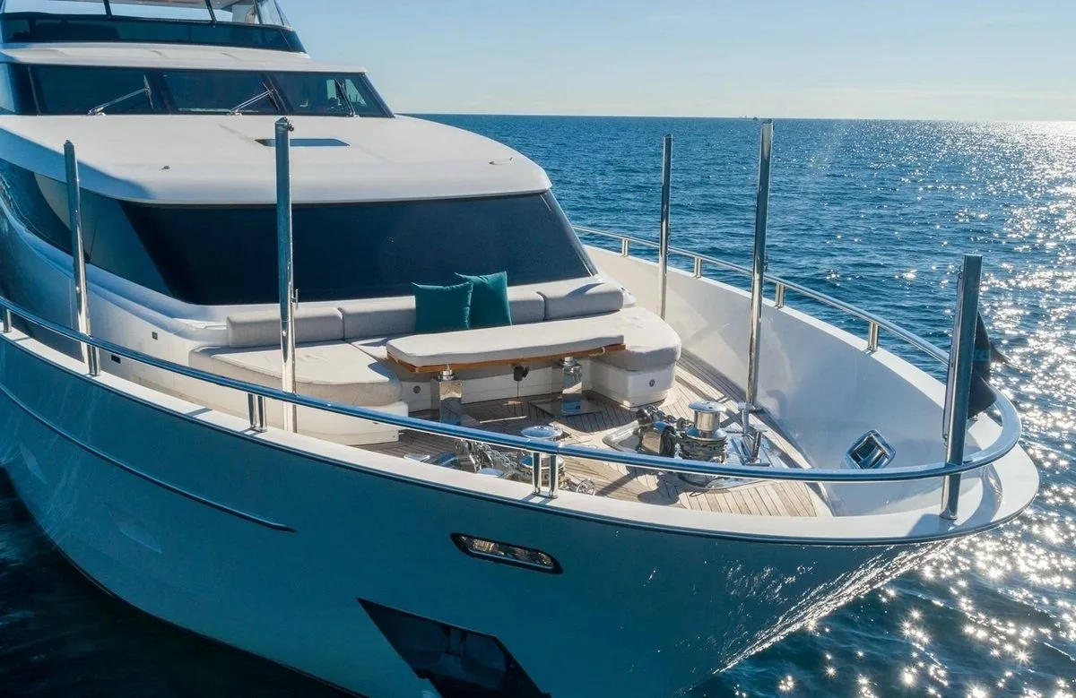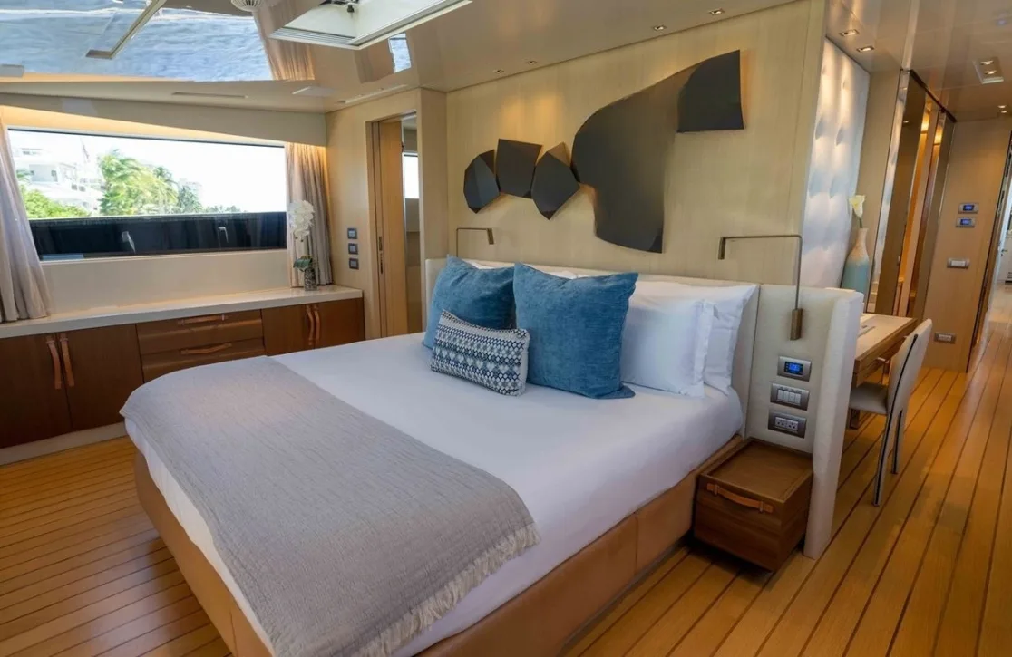 Life aboard Notorious is a harmonious blend of comfort and sophistication. Picture yourself indulging in the gentle sea breeze while lounging on the sun deck, or enjoying a refreshing cocktail crafted at the exterior bar. Whether it’s savoring the serene ambiance with underwater lights illuminating the sea below or taking advantage of the hydraulic swim platform for spontaneous dips into the ocean, every moment is curated for your enjoyment. With state-of-the-art Wi-Fi and climate-controlled air conditioning throughout, this vessel ensures that all modern conveniences enhance the timeless pleasure of being at sea.