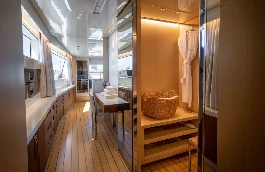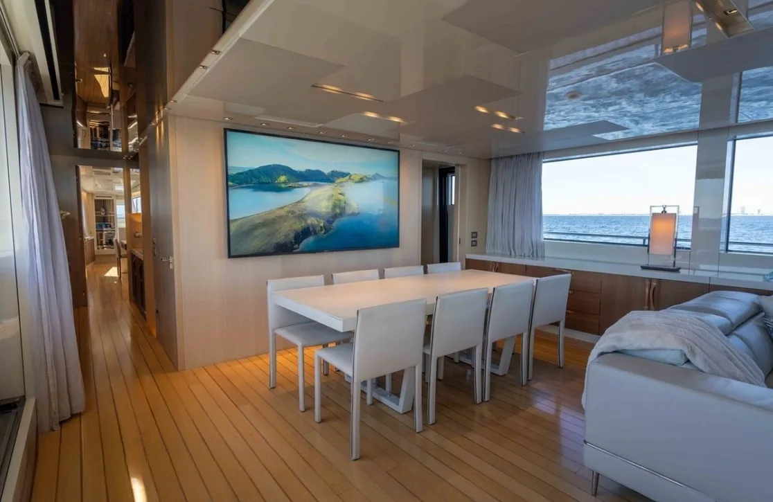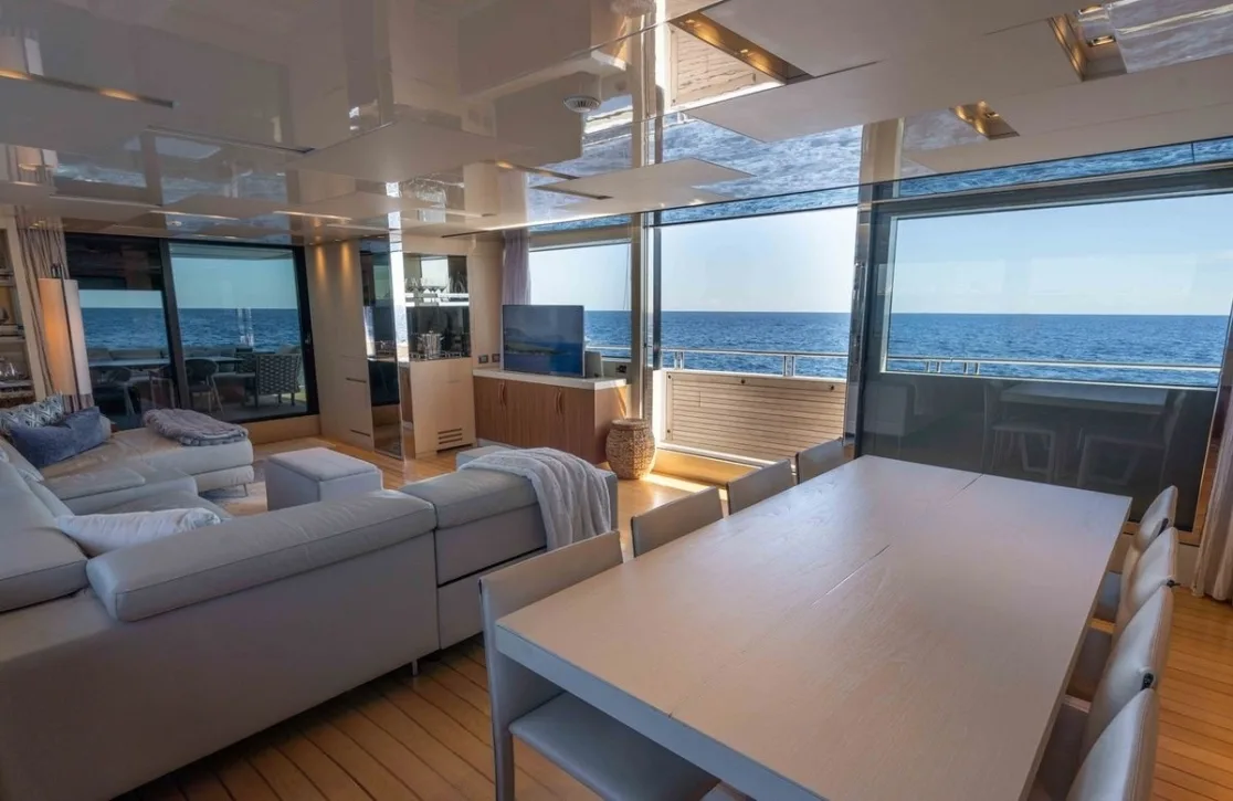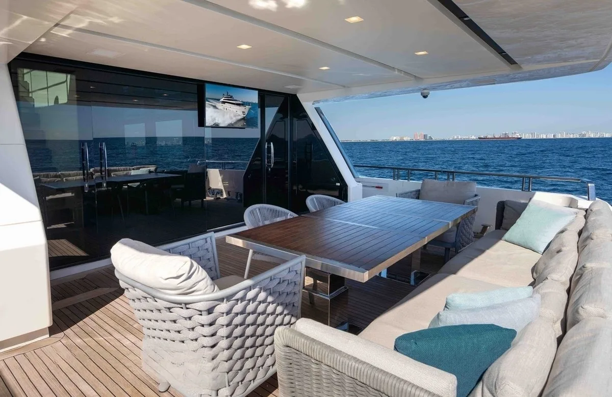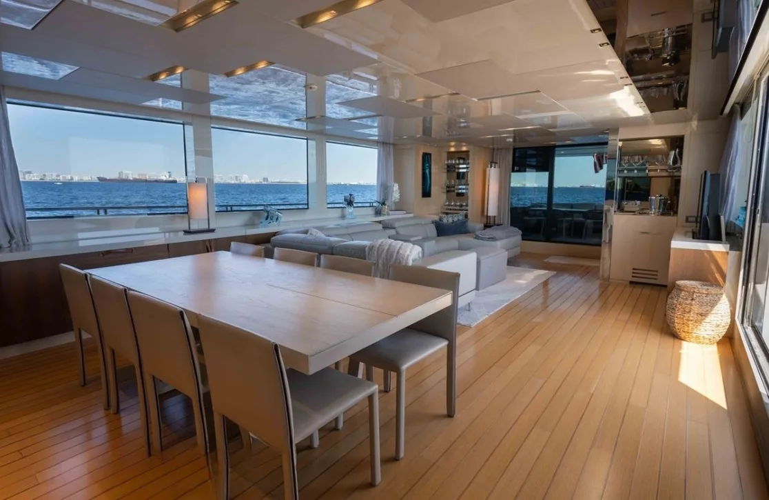 Life aboard Notorious is a harmonious blend of comfort and sophistication. Picture yourself indulging in the gentle sea breeze while lounging on the sun deck, or enjoying a refreshing cocktail crafted at the exterior bar. Whether it’s savoring the serene ambiance with underwater lights illuminating the sea below or taking advantage of the hydraulic swim platform for spontaneous dips into the ocean, every moment is curated for your enjoyment. With state-of-the-art Wi-Fi and climate-controlled air conditioning throughout, this vessel ensures that all modern conveniences enhance the timeless pleasure of being at sea.