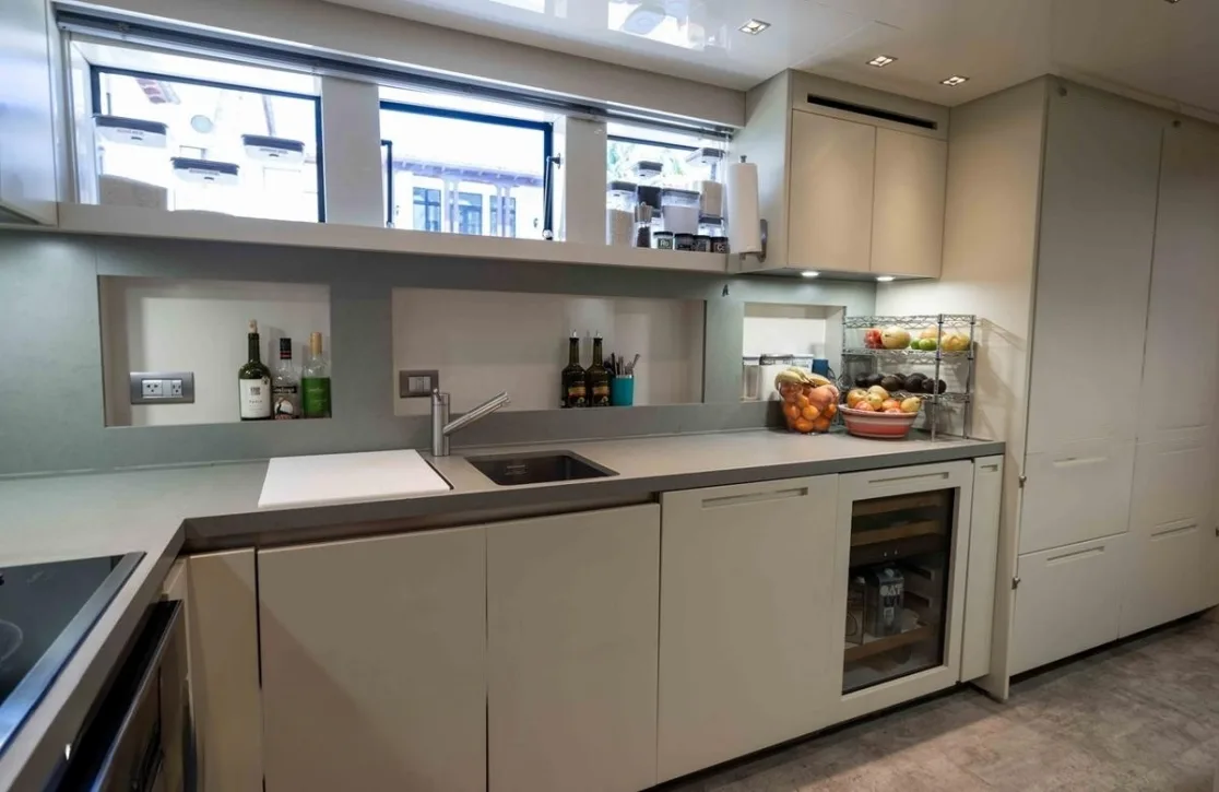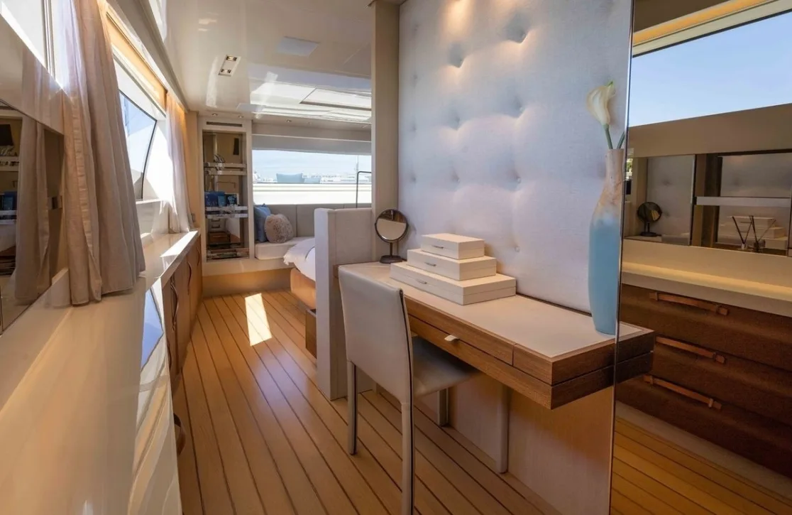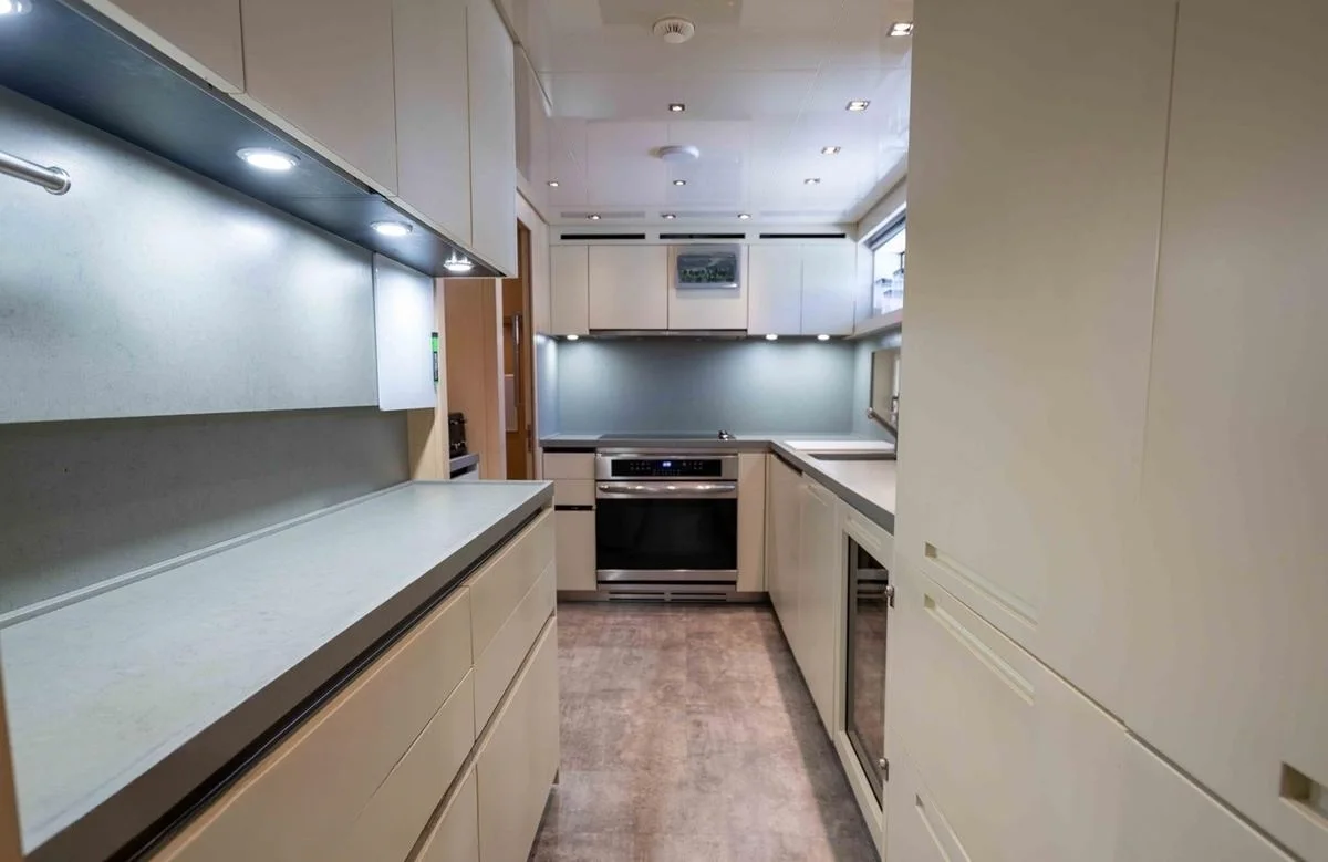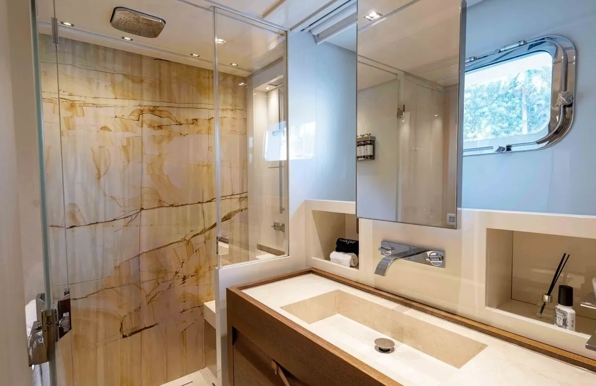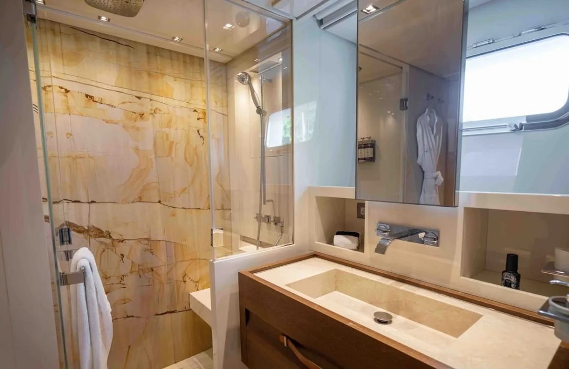 Notorious accommodates up to ten guests across five impeccably designed cabins, each a sanctuary of tranquility and style. As you awaken to the gentle sway of the ocean, the master suite envelops you in its refined elegance, while the VIP and additional guest cabins offer equally plush retreats. The thoughtful layout ensures that every guest experiences the perfect balance of privacy and comfort, allowing for restful nights and leisurely mornings spent gazing out at endless horizons.