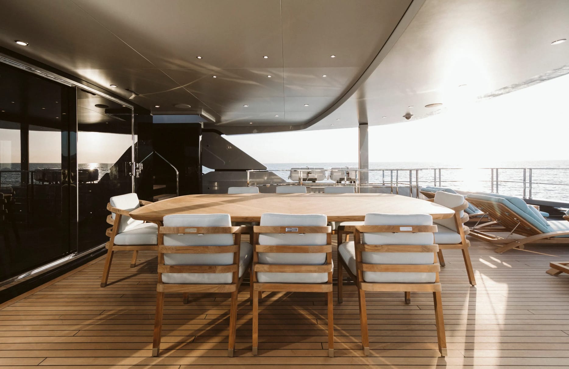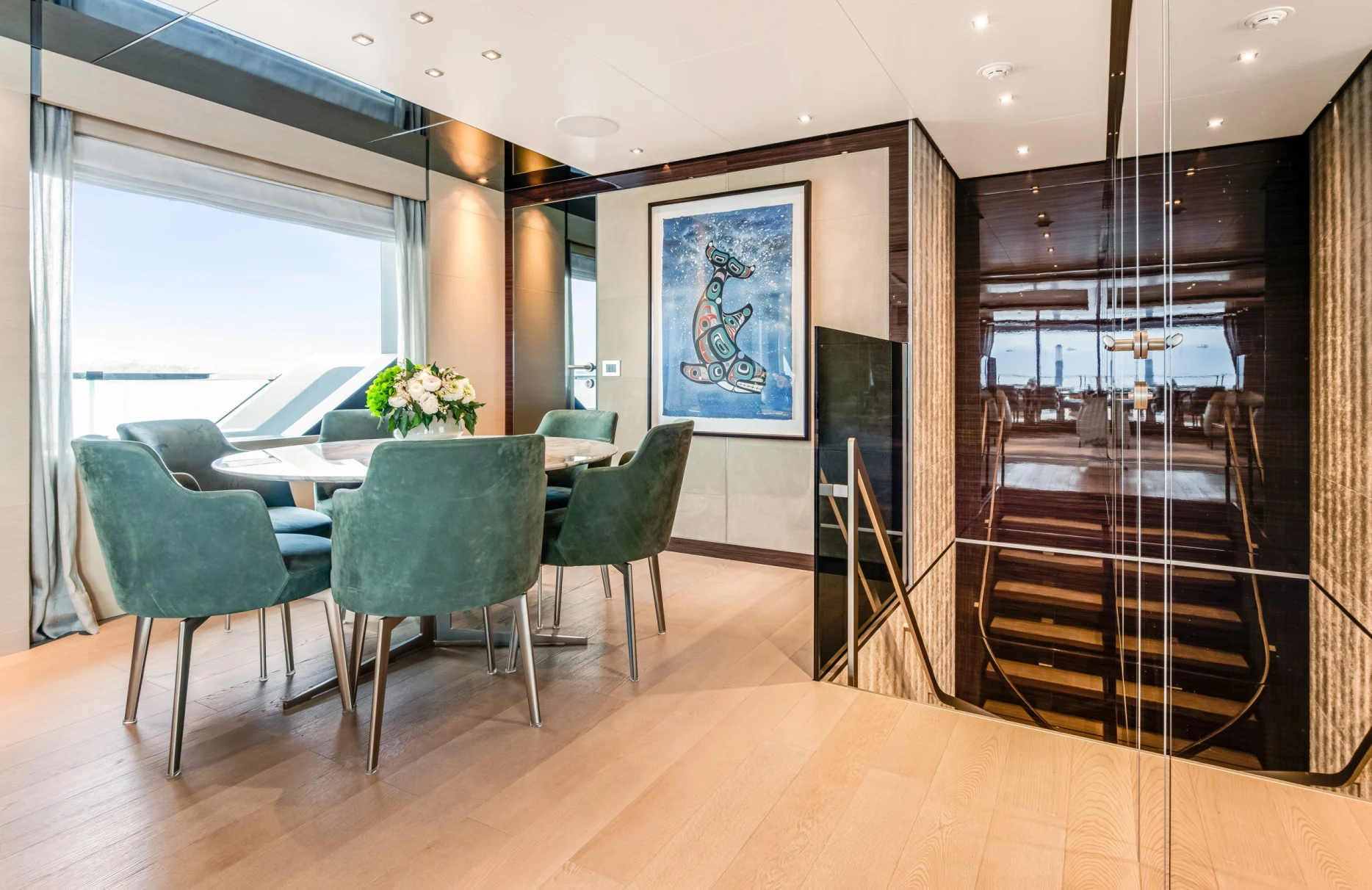 Nuri welcomes up to twelve guests into her embrace, across five beautifully appointed cabins. The master suite, a sanctuary of its own, features a study and dressing room, providing both space and privacy. Each morning aboard begins with the gentle rocking of the sea and the promise of a new adventure. The cabins, ranging from double to convertible twin configurations, offer plush bedding and elegant finishes, ensuring restful nights and luxurious mornings. The yacht’s layout is thoughtfully designed to cater to families, offering both privacy and shared moments of joy.