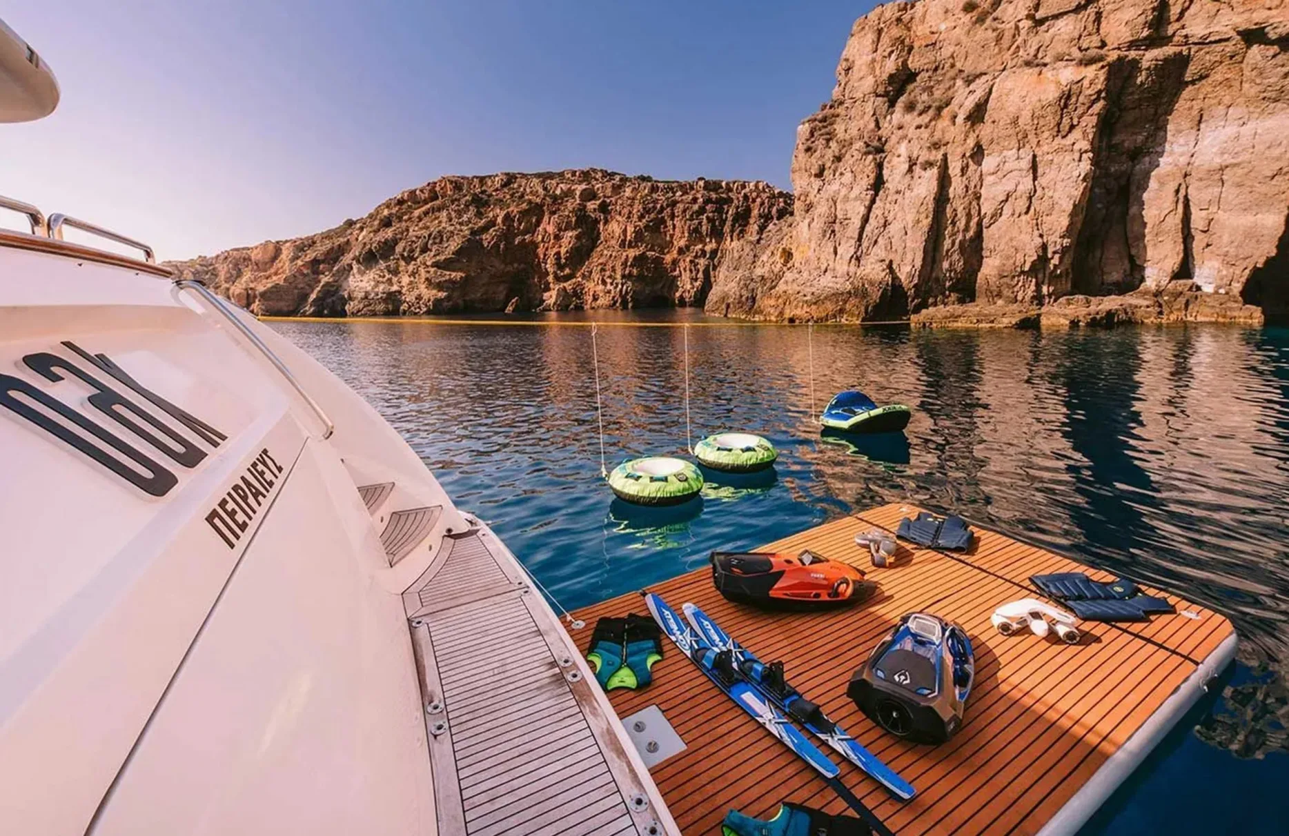 Aboard Oak, every corner invites relaxation and social connection. The sun deck, with its sunpads and inviting deck jacuzzi, is perfect for soaking in the sun or stargazing at night. The beach club offers a serene escape for quiet reflection or lively gatherings, while the foredeck seating provides a front-row seat to the ocean’s splendor. As you move through the yacht, the gentle hum of state-of-the-art air conditioning keeps the climate perfectly tempered, ensuring comfort whether you’re enjoying a cocktail by the exterior bar or unwinding with a book in the Portuguese bridge area.