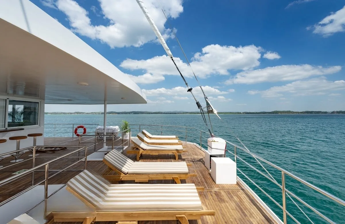 Accommodating up to 22 guests in ten beautifully appointed cabins, Ocean Diamond offers a personal retreat for everyone onboard. The six double cabins provide an intimate and cozy space for couples, while the twin cabins offer flexibility for families or friends. Each morning, you’re greeted by the gentle sway of the sea and the promise of a day filled with new discoveries. The thoughtful design of the cabins ensures that privacy and comfort are paramount, allowing you to rest and rejuvenate in style as the yacht carries you to your next destination.