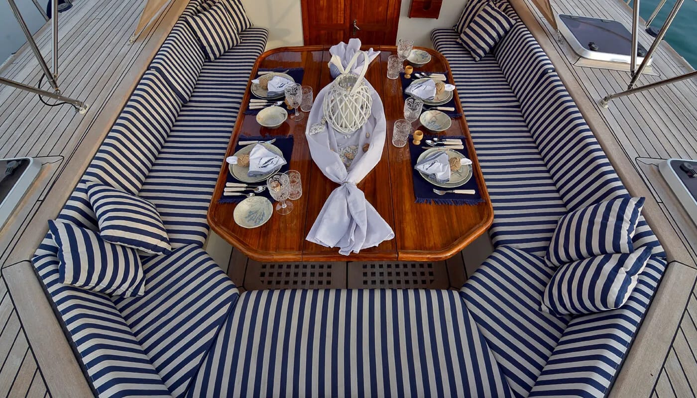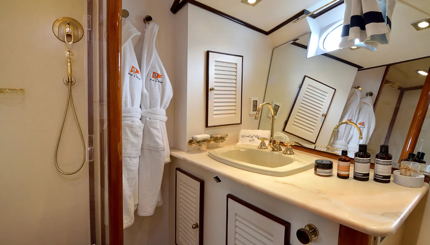 Ocean Drive offers a sanctuary of comfort for up to eight guests across four beautifully appointed cabins. Each morning, wake up to the gentle sway of the sea in the master suite, which features a king-sized bed, or in one of the double cabins with queen beds. The twin cabin offers an equally serene experience with its twin singles. The thoughtful design and plush furnishings ensure that every guest is enveloped in warmth and tranquility, with a dedicated crew of six on hand to enhance the experience.
