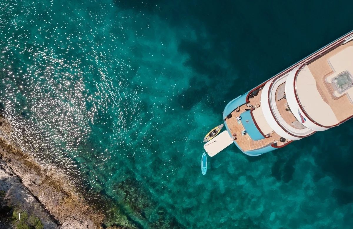 The spirit of adventure aboard ‘Ohana’ is palpable, with a diverse array of water toys at your disposal. Glide across turquoise waters on a paddleboard, or feel the exhilaration of wakeboarding. For those seeking serenity, kayaking offers a peaceful way to explore hidden coves. With an impressive array of scuba gear, the underwater world is yours to discover, guided by a crew dedicated to tailoring each experience to your desires. The sleek 36-foot Cantieri Magazzù Chase Tender ensures seamless transitions from yacht to shore, granting you the freedom to explore secluded beaches and vibrant harbors at your leisure.
