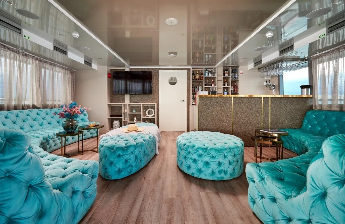 Step into a realm where every moment is infused with indulgence aboard ‘Ohana.’ The yacht’s sun-drenched decks offer serene spaces for leisurely afternoons, while evenings come alive with the twinkling lights of the outdoor bar. Delight in the soothing embrace of the deck jacuzzi as the sea breeze envelops you, or find solace in the movie theatre, where cinematic experiences unfold. For those with a taste for al fresco dining, the BBQ and spacious sun deck provide the perfect setting for culinary delights under the stars. Whether seeking solitude or social connection, ‘Ohana’ caters to every whim.