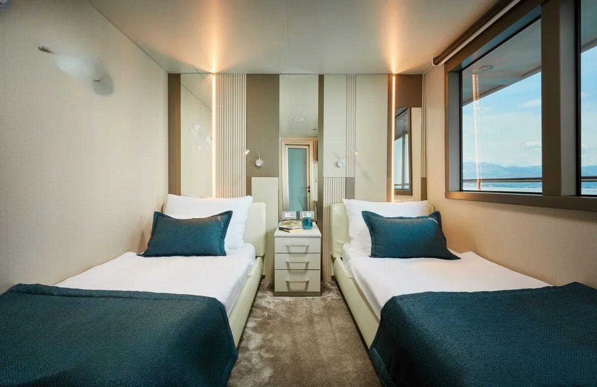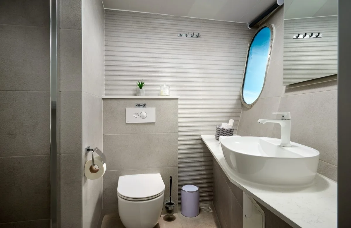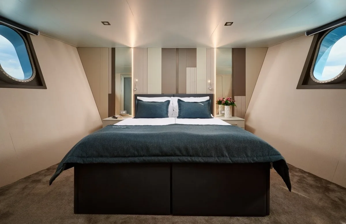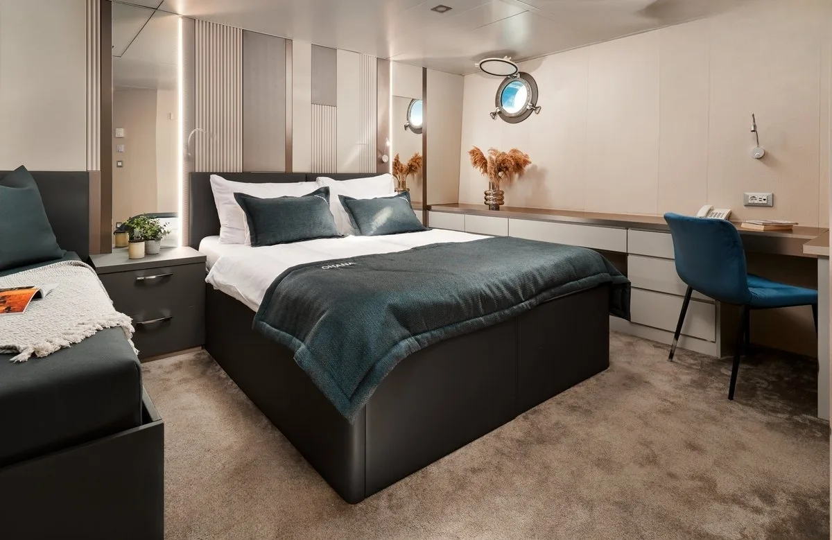 In the intimate embrace of ‘Ohana,’ up to 10 guests find sanctuary within five beautifully appointed cabins. The master suite serves as a private oasis, while two double cabins and two twin cabins offer refined retreats for all aboard. Each room is a blend of elegance and comfort, ensuring restful nights and rejuvenating mornings. As dawn breaks, the gentle sway of the yacht and the panoramic views from your window promise a day filled with adventure or relaxation, whichever you desire.