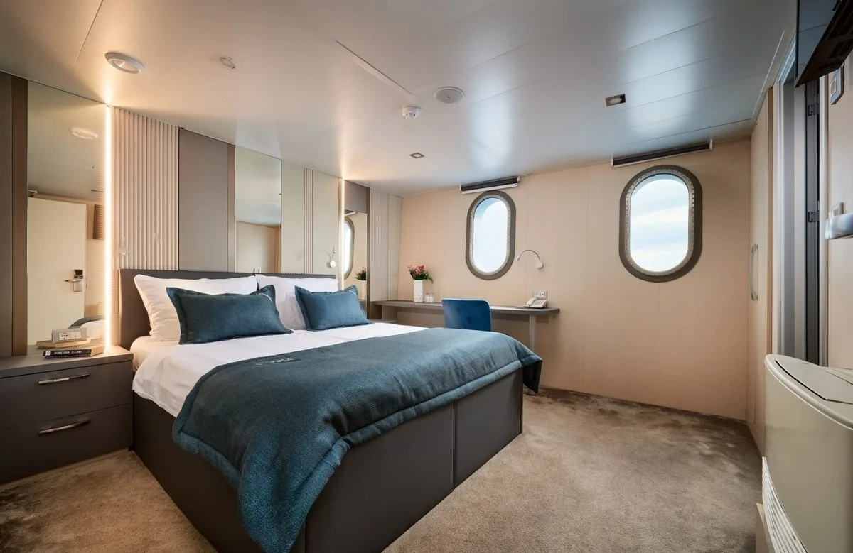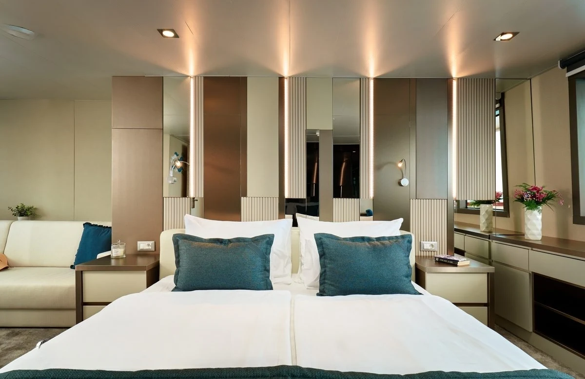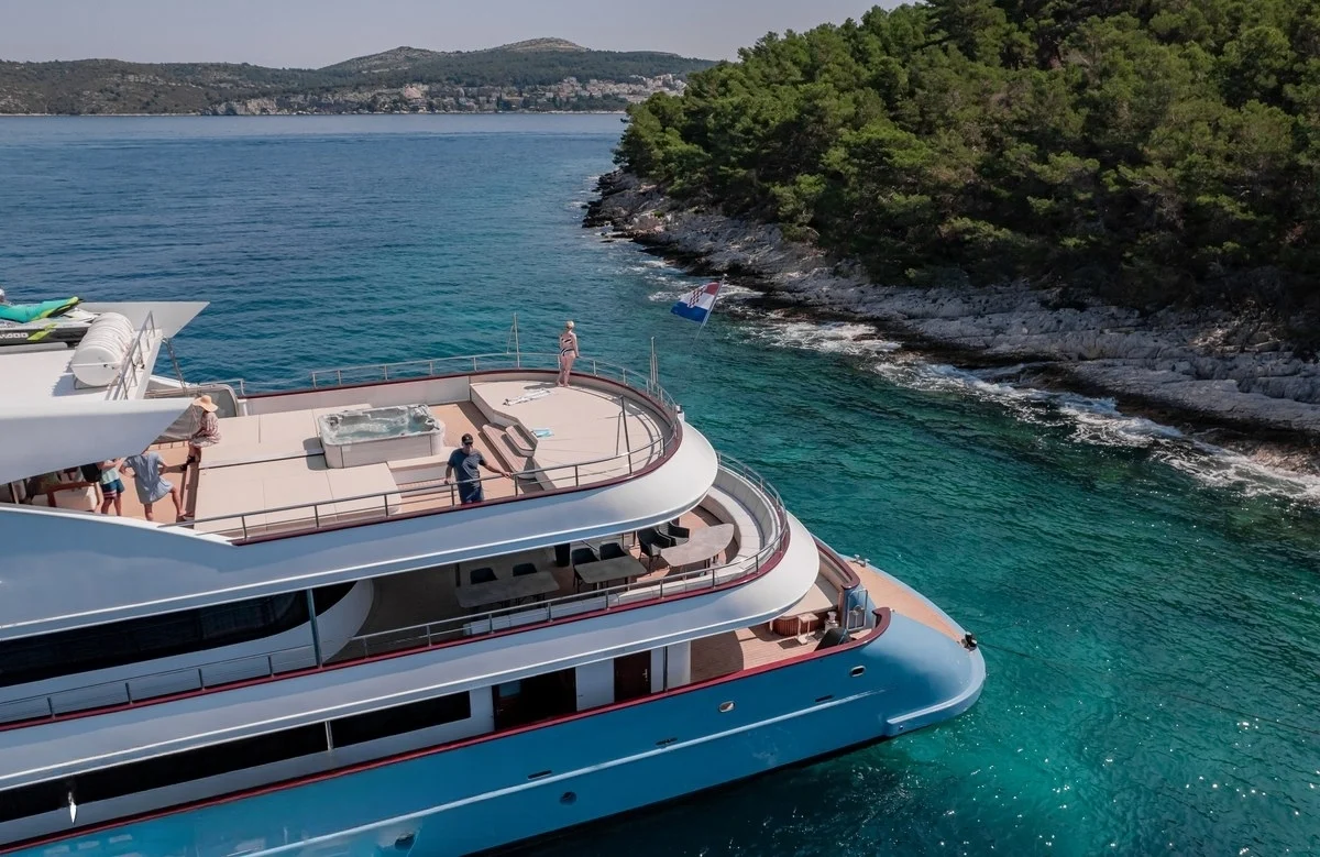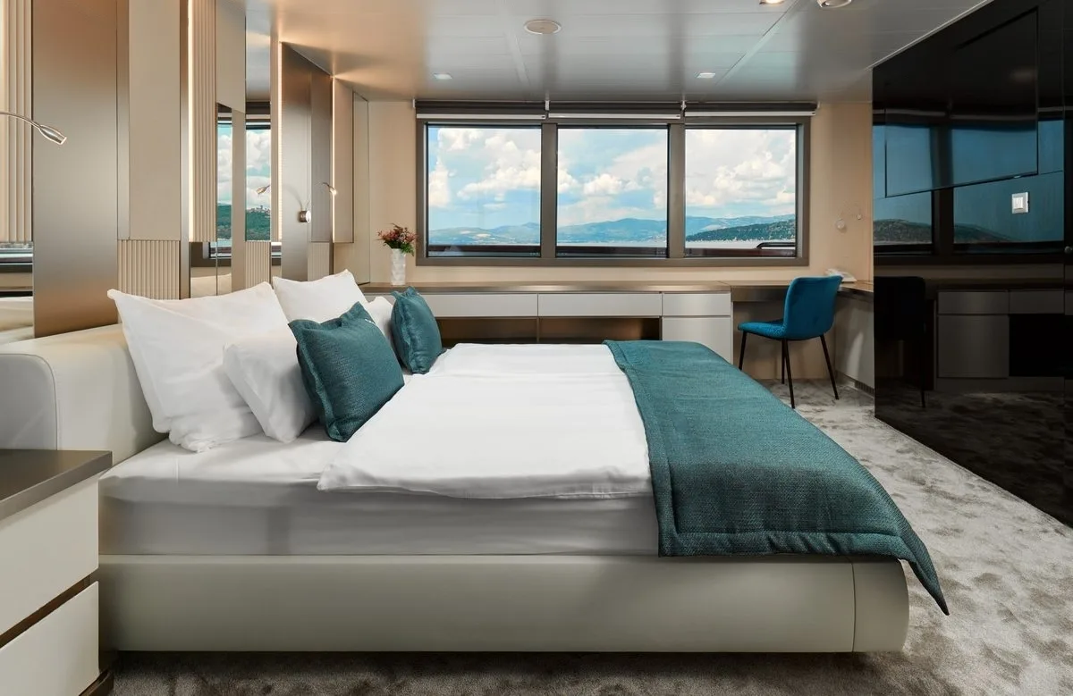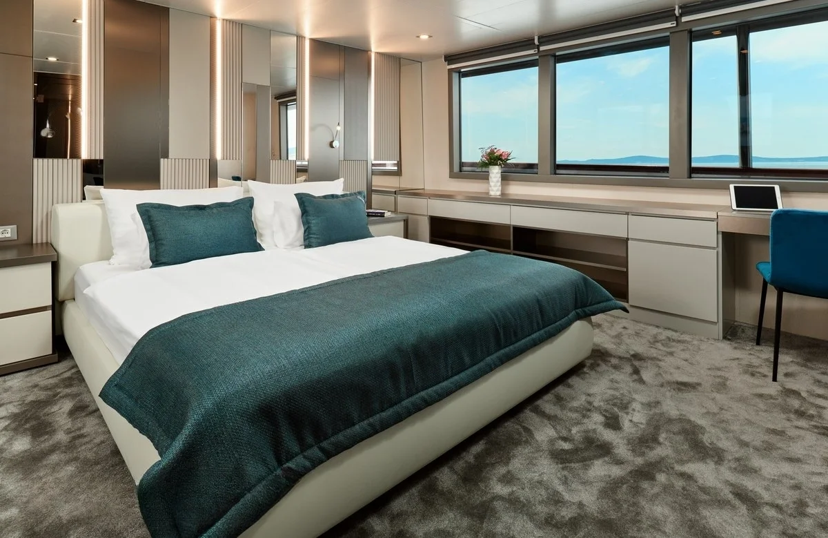 In the intimate embrace of ‘Ohana,’ up to 10 guests find sanctuary within five beautifully appointed cabins. The master suite serves as a private oasis, while two double cabins and two twin cabins offer refined retreats for all aboard. Each room is a blend of elegance and comfort, ensuring restful nights and rejuvenating mornings. As dawn breaks, the gentle sway of the yacht and the panoramic views from your window promise a day filled with adventure or relaxation, whichever you desire.