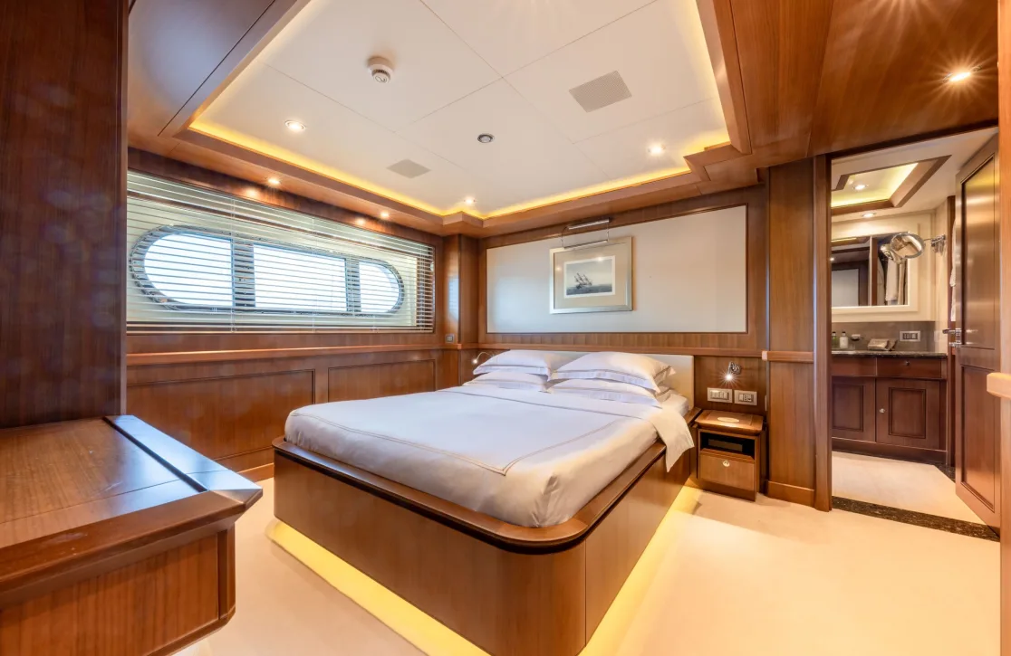 O’Lion accommodates up to 10 guests in five beautifully appointed cabins, each a sanctuary of comfort and elegance. The master suite and two VIP cabins provide a regal retreat, while two twin cabins offer versatile arrangements for friends or family. As dawn breaks, the gentle sway of the sea sets the perfect backdrop for a day of discovery, and as night falls, the plush interiors invite restful slumber. The thoughtful layout and meticulous attention to detail ensure that each moment spent in your cabin is one of serenity and indulgence.