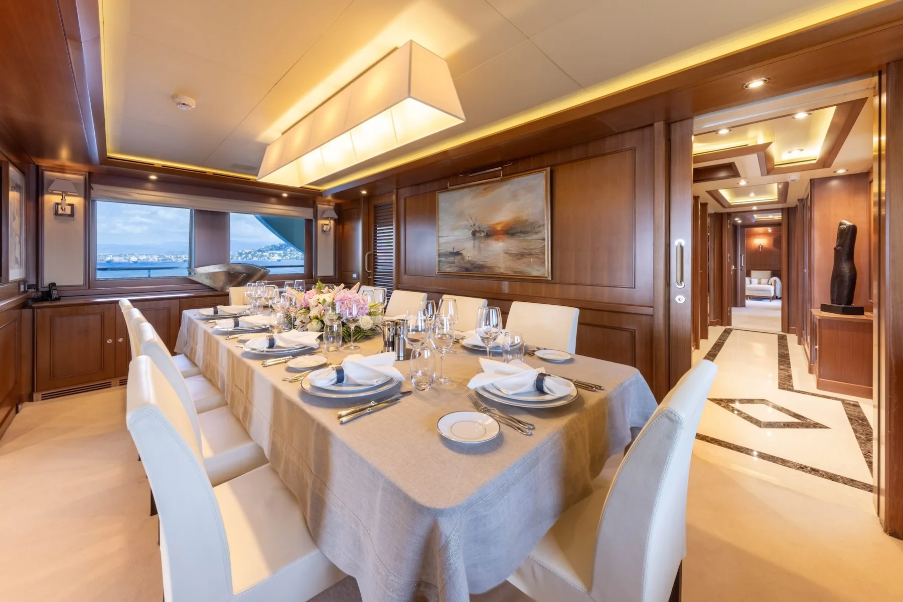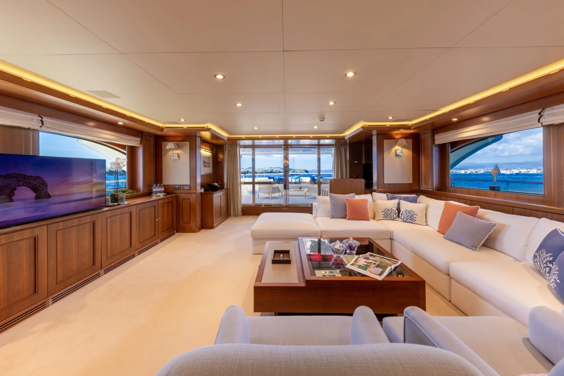 Aboard O’Lion, the world unfolds at your pace. As you sail through azure waters, the dedicated crew of nine ensures your journey is seamless, curating experiences that linger long after you’ve returned to shore. While the yacht’s graceful lines cut through the waves, her interiors, designed by Zuccon, exude warmth and sophistication. Whether you’re savoring gourmet cuisine under the stars or contemplating the endless horizon from the sun deck, every day aboard O’Lion is an invitation to savor life’s most exquisite pleasures.