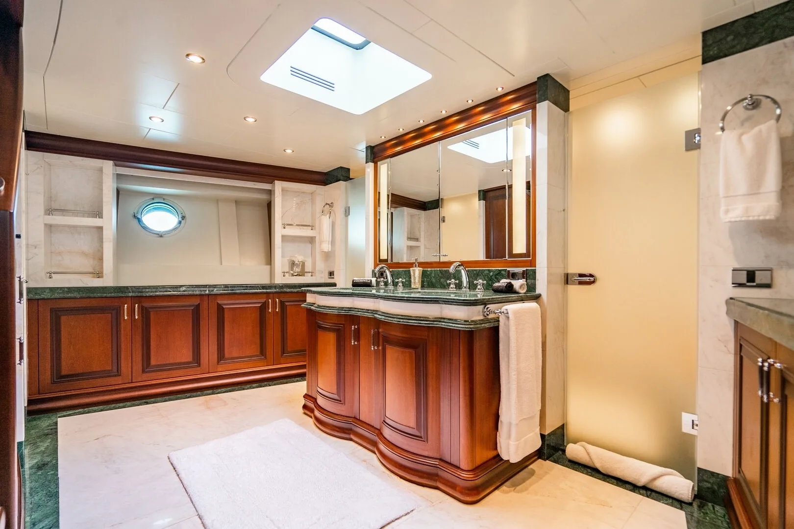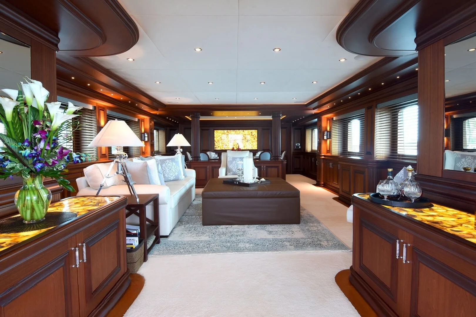 Omnia 1, a vessel crafted by the esteemed Bilgin Yachts, invites you to an immersive experience of refined seafaring. At 49 meters in length, she offers a blend of grace and strength, promising both comfort and adventure. Her robust steel hull and wooden superstructure ensure stability and expansive space, while twin Caterpillar engines allow for a smooth cruise at 10 knots. With a range of 2,100 nautical miles, Omnia 1 beckons you to explore distant shores and secluded coves, making every journey a testament to elegance and exploration. Step aboard and find a world where the gentle sea breeze and the open horizon become your companions for a week of unforgettable moments.