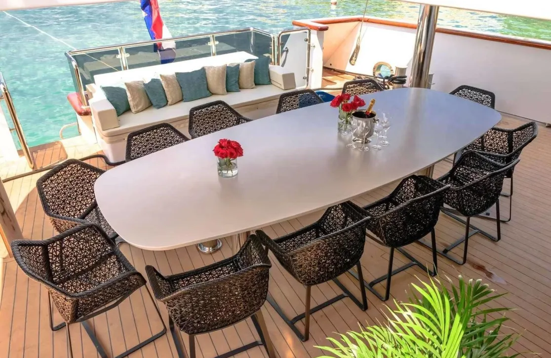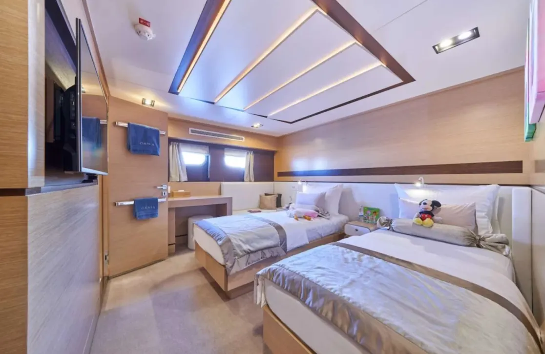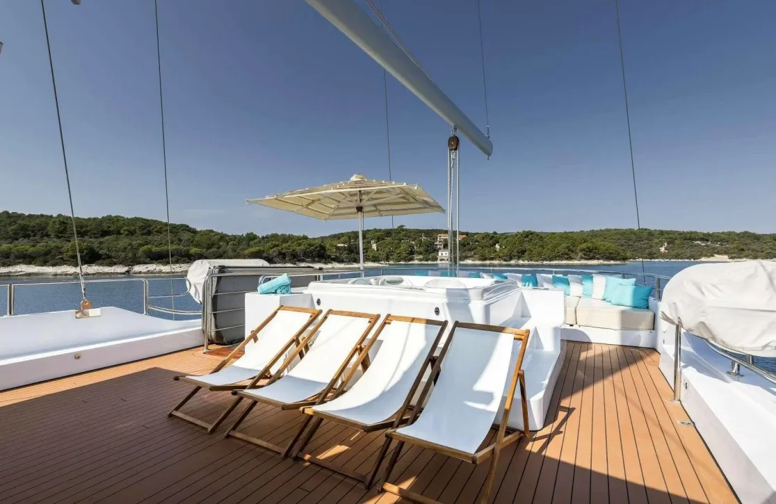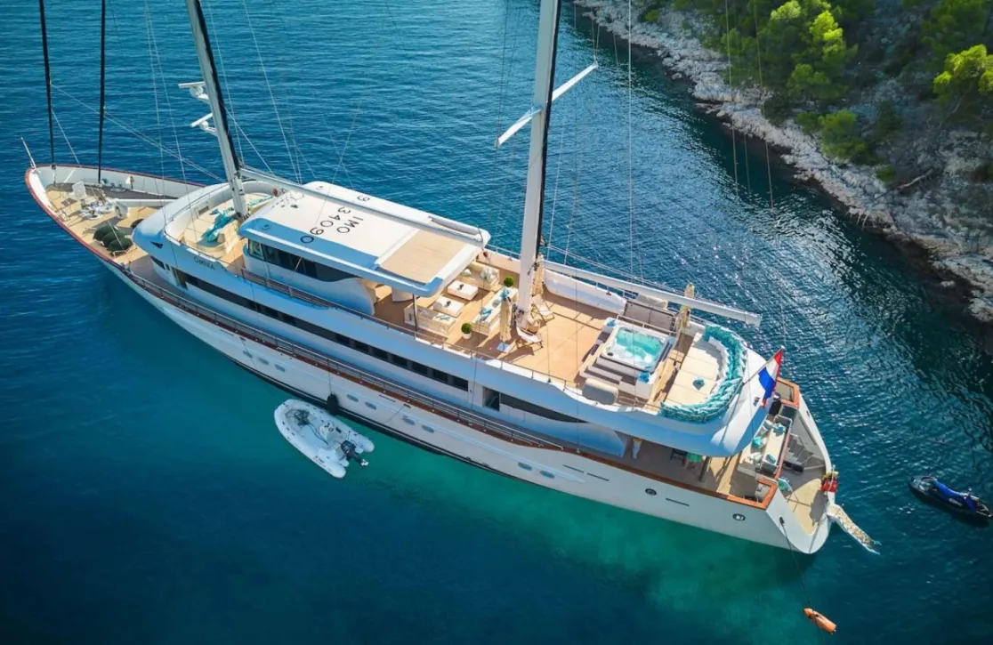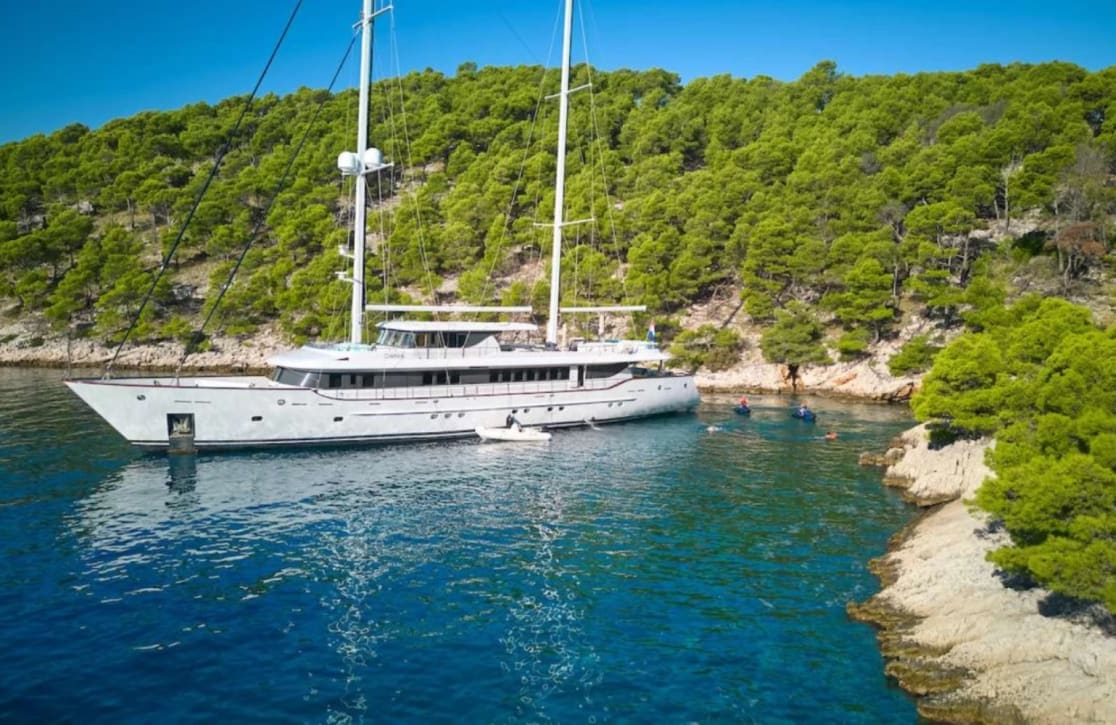 Embark on an unforgettable voyage aboard the majestic Omnia, a 46-meter motor/sailer yacht crafted by the esteemed Brodosplit shipyard. With her seamless blend of elegance and performance, Omnia invites you to explore the captivating Mediterranean landscape. Her decks, beautifully proportioned for both indoor and outdoor living, offer an ideal setting for both relaxation and adventure. As you glide through azure waters, you’ll discover hidden coves, historic harbors, and the culinary delights of coastal villages. With a cruising speed of 10 knots and a maximum speed of 11 knots, Omnia ensures a smooth journey, allowing guests to savor every moment of their week-long escape.