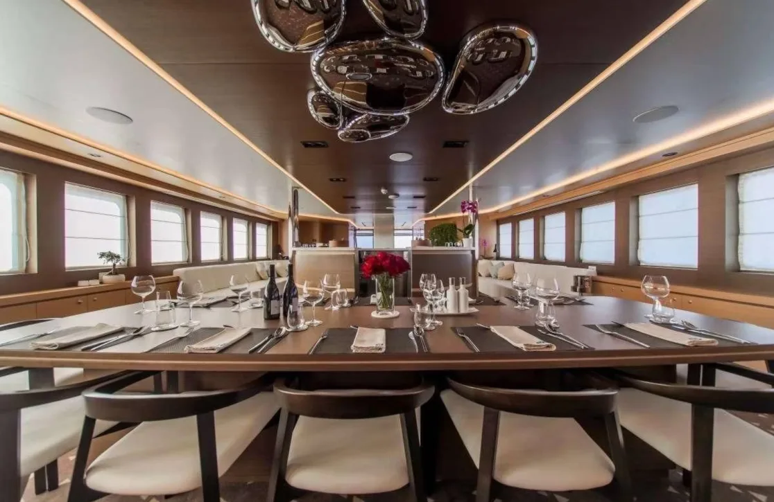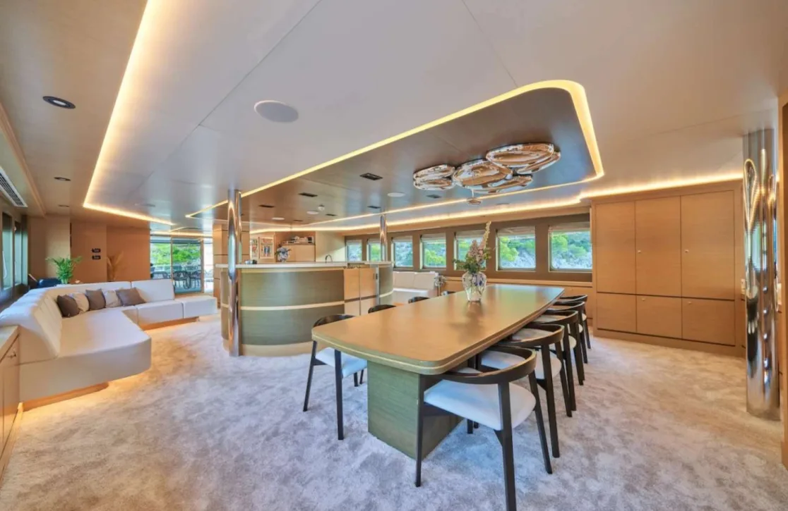 Omnia’s accommodations offer a sanctuary of tranquility and style for up to 12 guests across six well-appointed cabins. Awaken in the plush surroundings of the master suite, or retreat to one of the VIP or double cabins, each thoughtfully designed to ensure a restful slumber. The versatility of the cabins, with options for twins or doubles, enhances the personalized experience, making each night at sea as restorative as the last. The gentle sway of the yacht and the whisper of the Mediterranean breeze create an ambiance that is both serene and invigorating.
