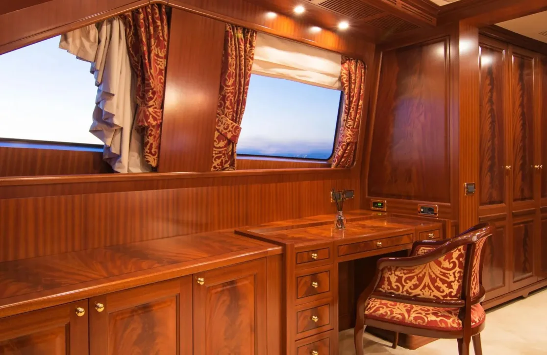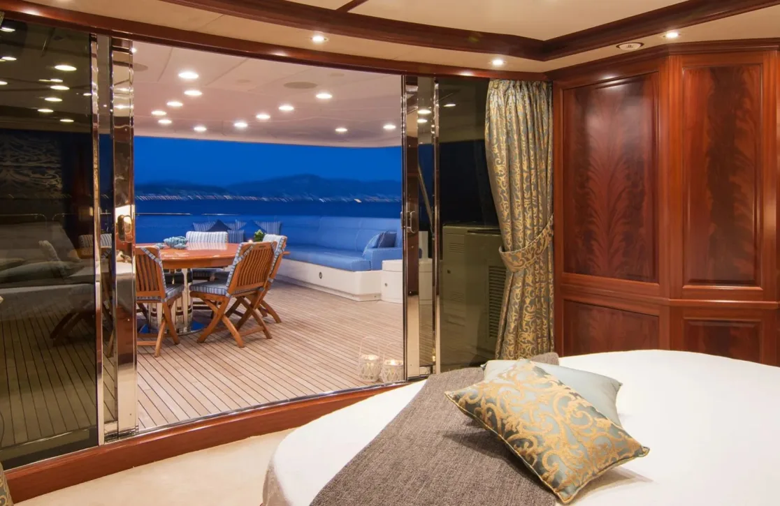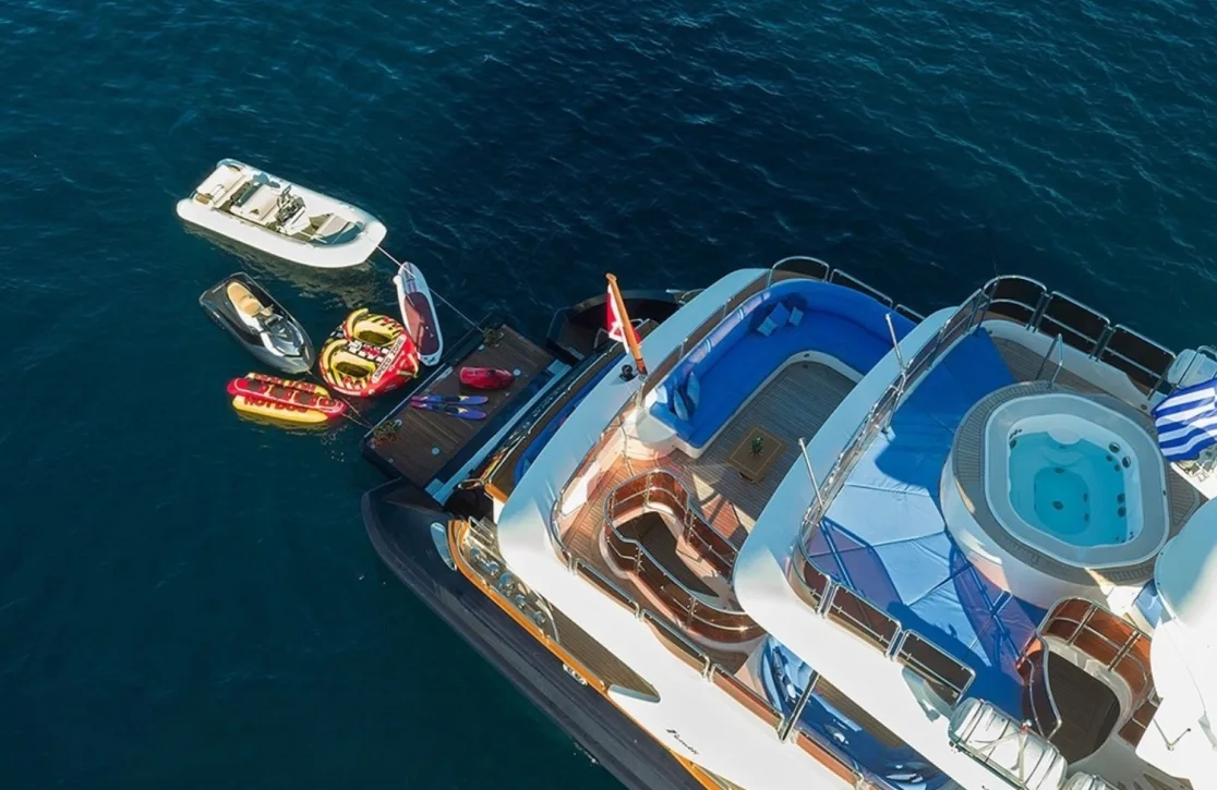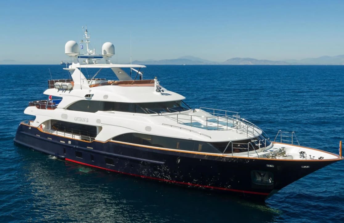 Imagine a voyage aboard ‘Option B,’ where elegance meets performance. Crafted by the esteemed Benetti shipyard and styled by the visionary French designer Zuretti, this 37-meter masterpiece invites you to explore the world from an unparalleled perspective. As you cruise at 13 knots, reaching up to 15 knots, the Mediterranean becomes your playground, with the yacht’s range of 3,400 nautical miles allowing you to discover both hidden coves and bustling harbors. Whether basking on the sun-drenched decks or venturing ashore, ‘Option B’ promises a journey that transcends the ordinary.