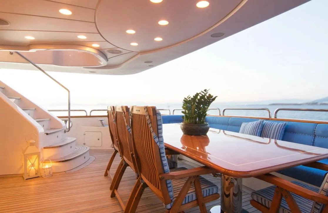 Aboard ‘Option B,’ every moment is crafted for your pleasure. Envision yourself unwinding in the deck jacuzzi, a refreshing drink in hand, as the sun dips below the horizon. The yacht’s interiors offer a serene retreat with soothing air conditioning, while the at-anchor stabilizers ensure your comfort remains undisturbed. Enjoy leisurely afternoons on the sun deck, or retreat to the gym for a revitalizing workout. Whether sharing stories at the exterior bar or lounging on sunpads, life aboard ‘Option B’ is as vibrant or as tranquil as you desire.