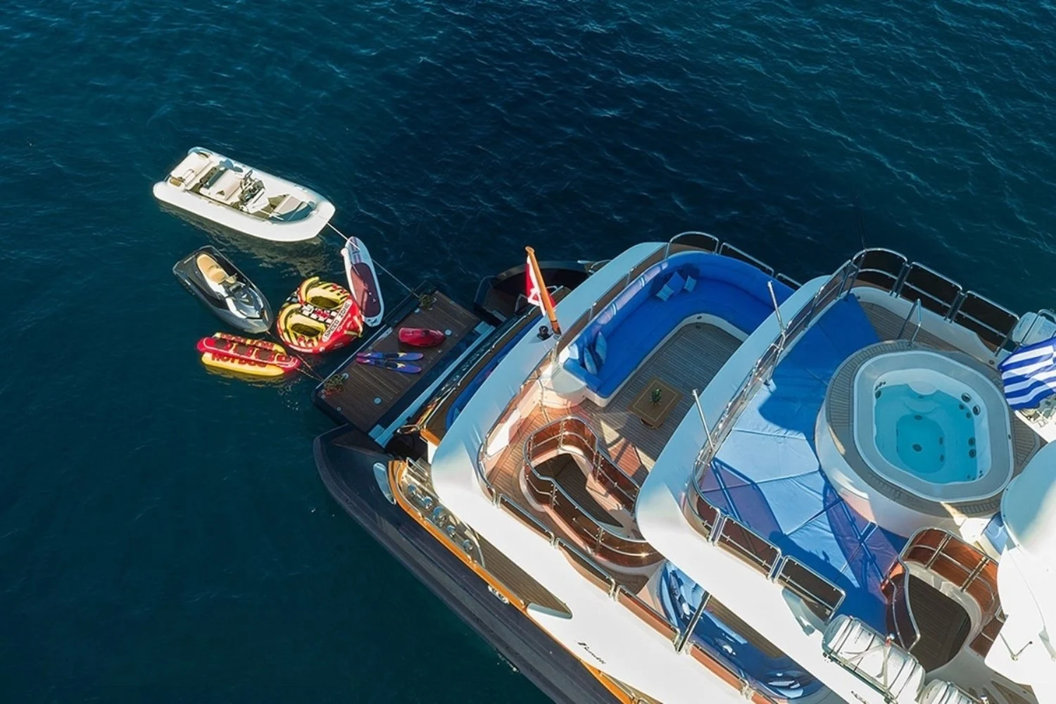 Imagine a voyage aboard ‘Option B,’ where elegance meets performance. Crafted by the esteemed Benetti shipyard and styled by the visionary French designer Zuretti, this 37-meter masterpiece invites you to explore the world from an unparalleled perspective. As you cruise at 13 knots, reaching up to 15 knots, the Mediterranean becomes your playground, with the yacht’s range of 3,400 nautical miles allowing you to discover both hidden coves and bustling harbors. Whether basking on the sun-drenched decks or venturing ashore, ‘Option B’ promises a journey that transcends the ordinary.