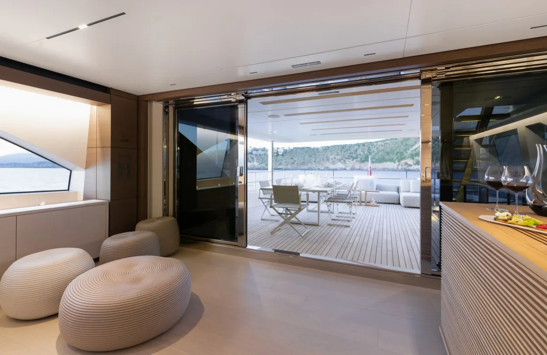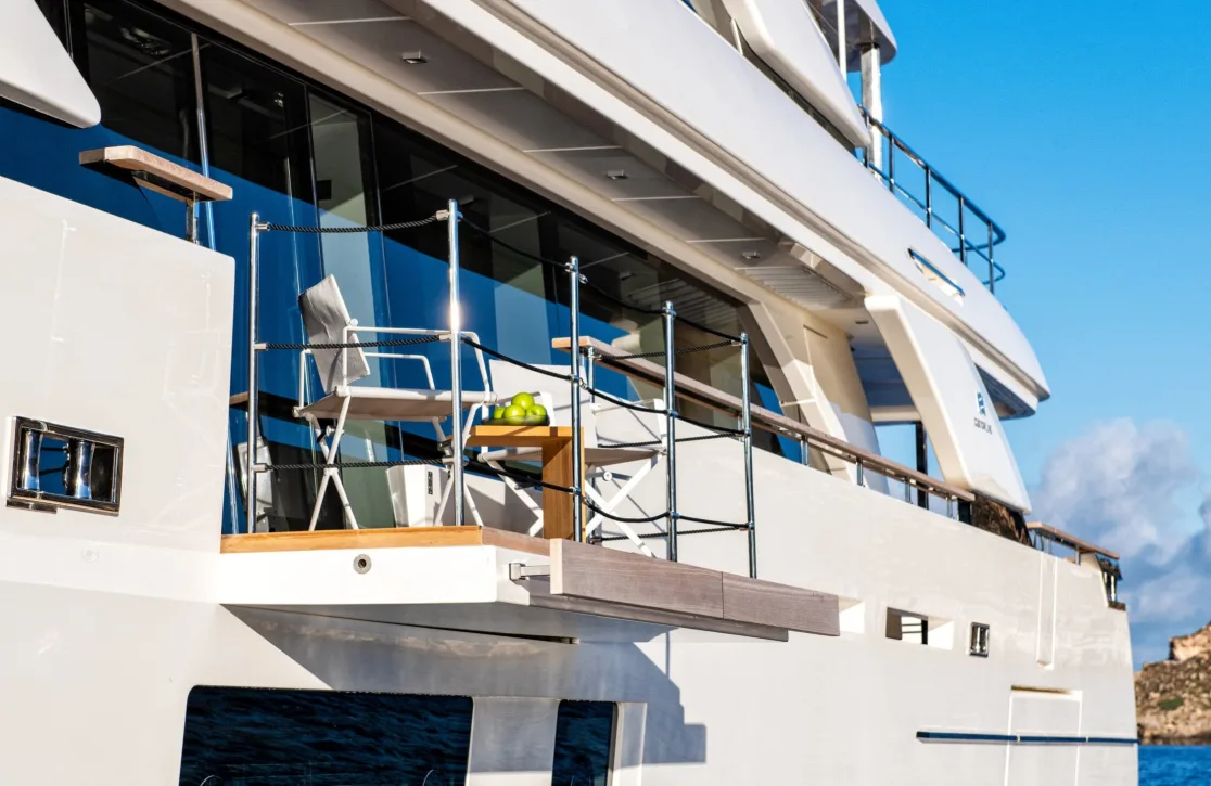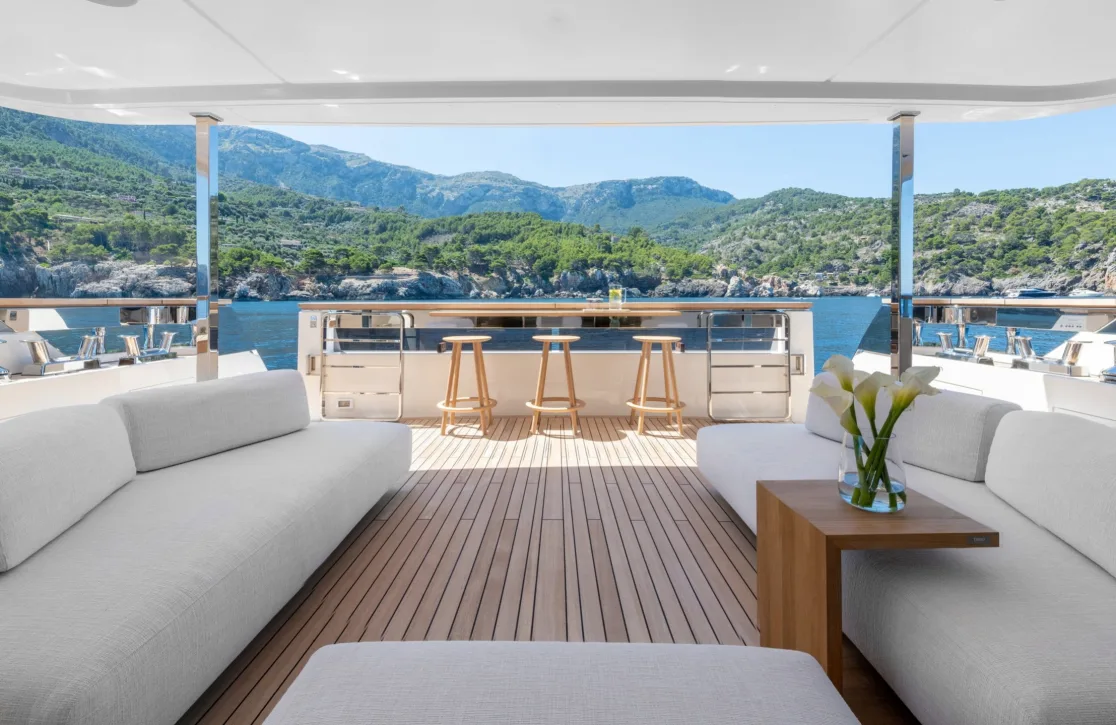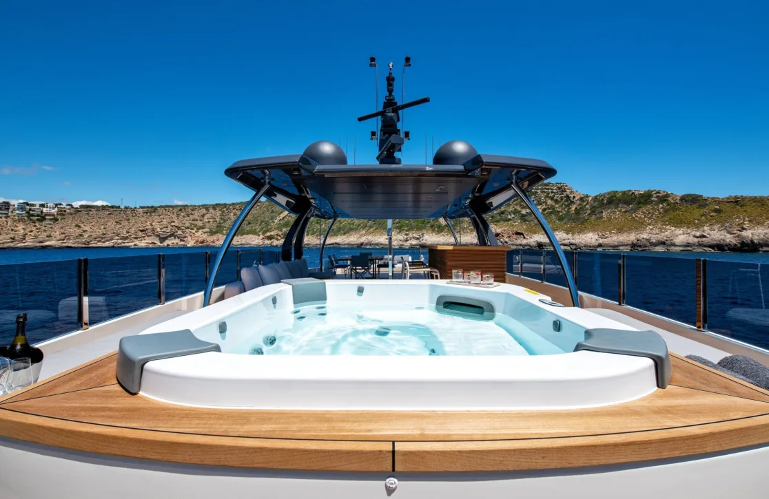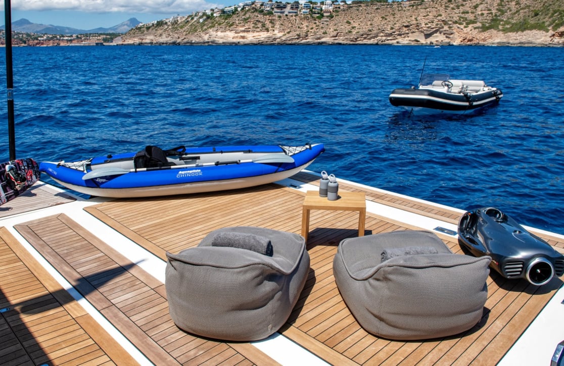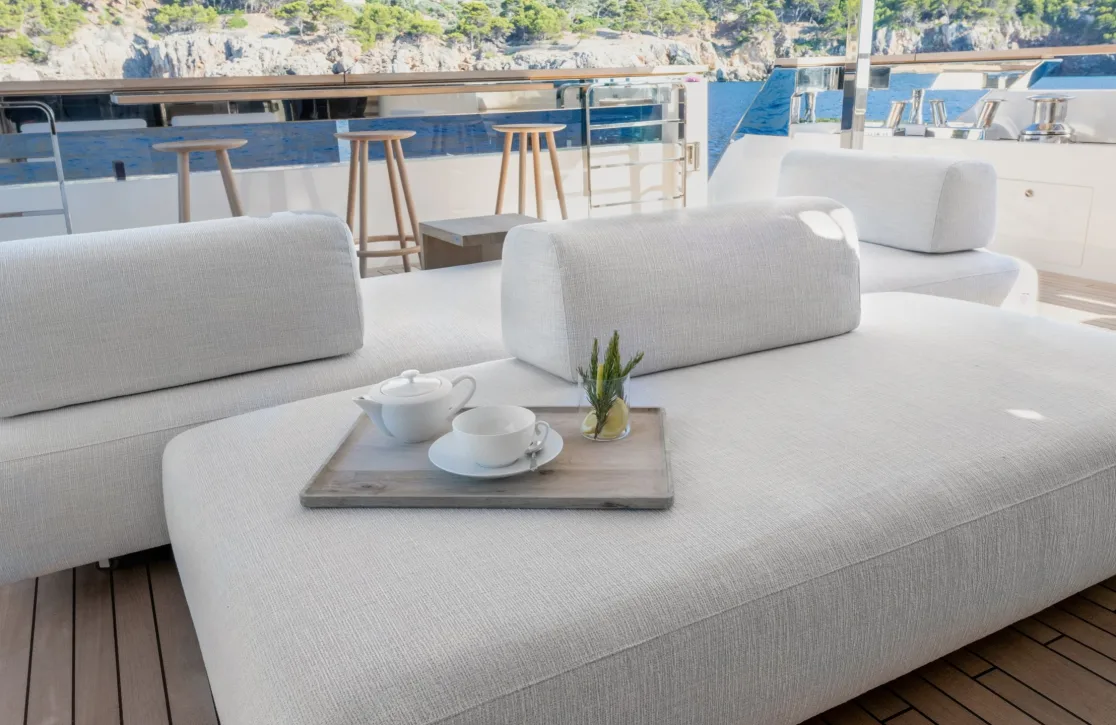Aboard Paloma, every moment is a testament to refined serenity and indulgence. The sun deck beckons with inviting sunpads and a jacuzzi, perfect for soaking up panoramic views of the horizon. Whether you’re enjoying a leisurely breakfast on the foredeck or unwinding in the intimate beach club, the yacht’s thoughtfully designed spaces ensure a seamless blend of relaxation and social delight. Stay connected with Starlink Wi-Fi as you revel in the sophisticated comfort of air-conditioned interiors, all while the crew attends to every detail of your journey.