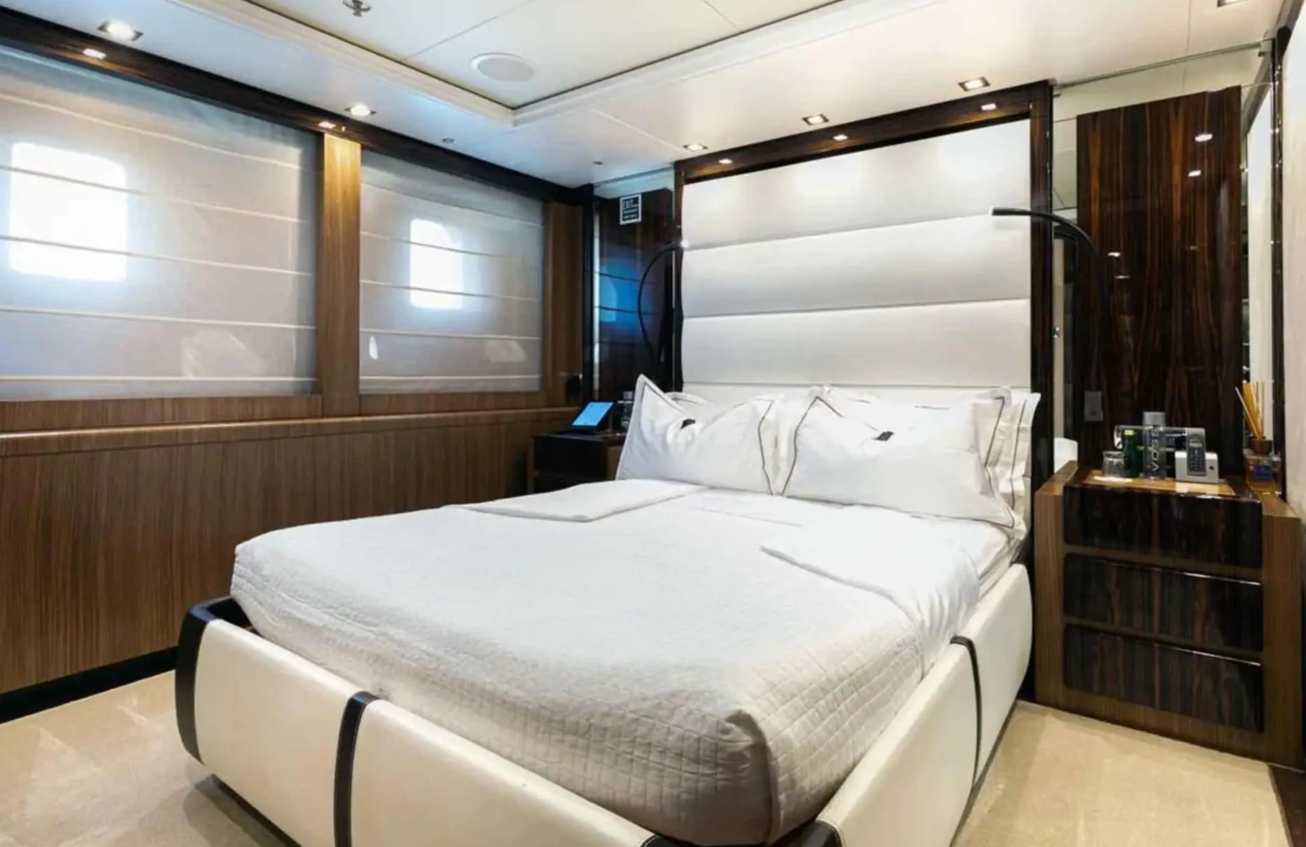 Onboard Panakeia, the ambiance is both inviting and sophisticated, with amenities designed to elevate your stay. Imagine sipping a cocktail at the exterior bar as the sun sets, the gentle sway of the yacht beneath you. The state-of-the-art elevator allows effortless movement between decks, leading to spaces like the sun-drenched beach club. Relaxation is redefined with the indulgence of a deck jacuzzi, while the at-anchor stabilizers ensure a serene experience. Whether it’s a leisurely afternoon on the sun deck or a vibrant evening under the stars, the yacht offers spaces that cater to every mood.