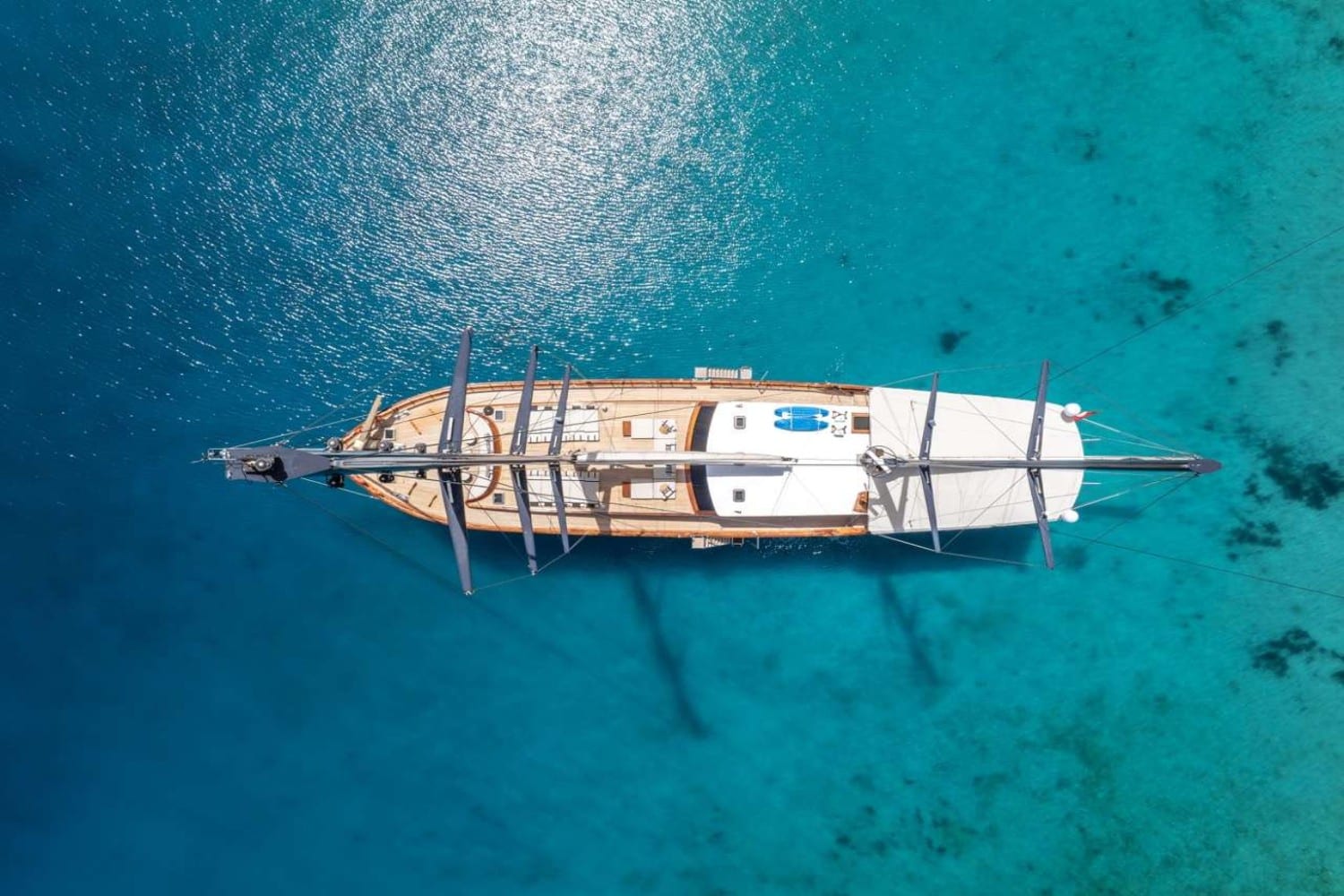 Embark on a journey aboard the 40-meter ‘Performance Fee,’ where classic elegance meets expansive outdoor living. This gulet yacht, with her graceful lines and wood craftsmanship, promises an unforgettable escape on the azure Mediterranean waters. Designed to bring you closer to the sun and sea, her decks offer endless opportunities for alfresco dining and sun-soaked relaxation. As you sail at a comfortable 12 knots, you are invited to explore both the enchanting coastal towns ashore and the serene sanctuaries at sea, making each day a new adventure.
