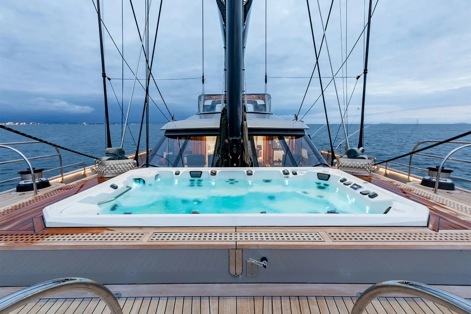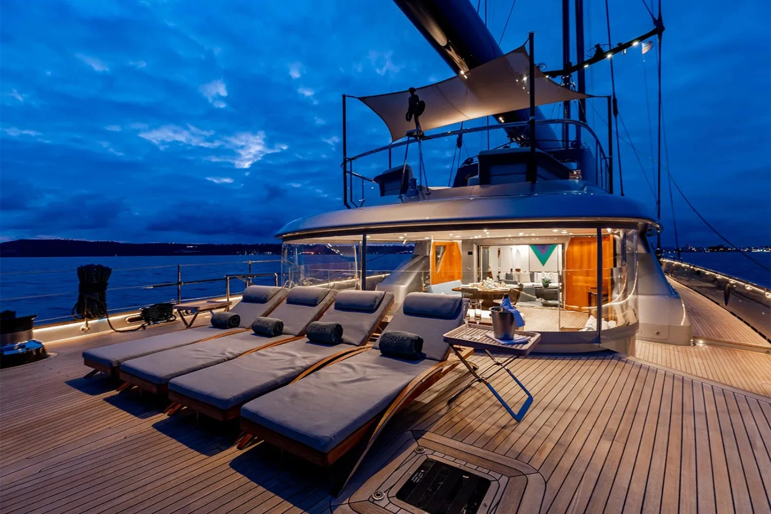On board Perseus^3, each day begins and ends with indulgence. The sun-drenched decks invite leisurely afternoons basking by the jacuzzi, while evenings may see you gathered on plush sunpads, savoring a gourmet barbecue prepared by the attentive crew. Stay connected with on-board Wi-Fi, and keep fit in the state-of-the-art gym, all within the elegant embrace of Perini Navi’s design. Wheelchair accessibility ensures everyone can enjoy the yacht’s exquisite spaces. The combination of an inflatable water slide for youthful fun and sophisticated evening entertainment with satellite TV makes every day aboard a celebration of both relaxation and pleasure.