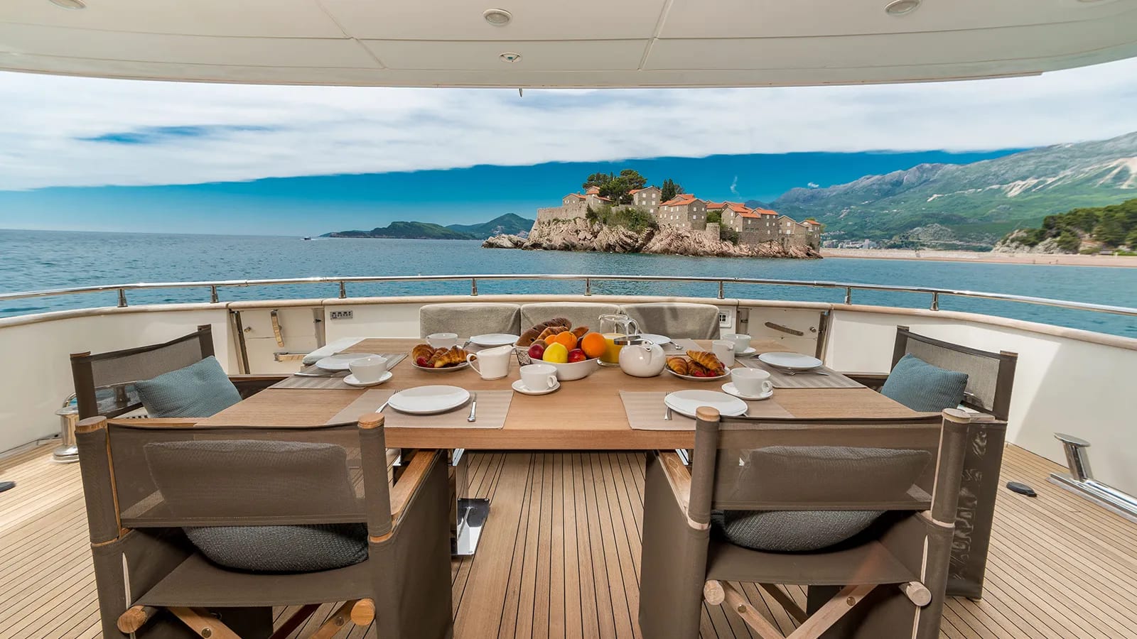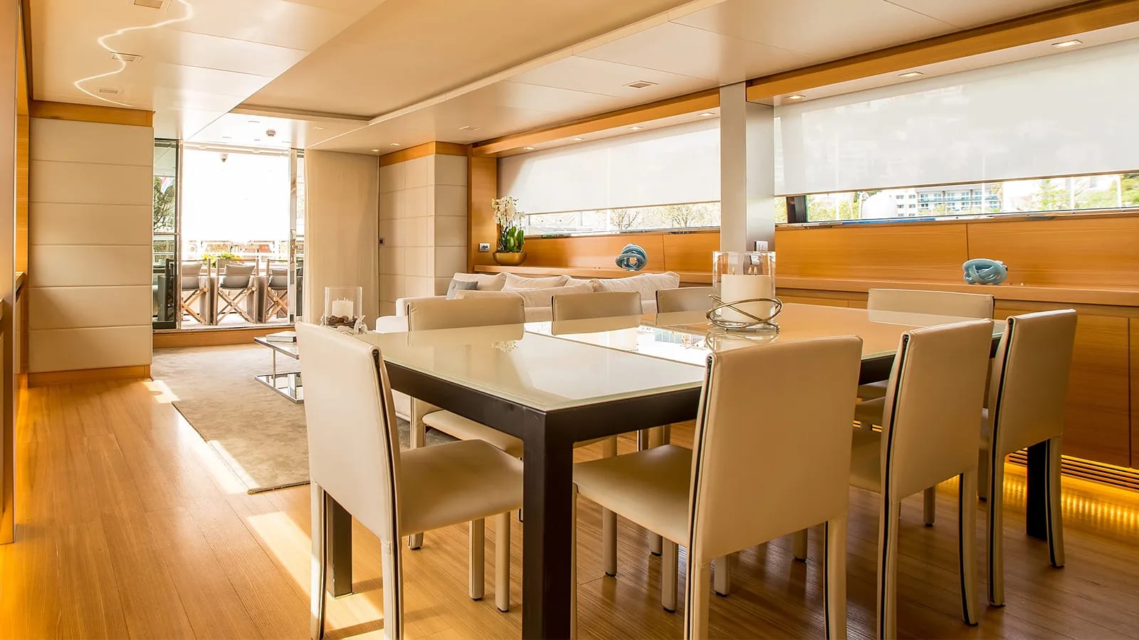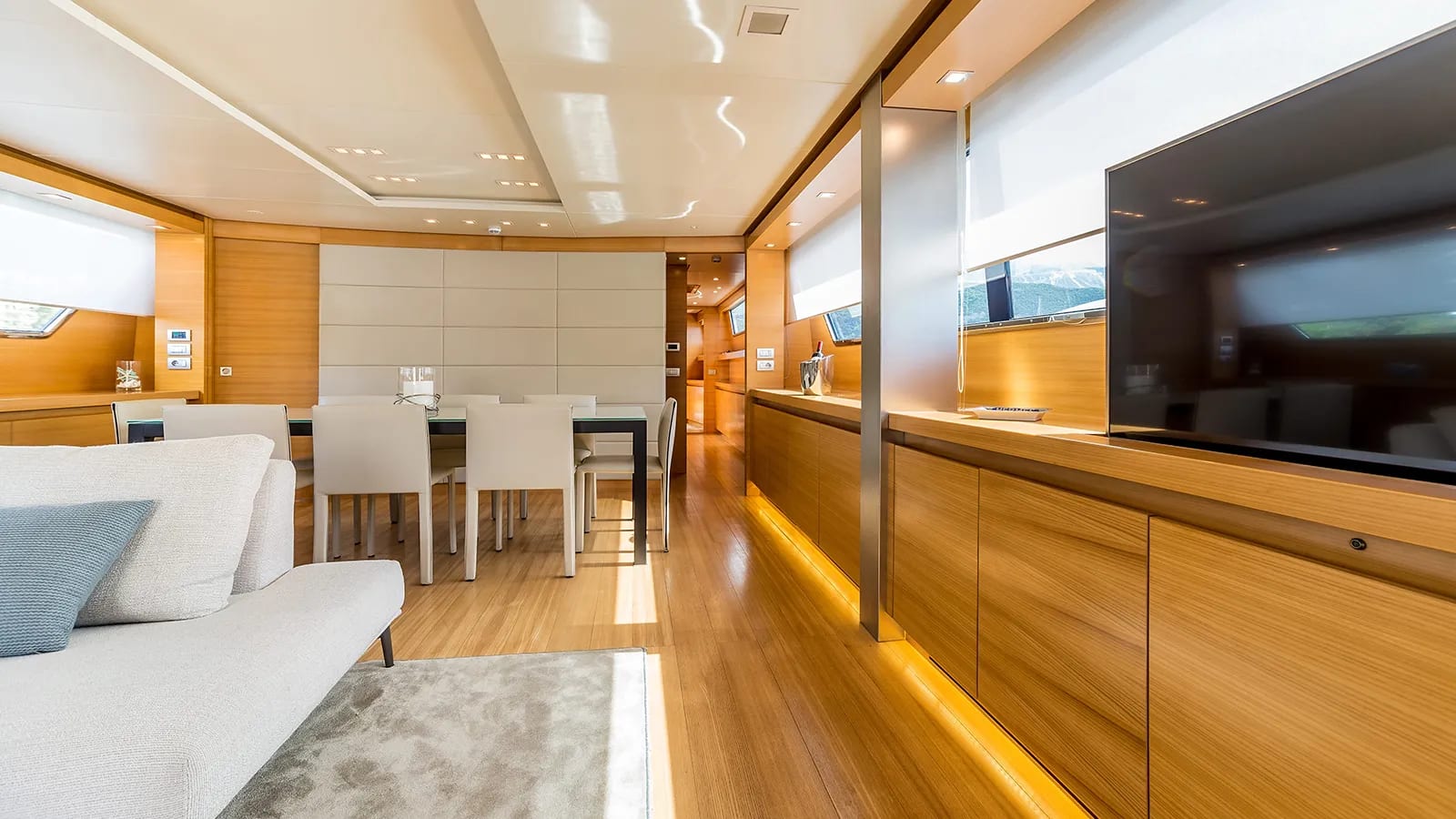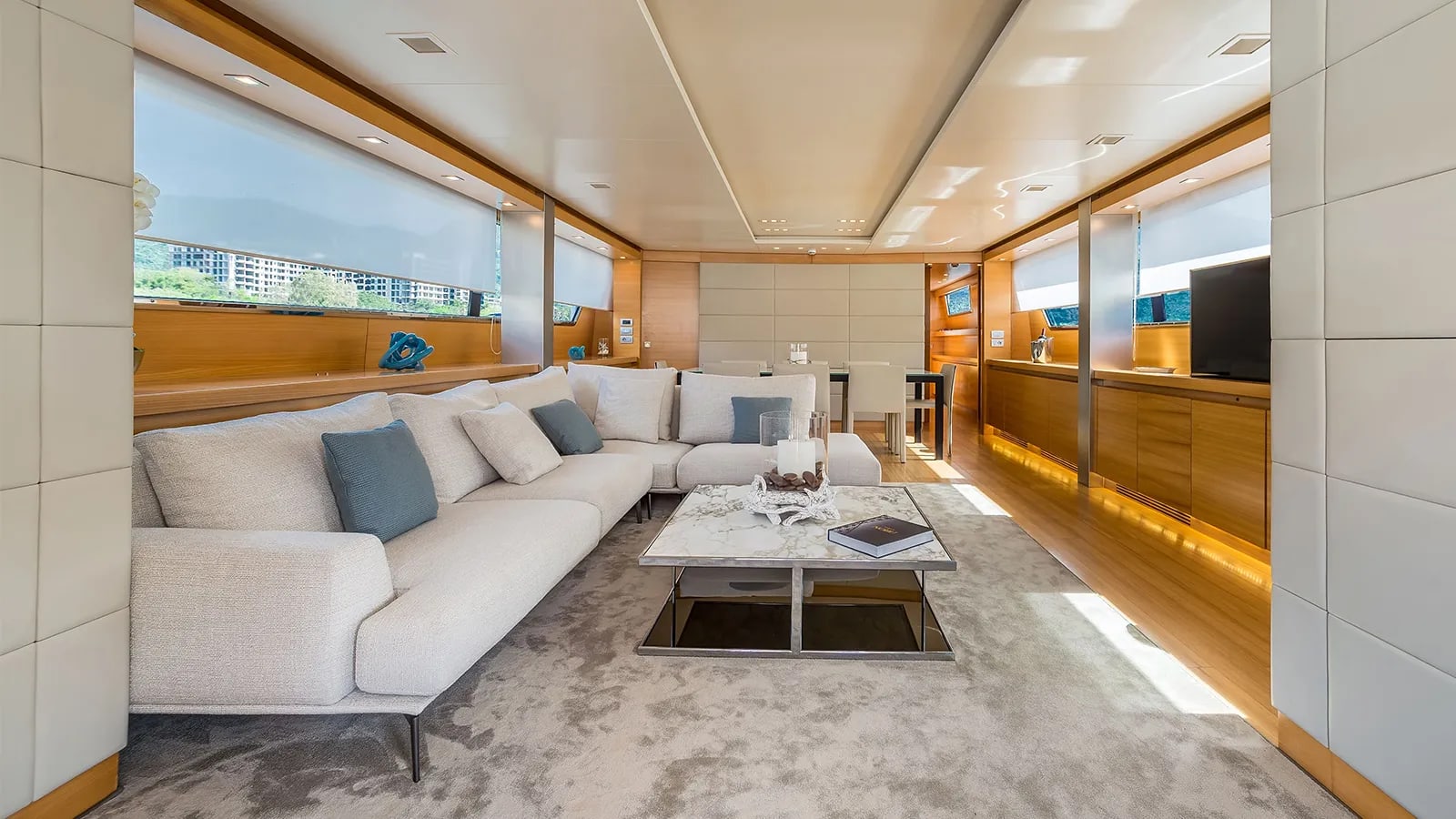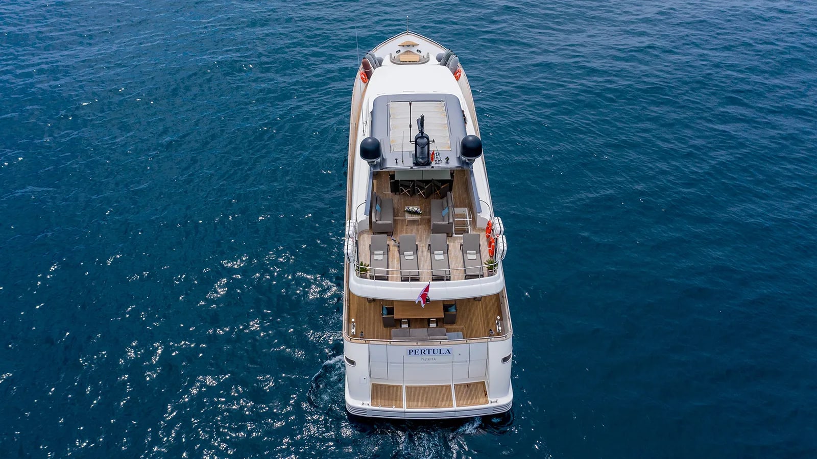Aboard Pertula, each day unfolds with a promise of tranquility and excitement. Begin your morning with a workout using the state-of-the-art gym equipment, before enjoying breakfast alfresco on the sun-drenched foredeck seating. As the day warms, retreat to the air-conditioned comfort of the interior, where Wi-Fi keeps you connected to the world at your leisure. As evening descends, the ambient glow of underwater lights transforms the ocean into a luminous spectacle, setting the perfect backdrop for an elegant dinner under the stars.