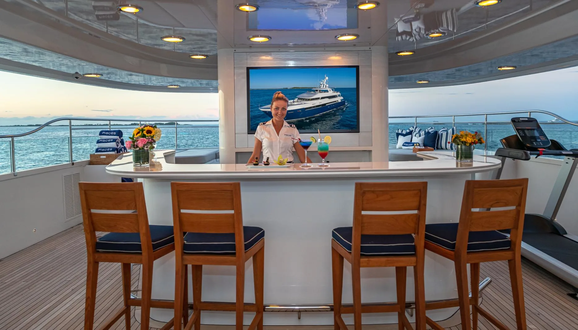 Onboard Pisces, every moment is an invitation to indulge in the finer things. The yacht’s spacious skylounge, adorned with rich wood and marble accents, is perfect for enjoying a cocktail from the full bar or selecting a vintage from the walk-in wine room. As the sun dips below the horizon, the deck jacuzzi offers a warm embrace under the stars, while the secluded library provides a quiet retreat for those seeking solitude. With Wi-Fi and satellite communication systems at your fingertips, you can choose to stay connected or completely unplug, savoring each moment of your voyage.