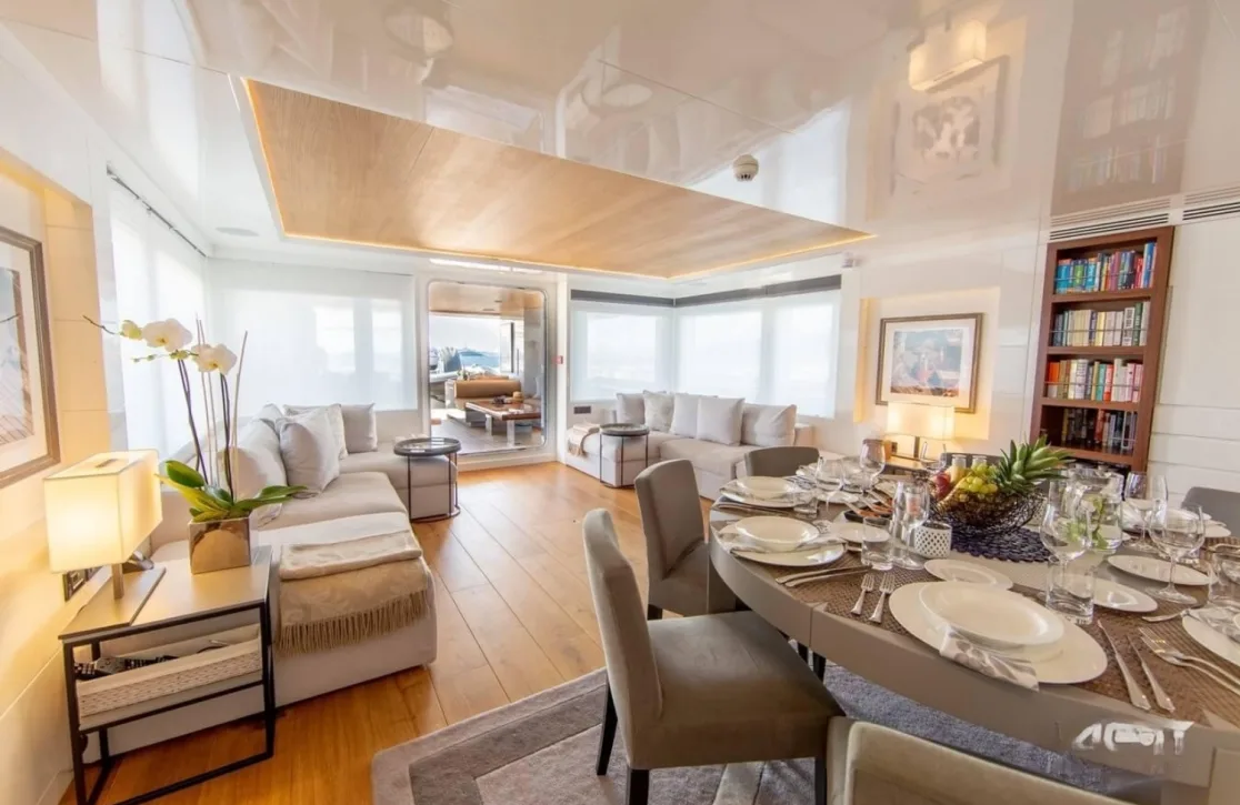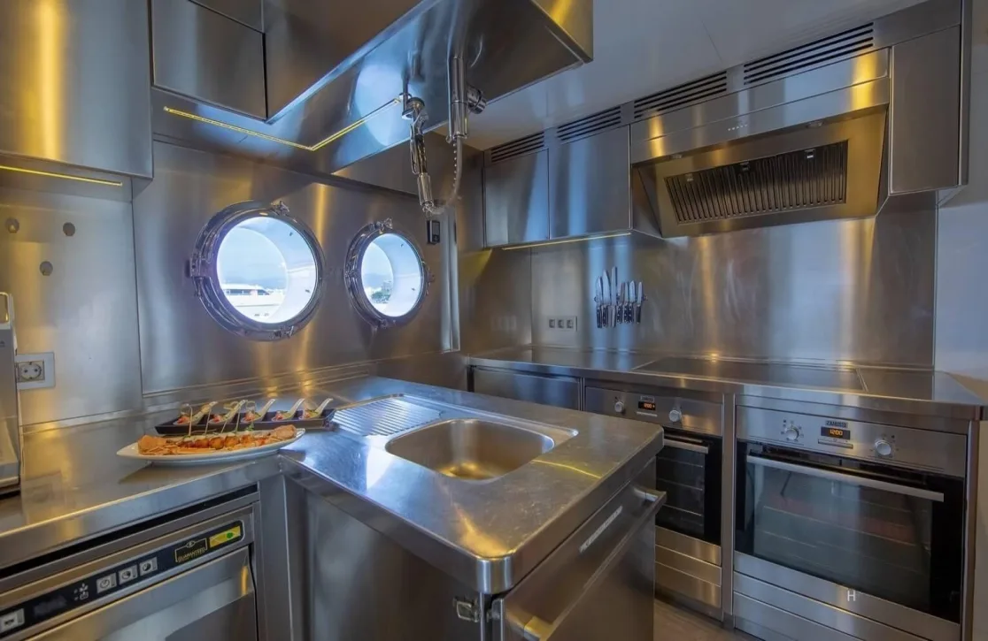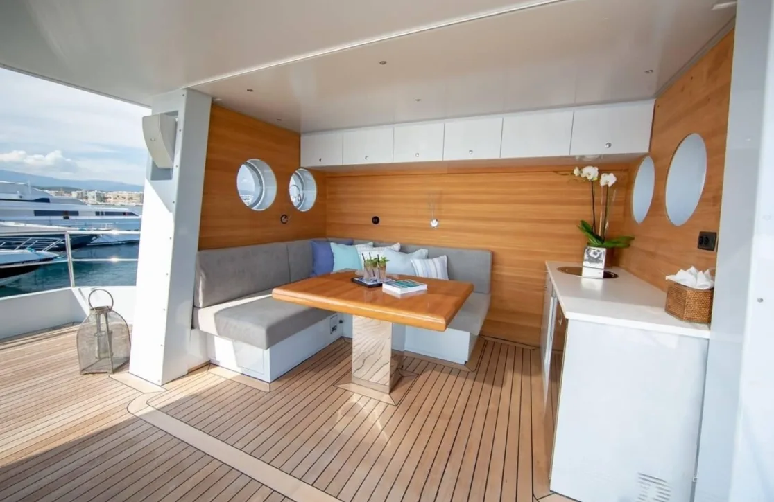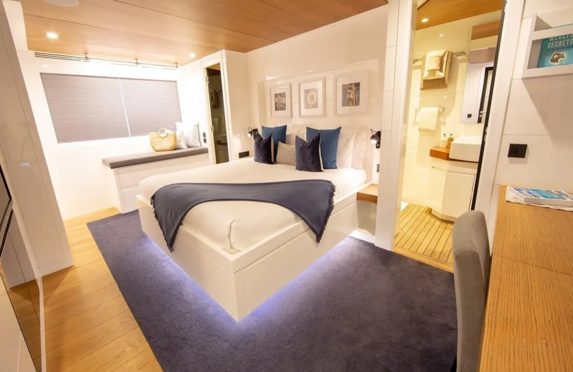 With accommodations for up to 10 guests, Preference 19 offers a refined retreat in her five beautifully appointed cabins. The master suite is a sanctuary of serenity, while the two double and two twin cabins provide equally inviting havens of rest. As dawn breaks over the horizon, guests awaken to the gentle lull of the sea, ensconced in plush linens and elegant surroundings. Each room is a blend of comfort and style, ensuring that every night aboard is as restful as it is memorable.