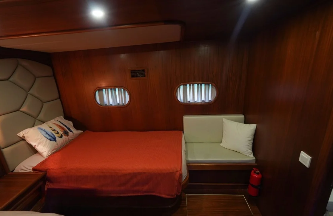 Prenses Esila offers accommodations that are a refuge of tranquility. With six cabins, including master suites and double cabins, each guest awakens to the gentle sway of the sea and breathtaking vistas. Designed to host up to 12 passengers, the quarters provide an intimate retreat with a touch of grandeur. Each cabin is a testament to refined comfort, ensuring restful nights and rejuvenating mornings as the sun rises over the horizon.