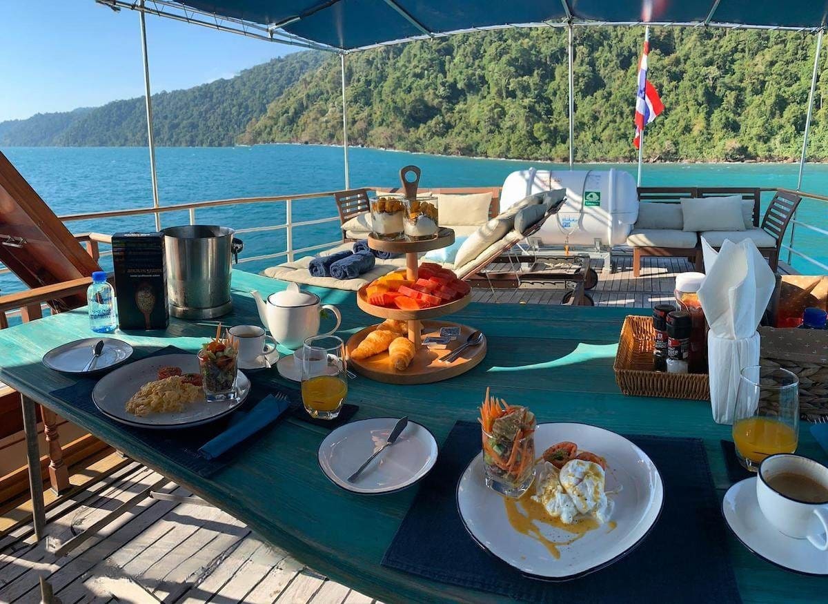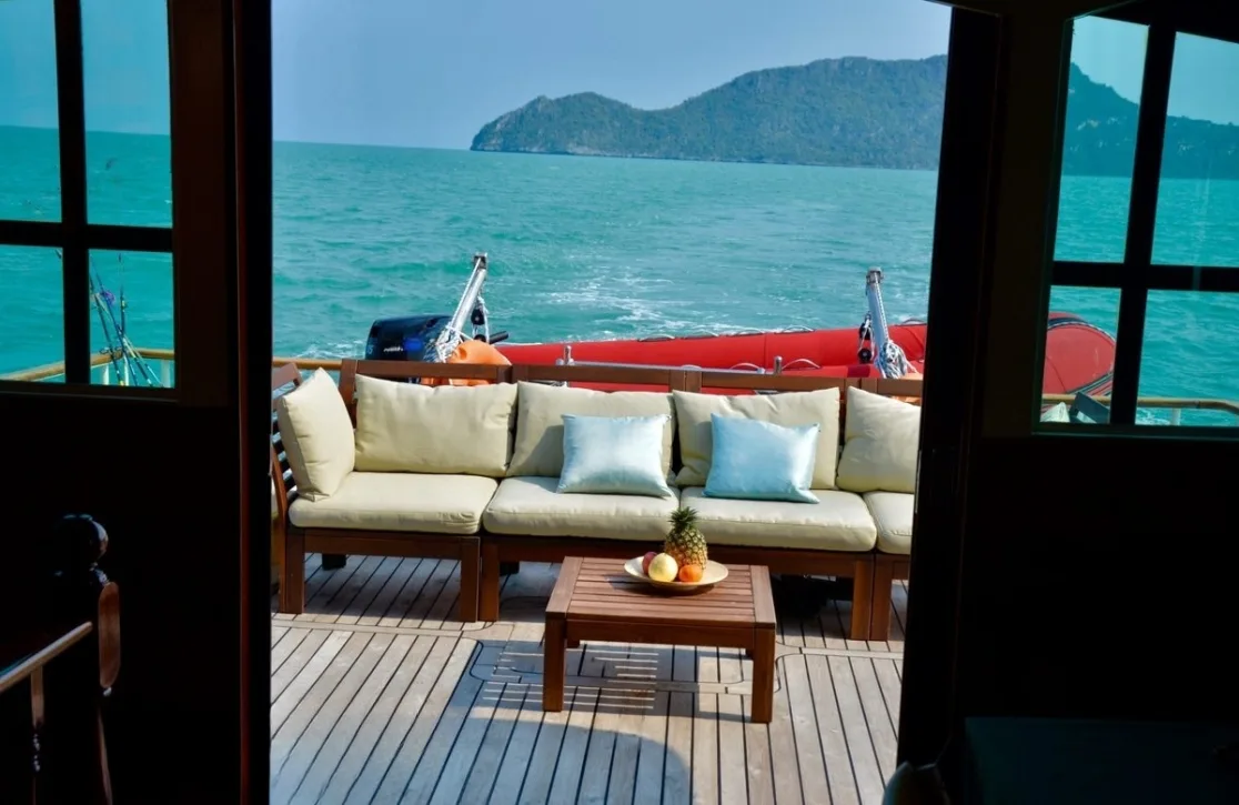 As the sun rises over the horizon, guests aboard Princess Katharine awaken in one of four exquisite cabins, each thoughtfully designed to offer a sanctuary of comfort and tranquility. The main deck’s master suite serves as a private oasis, complemented by a VIP cabin and two twin cabins that can accommodate up to eight guests. Graceful interiors and plush furnishings create a warm ambiance, where the gentle sway of the sea rocks you to sleep and the promise of a new day beckons.
