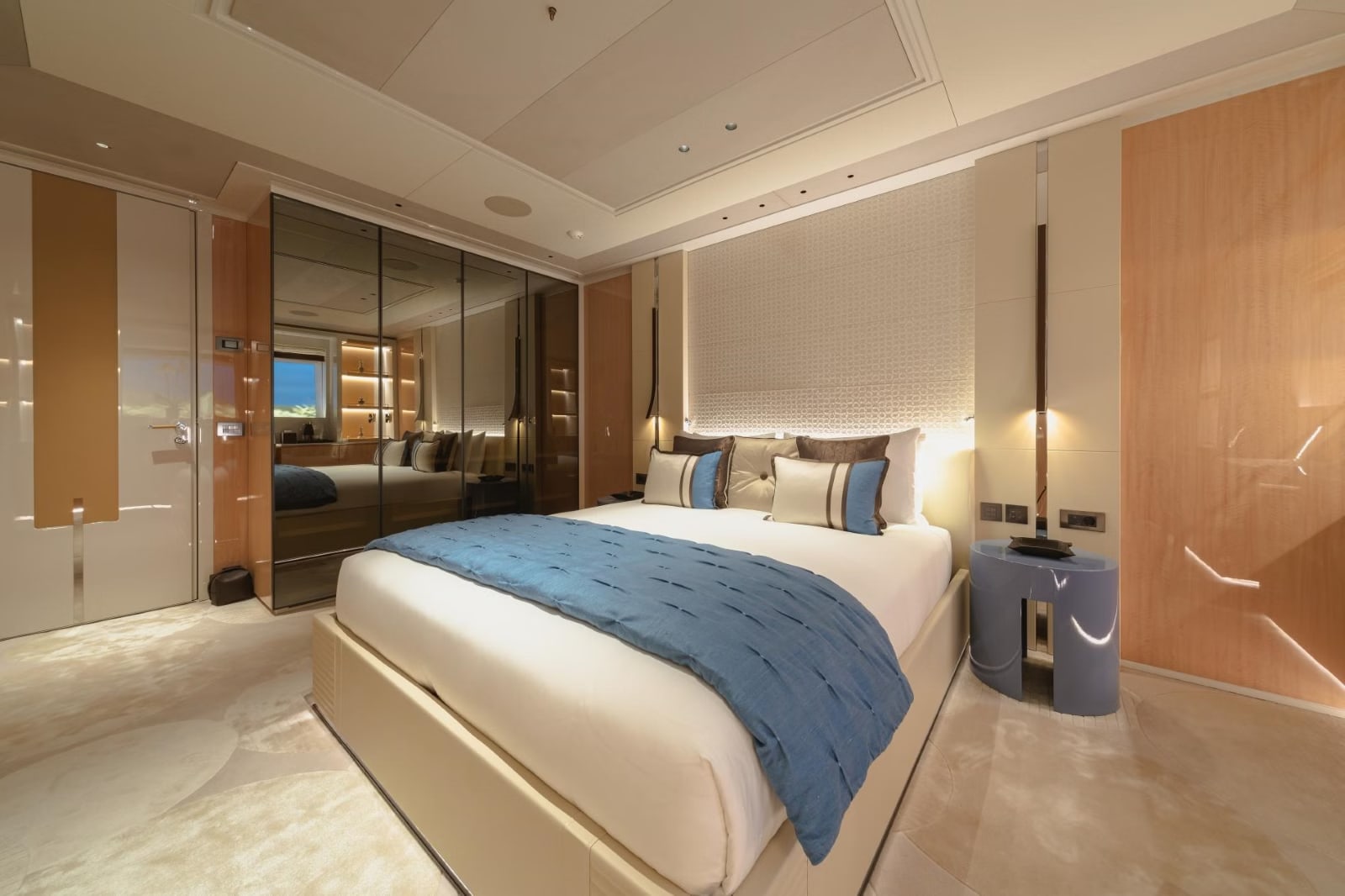 The yacht’s nine lavish cabins are a haven for up to twelve guests, each space a sanctuary of tranquility. Wake up to the gentle sound of the waves in the master suite or one of the five double cabins, where exquisite marbles and fine leathers create an atmosphere of refined elegance. With a VIP cabin and two twin cabins, each guest experiences the privacy and comfort akin to a five-star retreat. Every morning, natural light floods in through expansive windows, inviting you to start your day refreshed and inspired.