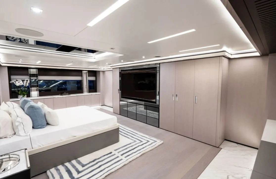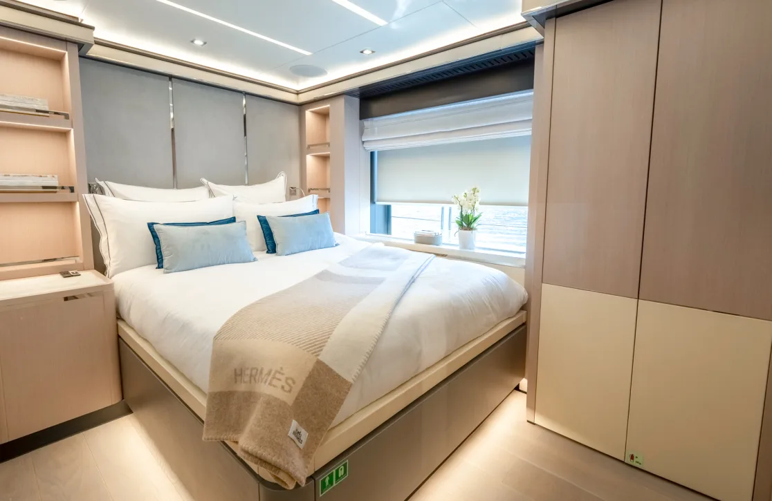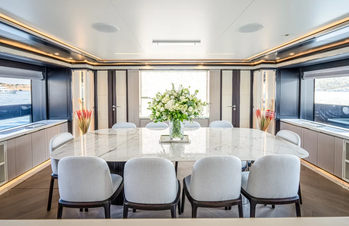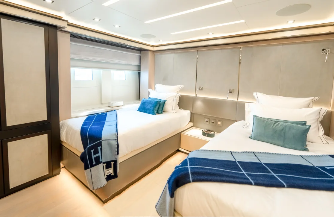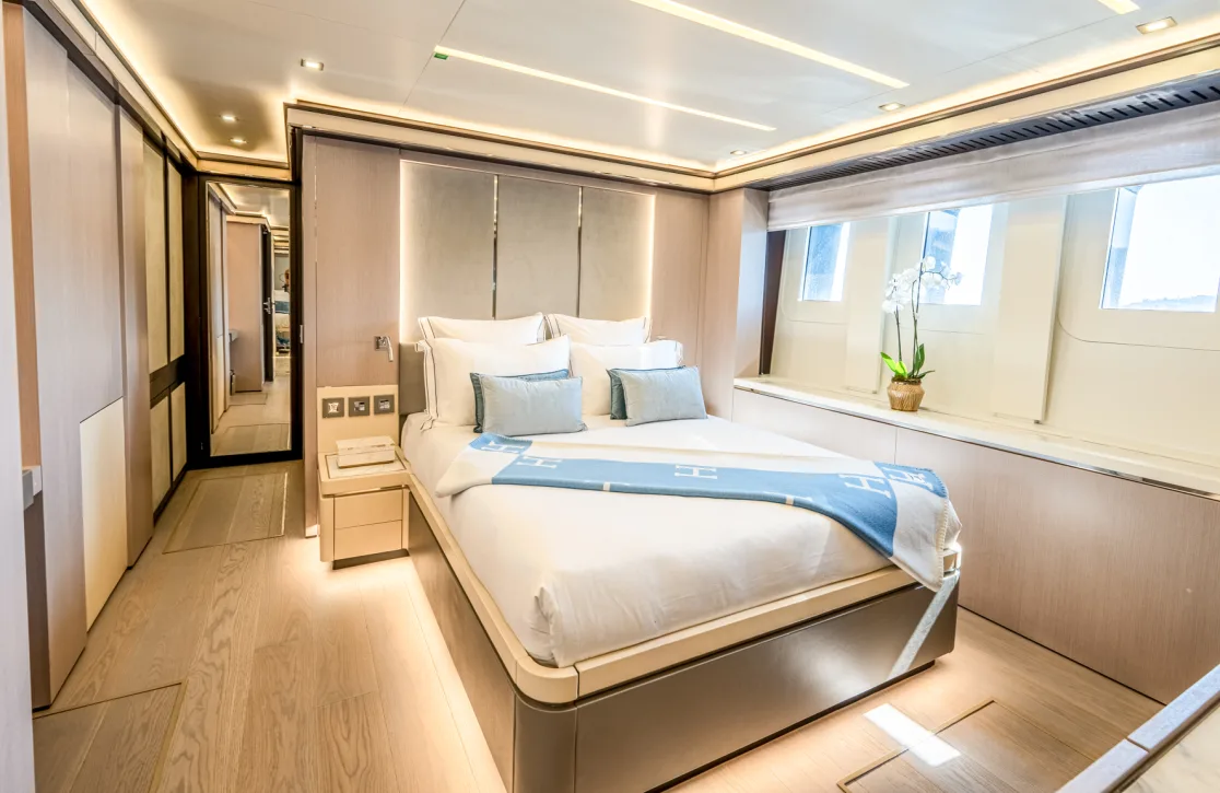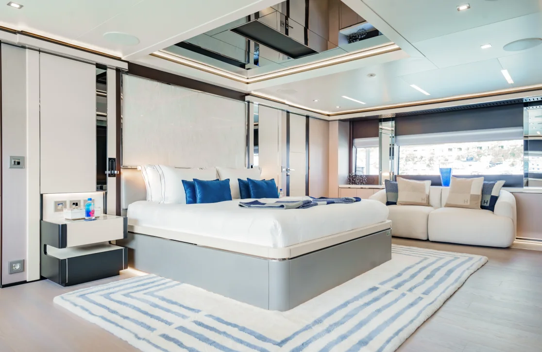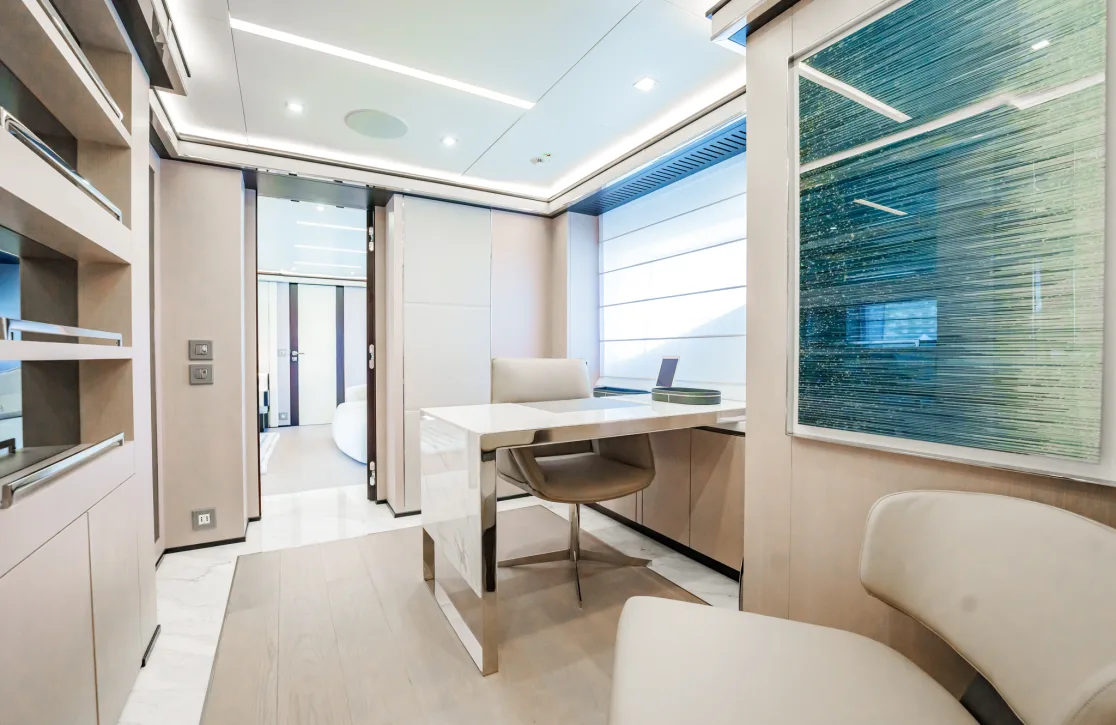 The Provocateur accommodates up to 12 guests in six beautifully appointed cabins, each a sanctuary of comfort and style. Wake up in the master suite, complete with its own study, and let the gentle motion of the sea greet you to a new day. The VIP cabin, two double cabins, and two twin cabins provide ample space and privacy, ensuring that every guest feels at home. Expansive living spaces invite relaxation, while thoughtful design touches by Hot Lab add an unmistakable flair of Italian sophistication.