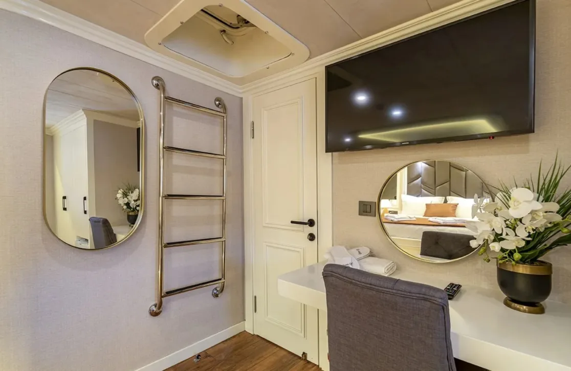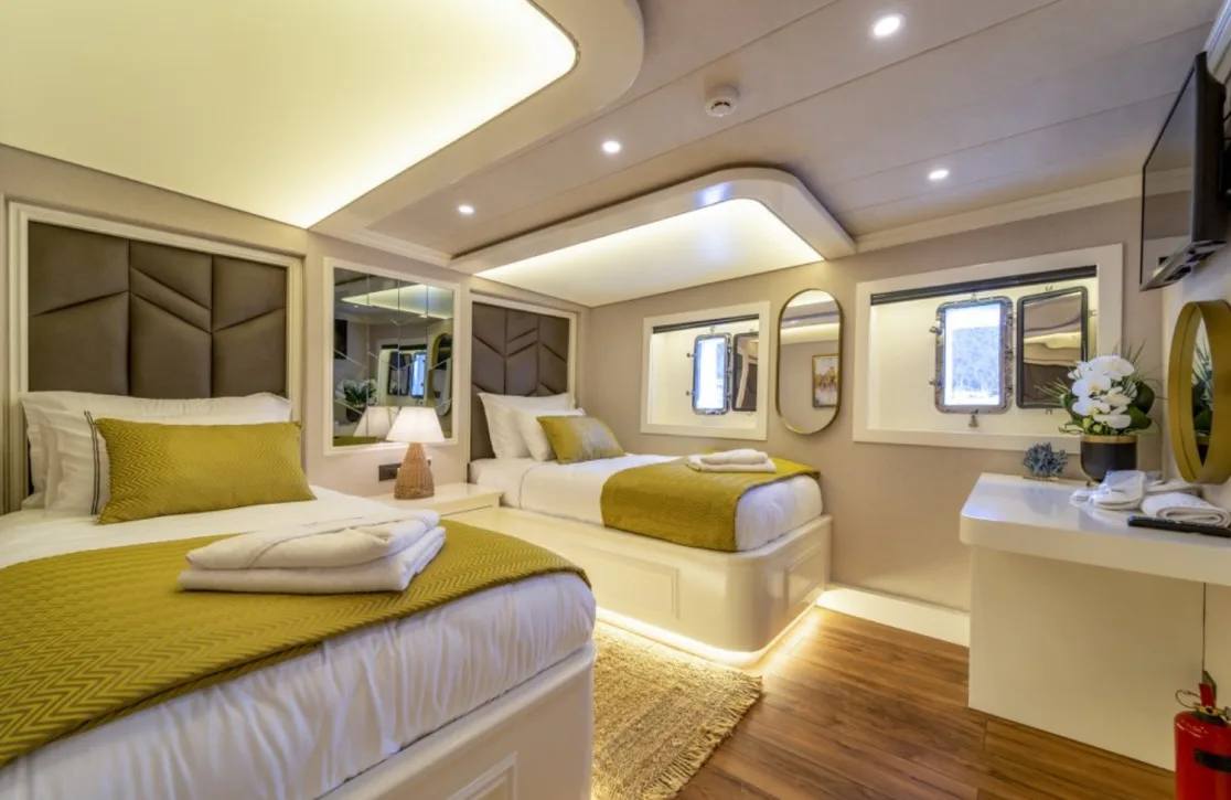 The Queen Of Makri welcomes you into a world of understated elegance with six beautifully appointed cabins, including a grand master suite, three VIP cabins, and a cozy twin cabin. Accommodating up to 12 guests, each room is a sanctuary, offering a tranquil escape after a day filled with adventure. Awaken each morning to the gentle lull of the sea, sunlight filtering through your window, promising another day of discovery. The attentive crew of six ensures every detail is tailored to your desires, making each stay aboard an experience in refined comfort.