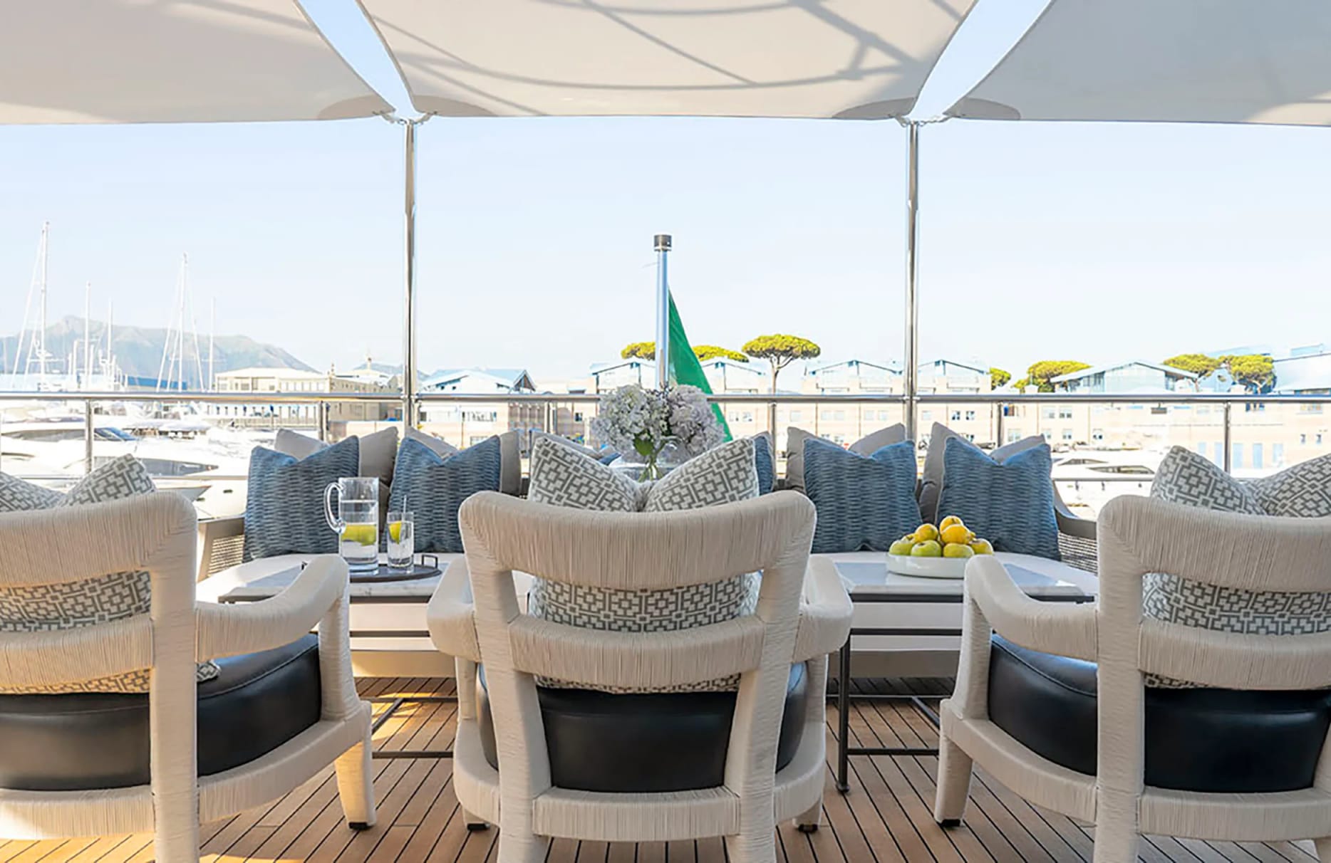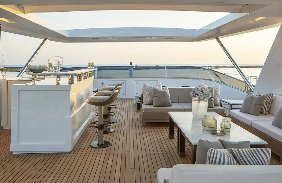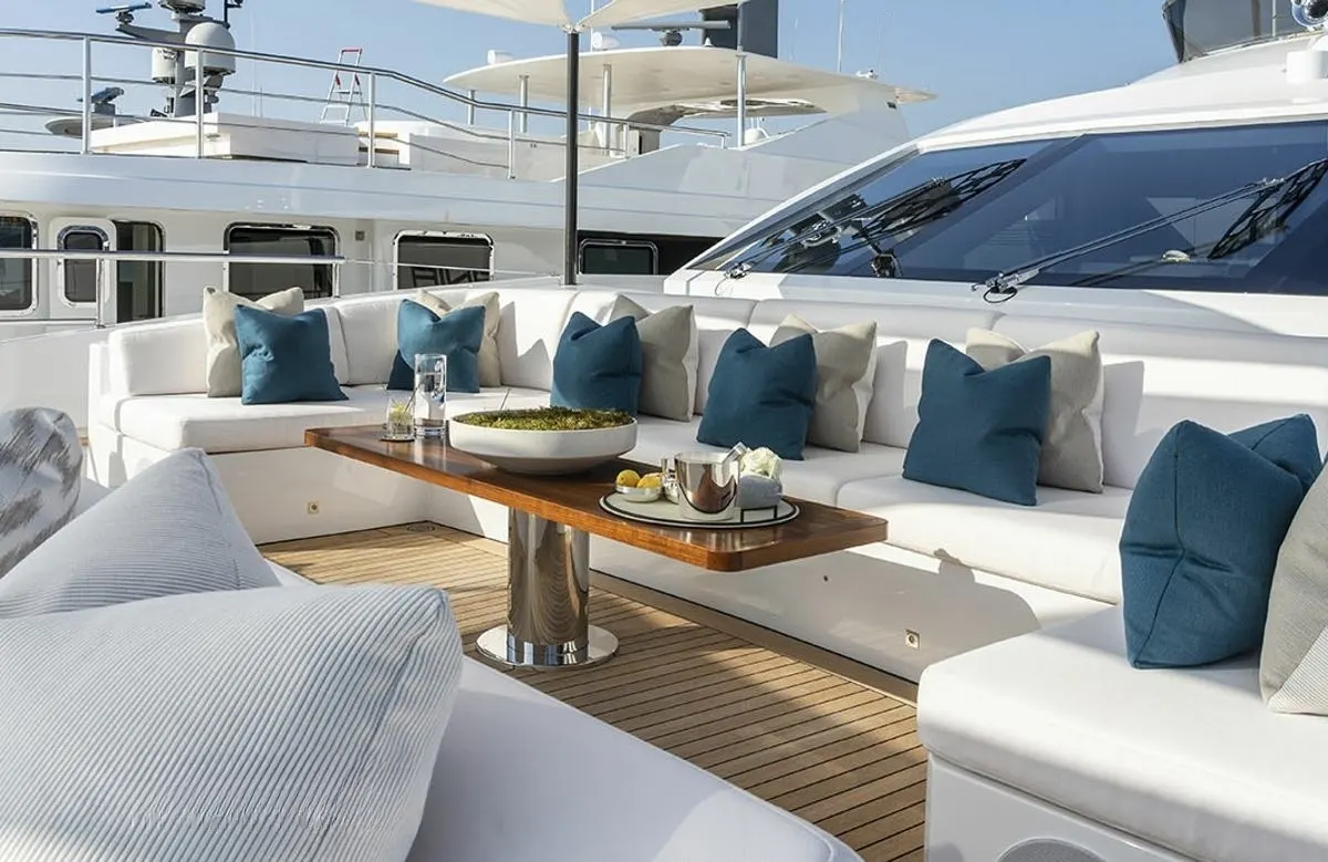Onboard Rania, each moment is an invitation to indulge in the art of leisure. The sun deck becomes your personal haven, where sunpads invite you to bask in the warmth of the day, and an outdoor bar serves as the perfect setting for evening cocktails under the stars. The foredeck, with its elegant seating and table, offers a serene spot for morning coffee or an intimate dinner with the sea as your backdrop. The beach club, perched at the water’s edge, is a sanctuary of sophistication, inviting you to immerse yourself in the tranquility of your surroundings.